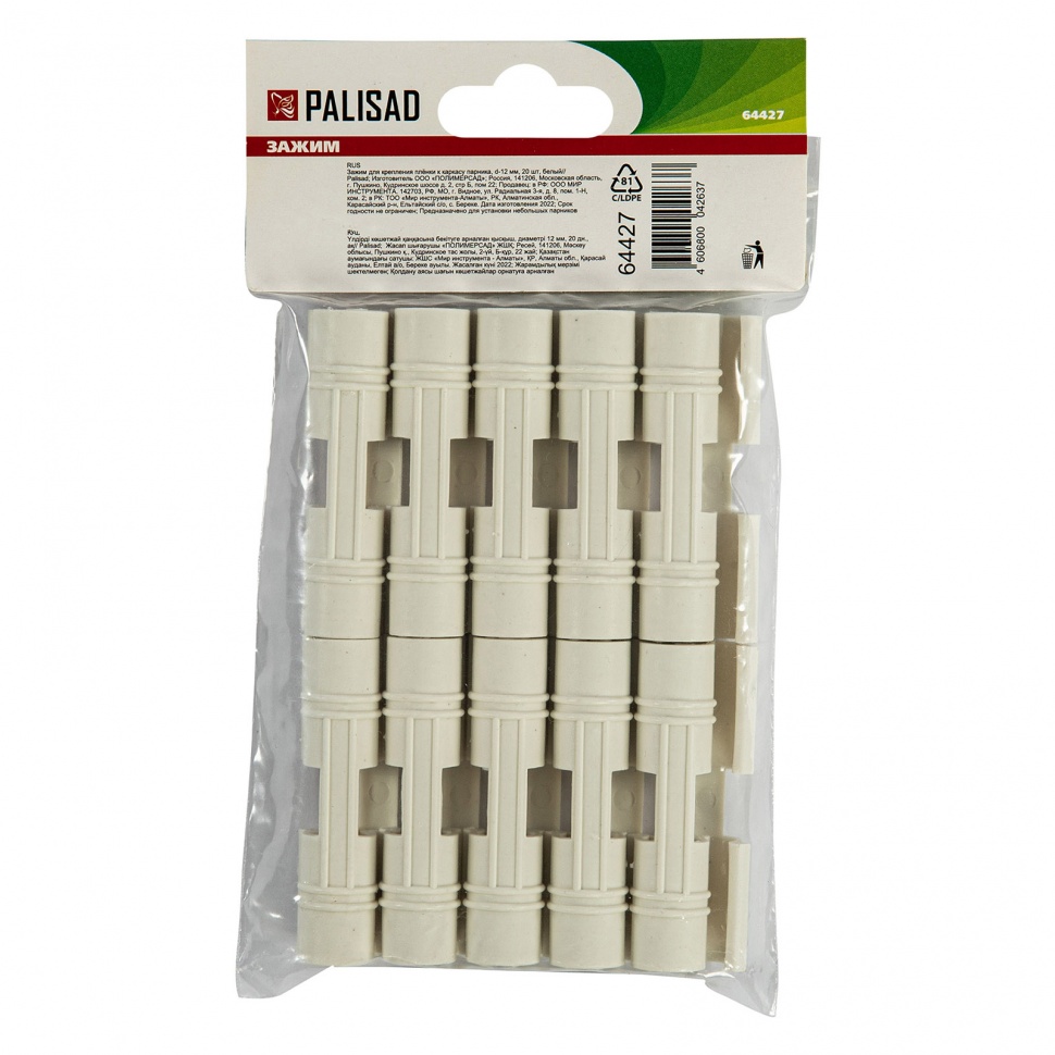 Белый зажим для крепления пленки к каркасу парника Palisad 64427, 20 шт., надежно фиксирует пленку или укрывной материал на дугах диаметром 12 мм. Он всегда пригодится в подсобном хозяйстве при сборке парников для выращивания растений.ПреимуществаДолговечность - зажим изготовлен из высококачественного полипропилена и устойчив к климатическим воздействиям.Продуманная конструкция - пленка не повреждается при креплении зажима.Многоразовое применение - изделие прослужит не один сезон.Быстрый монтаж - установка занимает несколько секунд.