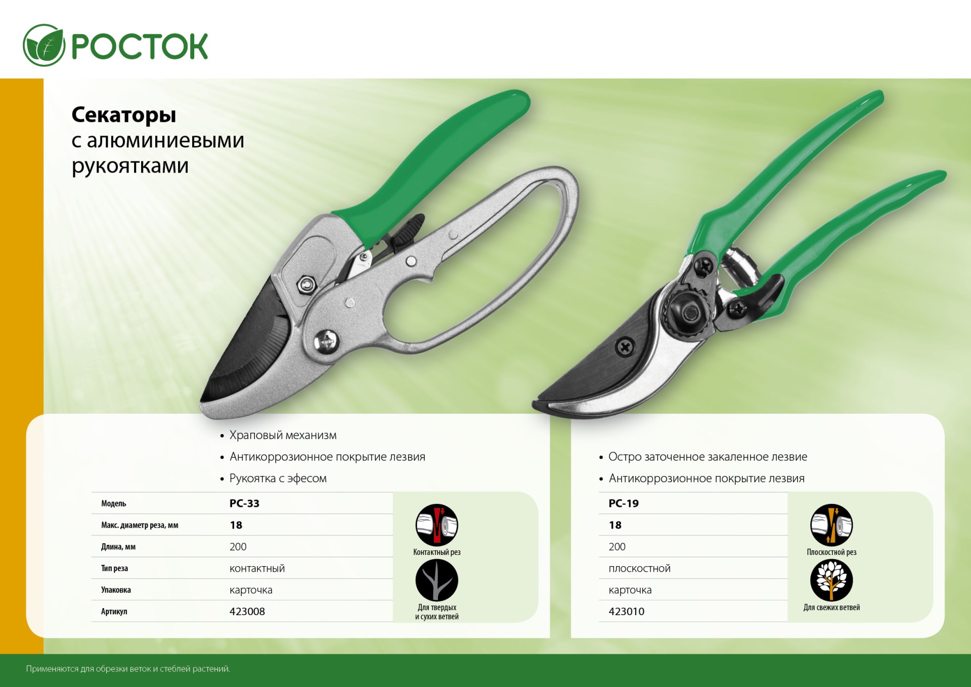 Все секаторы РОСТОК произведены на высокоточном оборудовании из качественных материалов, что гарантирует чистый рез и продолжительный срок службы.0