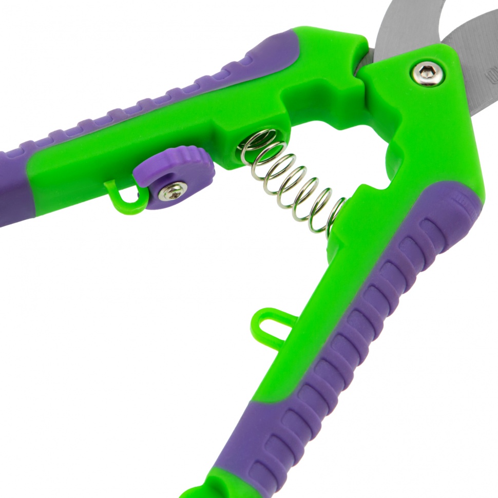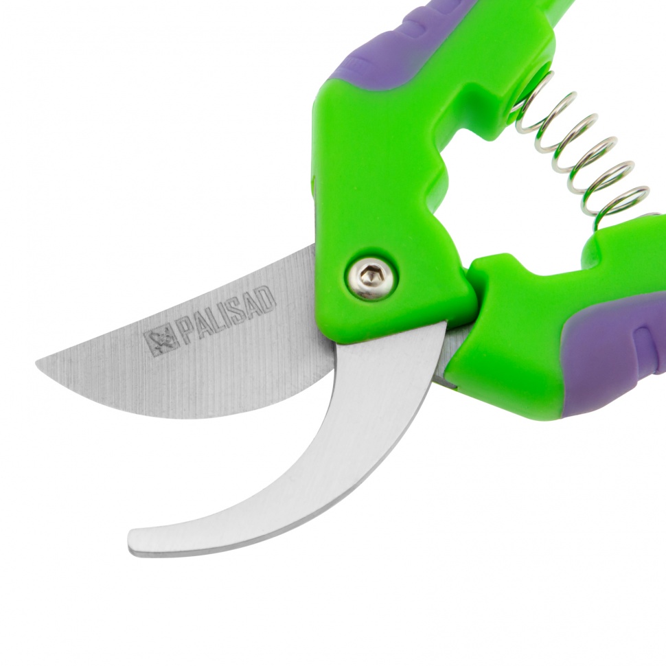 Секатор прямого реза Palisad 60498 длиной 150 мм, с двухкомпонентными рукоятками, используется для формирования крон бонсай и топиариев, а также для ухода за комнатными растениями и овощными культурами. Подходит для срезания живых веток и побегов толщиной до 12 мм. Движущиеся в параллельных плоскостях лезвия производят ровный аккуратный срез с минимальными повреждениями растения. Плотность смыкания лезвий регулируется винтом. Секатор для бонсай будет полезен дома и на даче.ПреимуществаЗащита от разрушения — рабочие части из нержавеющей стали покрыты антикоррозионным маслом.Высокий ресурс — режущая кромка прошла индукционную закалку и имеет прецизионную заточку.Безопасность — фиксатор предотвращает раскрытие лезвий во время хранения и транспортировки.Долговечность — двухкомпонентные рукоятки со вставками из термопластичной резины устойчивы к воздействию ультрафиолета.Надежная конструкция — демпфер между рукоятками предотвращает поломку инструмента.Удобный хват — обрезиненные рукоятки не выскальзывают из руки.