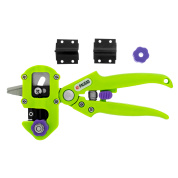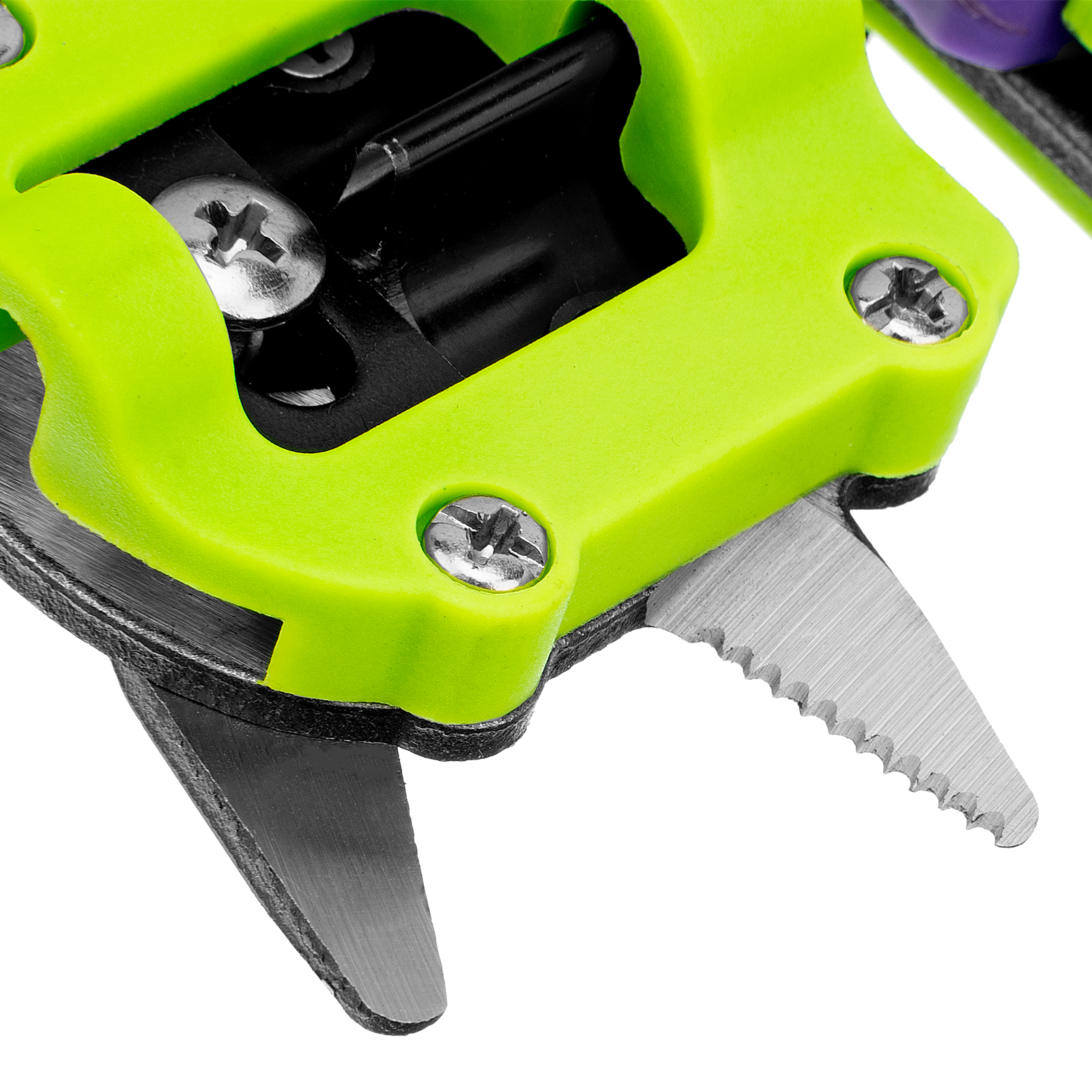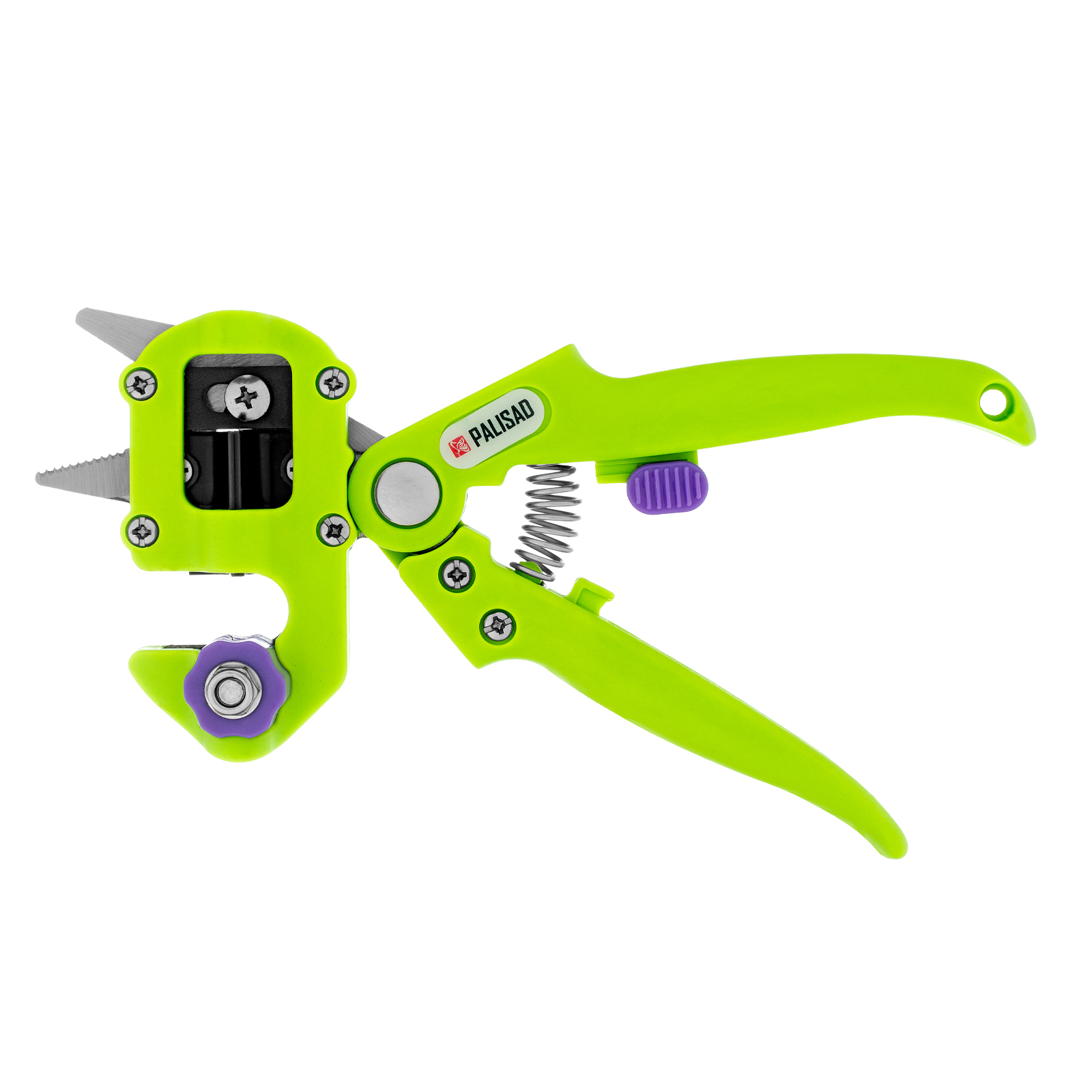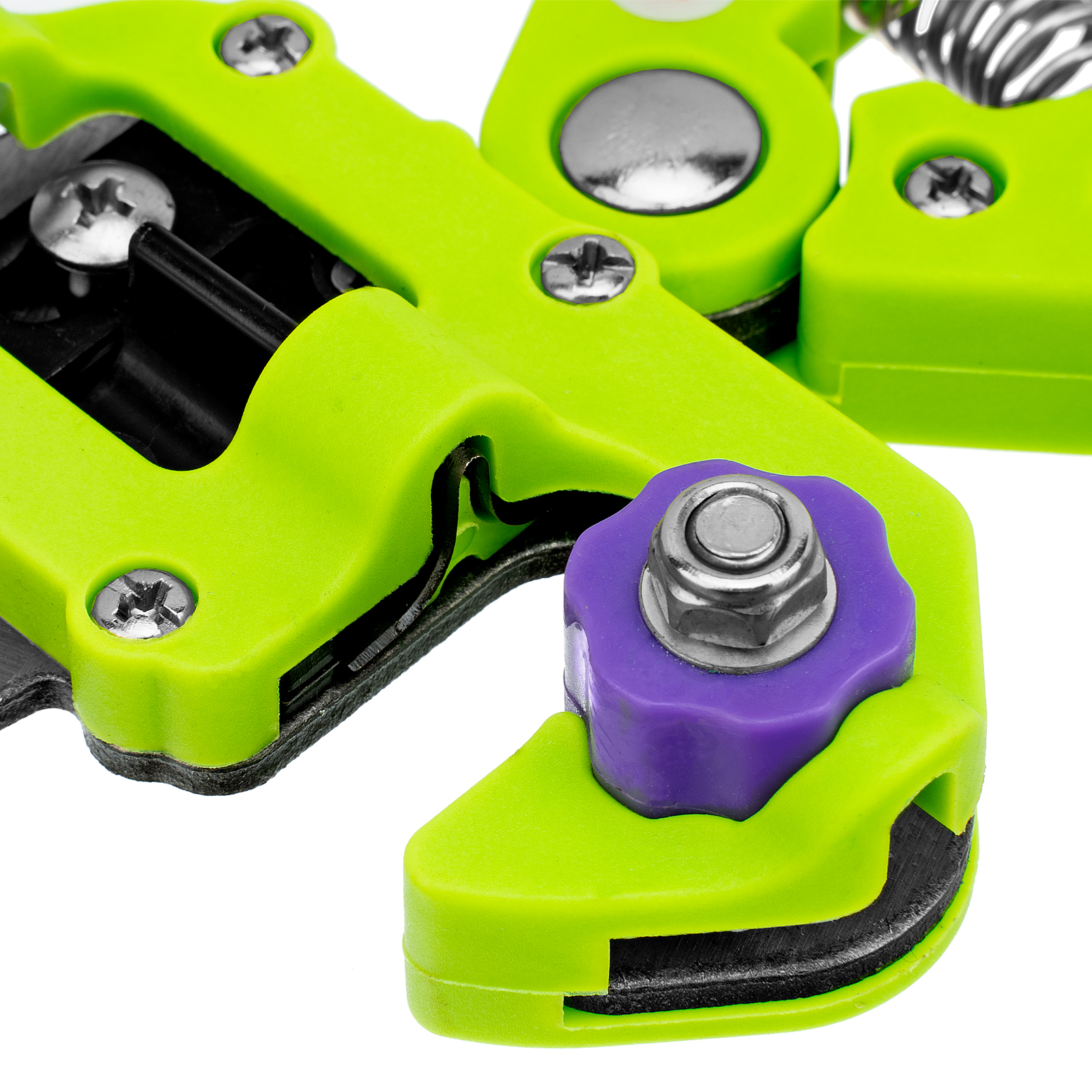 Прививочный секатор Palisad 60502 длиной 215 мм, со сменными ножами, используется для прививки плодовых растений черенком. Фигурные ножи секатора изготовлены из рессорно-пружинной стали, поэтому обладают высоким ресурсом (рассчитаны на 5000 срезов без дополнительной заточки). В комплекте U-образный, V-бразный и Ω-образный ножи, что позволяет работать с черенками различной толщины и плотности. Вырезы, сделанные на подвое и привое, идеально совместимы друг с другом, дополнительная подгонка им не требуется.ПреимуществаКоррозионная стойкость — лезвия изготовлены из нержавеющей стали, прививочные ножи покрыты порошковой эмалью.Прецизионная заточка — режущая кромка производит качественный рез и долго сохраняет рабочие свойства.Контроль качества реза — плотность смыкания лезвий можно отрегулировать при помощи винта.Надежность и долговечность — рукоятки из полиамида устойчивы к воздействию ультрафиолета, а также выдерживают значительные нагрузки.Безопасное хранение и транспортировка — фиксатор надежно удерживает лезвия в нерабочем положении.