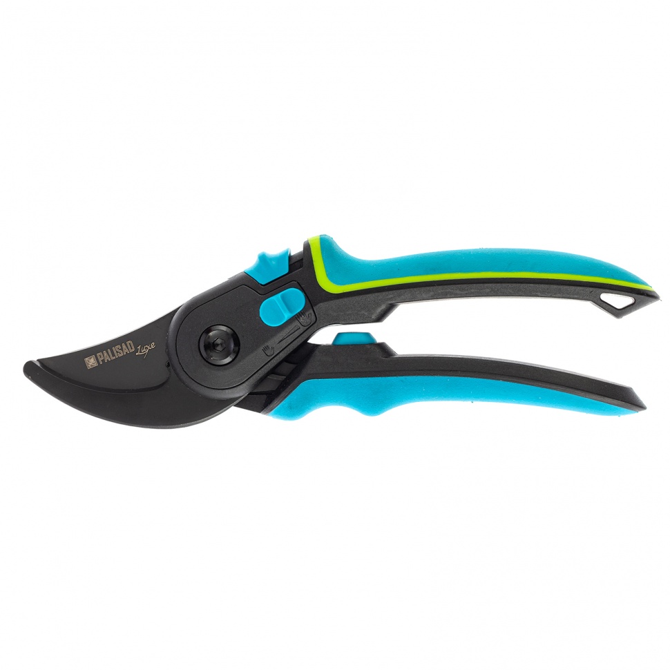 Секатор прямого реза Palisad LUXE 604795 длиной 225 мм, с регулировкой захвата и трехкомпонентными рукоятками, используется для срезания живых веток толщиной до 24 мм. Режущее лезвие перемещается в плоскости, параллельной опорному, поэтому срез получается ровным и чистым, а ущерб для растения сведен к минимуму. Тефлоновое покрытие лезвия уменьшает трение, а шарнир особой конструкции увеличивает силу сжатия на 10%, что позволяет пользователю прикладывать меньше усилий. Плотность примыкания лезвий можно регулировать при помощи винта. Секатор будет полезен для ухода за растениями на загородном участке. Преимущества Долговечность — лезвия изготовлены из прочной высокоуглеродистой стали и покрыты антикоррозионным составом, трехкомпонентные полипропиленовые рукоятки устойчивы к климатическим воздействиям. Высокий ресурс — режущее лезвие прошло индукционную закалку и имеет прецизионную заточку, поэтому долго сохраняет эксплуатационные качества. Удобная работа с ветками разной толщины — переключатель «большая-малая рука» позволяет регулировать величину захвата. Надежная конструкция — между рукоятками имеется демпфер, защищающий их от поломки. Комфортная работа — благодаря выемке под палец в нижней рукоятке и вставкам из термопластичной резины инструмент удобно держать в руке. Безопасность — специальный фиксатор не дает лезвиям самопроизвольно раскрываться во время хранения или транспортировки.