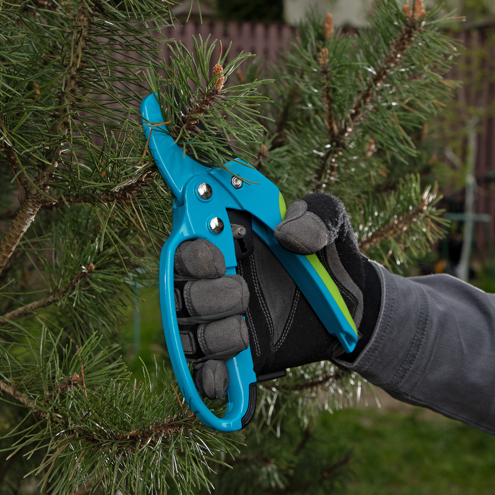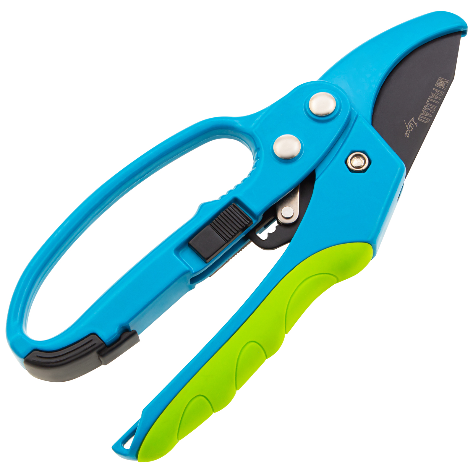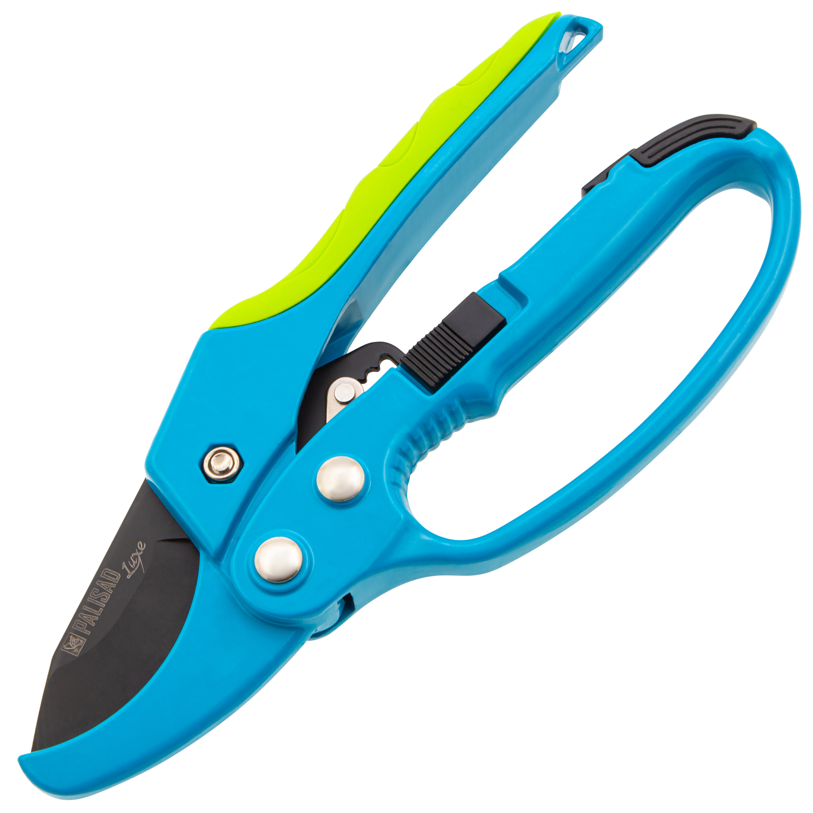 Секатор прямого реза Palisad LUXE 60560 длиной 200 мм, с храповым механизмом и металлическими обрезиненными рукоятками, используется для обрезки живых, сухих и увядших веток диаметром до 22 мм. Храповой механизм обеспечивает пошаговый рез, поэтому лезвия инструмента не сминают ветку, причиняя минимальный вред растению. Опорное лезвие способствует надежному удержанию ветки во время использования секатора. Регулировочный винт позволяет изменять плотность смыкания лезвий. Инструмент будет полезен для ухода за растениями на даче и в саду.ПреимуществаДолговечность — рабочие части секатора изготовлены из высокоуглеродистой стали.Высокий рабочий ресурс — режущее лезвие прошло индукционную закалку и имеет прецизионную заточку.Устойчивость к коррозии — на режущее лезвие нанесено тефлоновое покрытие, а на опорное — порошковая эмаль.Легкость реза — тефлоновое покрытие уменьшает трение режущей поверхности о древесину.Повышенная мощность — храповой механизм увеличивает усилие сжатия на 20%.Безопасность во время хранения и транспортировки — лезвия надежно фиксируются в нерабочем положении.Надежность — рукоятки выполнены из прочного алюминиевого сплава.Комфорт во время работы — благодаря вставке из термопластичной резины верхняя рукоятка не скользит в руке.Простой уход — в нижней рукоятке имеется фетровая подушка, которой удобно смазывать лезвия секатора.Защита пальцев — на нижней рукоятке предусмотрена гарда, предотвращающая травмирование руки.