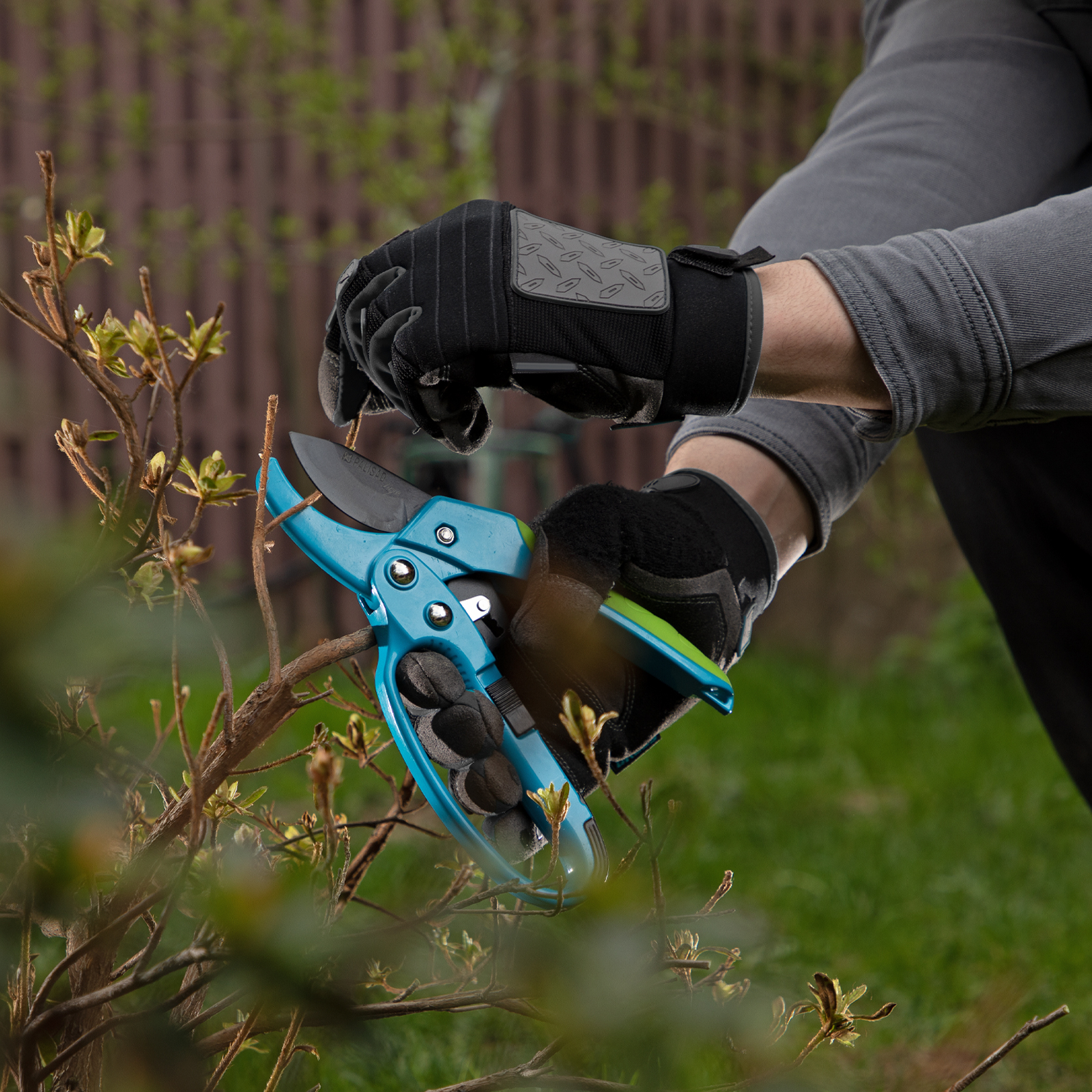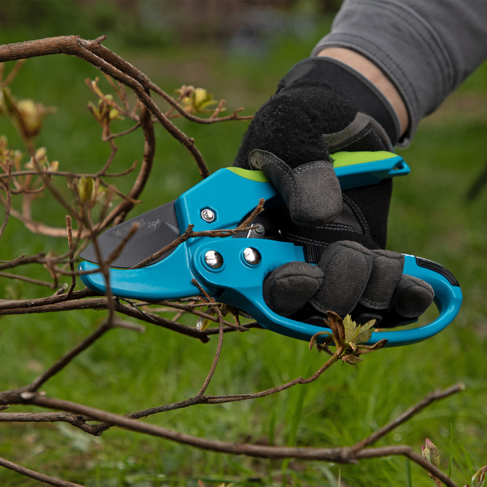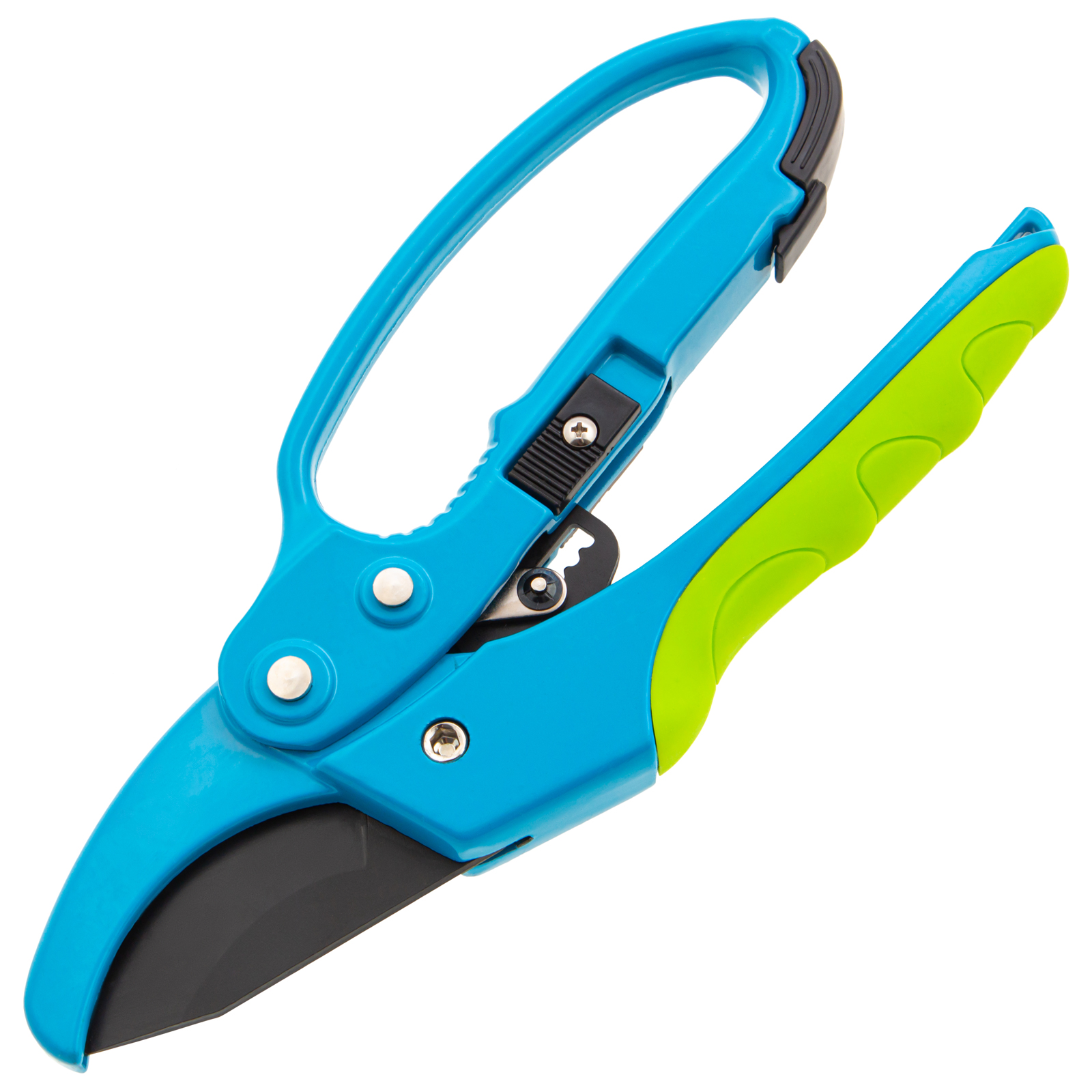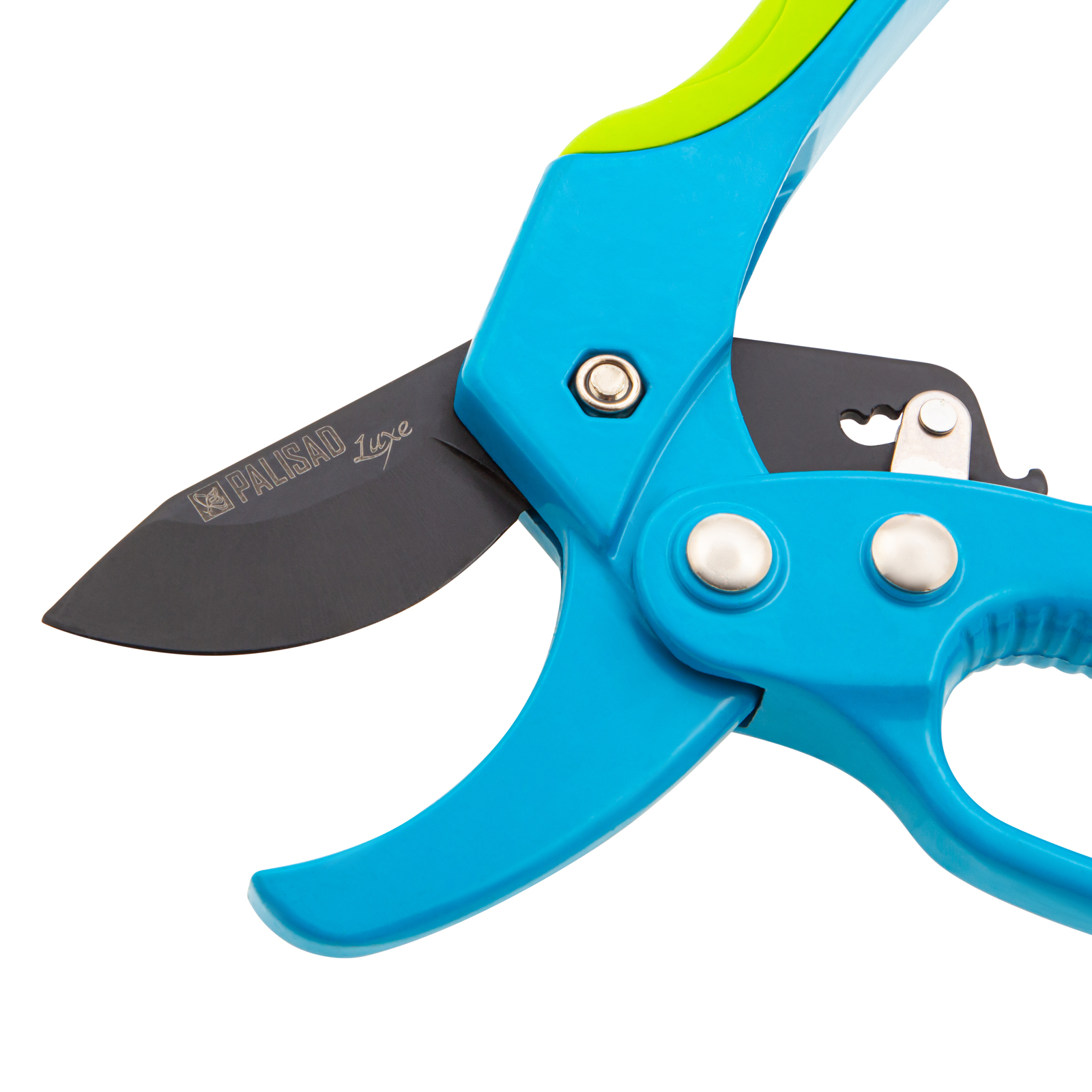 Секатор прямого реза Palisad LUXE 60560 длиной 200 мм, с храповым механизмом и металлическими обрезиненными рукоятками, используется для обрезки живых, сухих и увядших веток диаметром до 22 мм. Храповой механизм обеспечивает пошаговый рез, поэтому лезвия инструмента не сминают ветку, причиняя минимальный вред растению. Опорное лезвие способствует надежному удержанию ветки во время использования секатора. Регулировочный винт позволяет изменять плотность смыкания лезвий. Инструмент будет полезен для ухода за растениями на даче и в саду.ПреимуществаДолговечность — рабочие части секатора изготовлены из высокоуглеродистой стали.Высокий рабочий ресурс — режущее лезвие прошло индукционную закалку и имеет прецизионную заточку.Устойчивость к коррозии — на режущее лезвие нанесено тефлоновое покрытие, а на опорное — порошковая эмаль.Легкость реза — тефлоновое покрытие уменьшает трение режущей поверхности о древесину.Повышенная мощность — храповой механизм увеличивает усилие сжатия на 20%.Безопасность во время хранения и транспортировки — лезвия надежно фиксируются в нерабочем положении.Надежность — рукоятки выполнены из прочного алюминиевого сплава.Комфорт во время работы — благодаря вставке из термопластичной резины верхняя рукоятка не скользит в руке.Простой уход — в нижней рукоятке имеется фетровая подушка, которой удобно смазывать лезвия секатора.Защита пальцев — на нижней рукоятке предусмотрена гарда, предотвращающая травмирование руки.