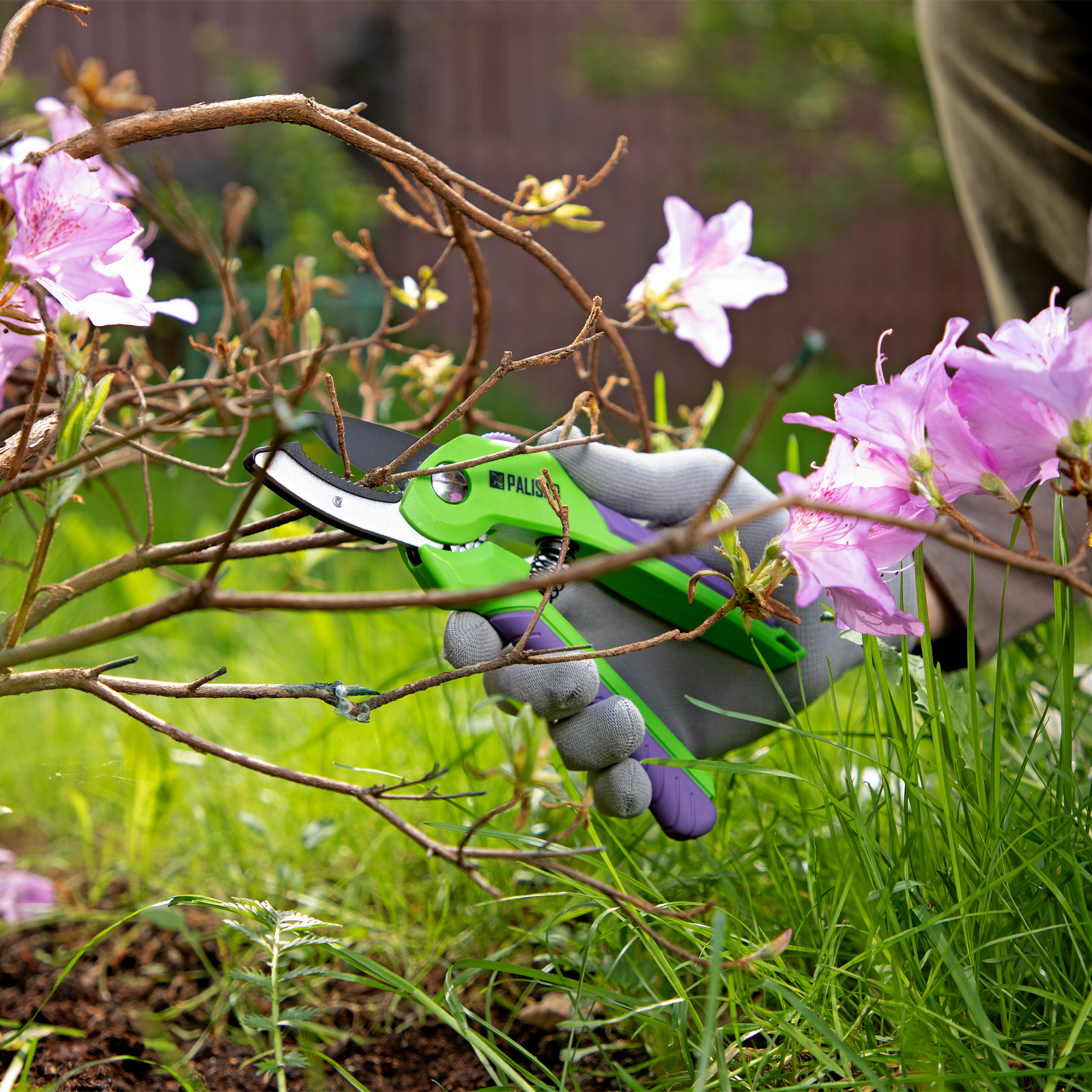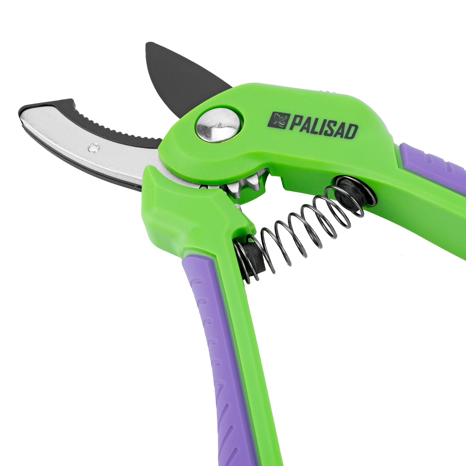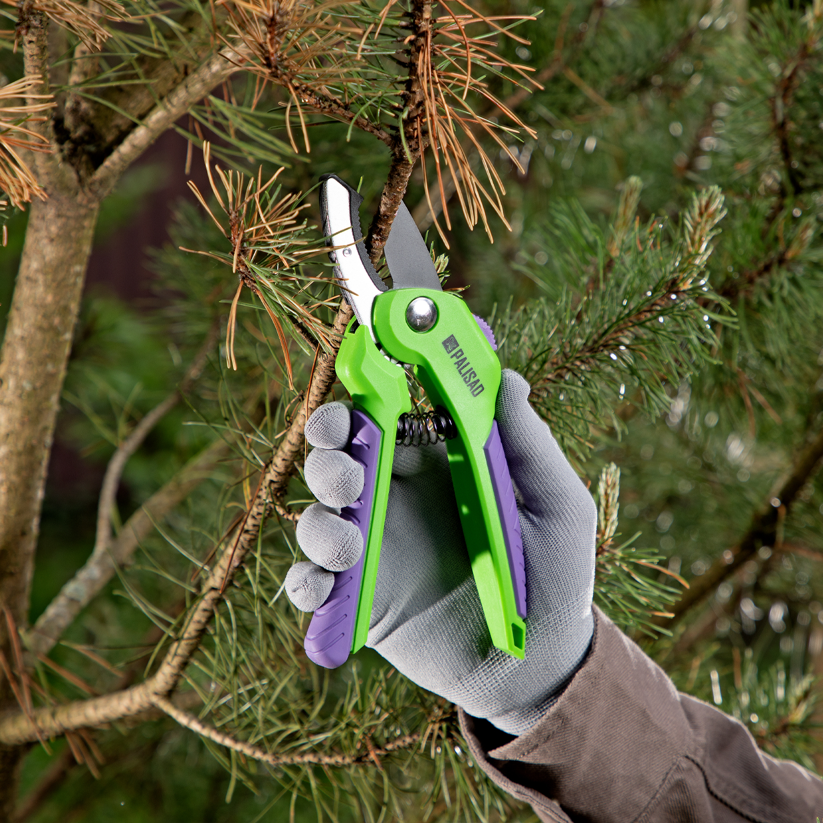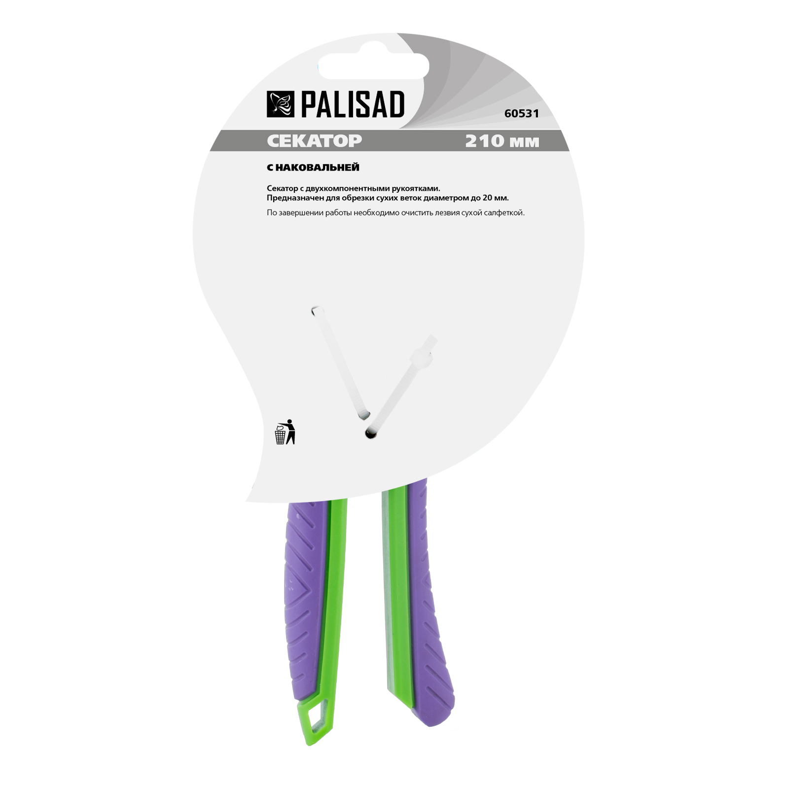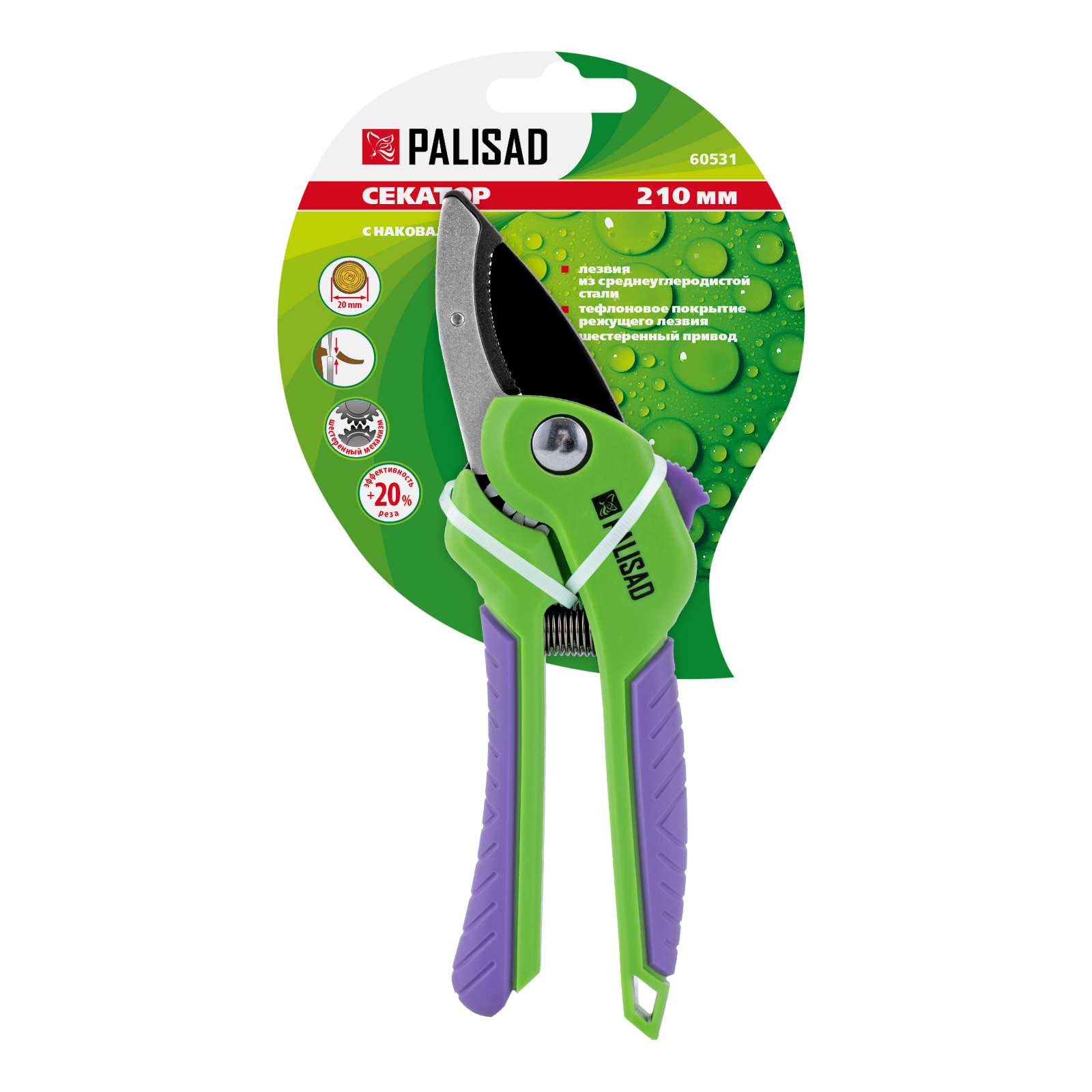 Секатор с наковальней Palisad 60531 длиной 210 мм, с шестеренным приводом и двухкомпонентными рукоятками, служит для щадящей обрезки сухих и увядших веток толщиной до 20 мм. С этой задачей он успешно справляется благодаря шестеренному приводу, увеличивающему усилие сжатия на 15%. Тефлоновое покрытие уменьшает трение лезвия, облегчая рез. Регулировочный винт позволяет контролировать плотность смыкания лезвий. Инструмент будет полезен на дачном участке.ПреимуществаПрочность и долговечность — рабочие части изготовлены из высокоуглеродистой стали, двухкомпонентные рукоятки устойчивы к воздействию ультрафиолета.Высокий ресурс — рабочее лезвие прошло индукционную закалку и имеет режущую кромку с прецизионной заточкой.Защита от коррозии — на режущее лезвие нанесено тефлоновое покрытие, опорное лезвие оцинковано.Удобная обрезка — рифленая поверхность наковальни обеспечивает надежную фиксацию веток, в том числе гладких.Безопасность — благодаря фиксатору лезвия не раскрываются во время хранения и транспортировки.Комфортная работа — рукоятки со вставками из термопластичной резины обеспечивают надежный хват.