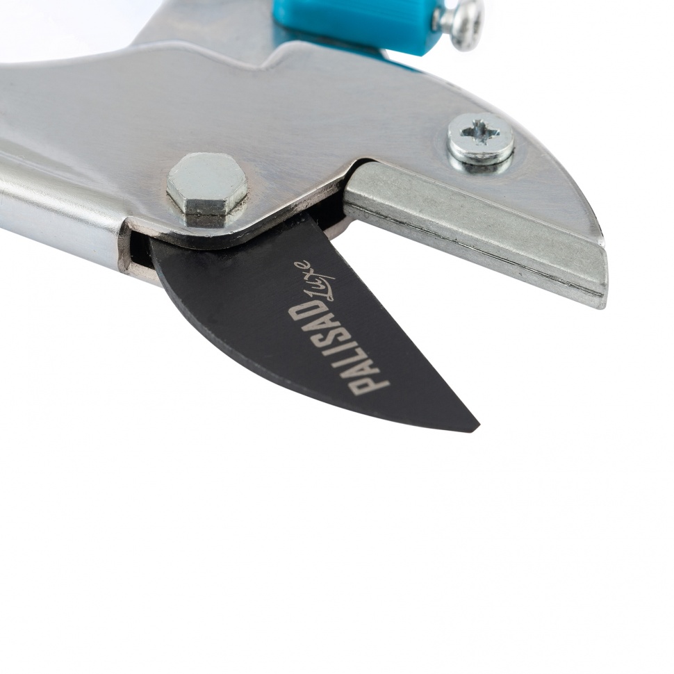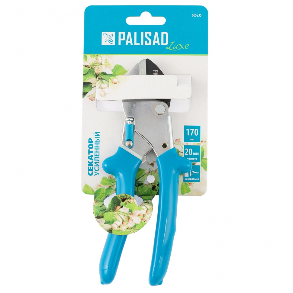 Усиленный секатор с наковальней Palisad Luxe 605235 длиной 170 мм, с рукоятками в ПВХ-оболочке, используется для срезания сухих и увядших ветвей диаметром до 20 мм. Опорная наковальня облегчает фиксацию ветки во время обрезки. Шарнирный механизм увеличивает силу сжатия на 10%, благодаря чему секатор успешно справляется с твердой древесиной. Инструмент будет полезен для ухода за дачей и садом.ПреимуществаРежущее лезвие изготовлено из высококачественной японской инструментальной стали, поэтому характеризуется прочностью и долговечностью.Благодаря индукционной закалке режущая кромка обладает высоким ресурсом работоспособности.Тефлоновое покрытие рабочего лезвия защищает его от коррозии и облегчает рез.Рабочие части хромированы, что обеспечивает защиту от ржавчины и продлевает срок службы секатора.Плотность смыкания рабочих частей регулируется винтом, что позволяет контролировать качество обрезки.В нерабочем положении лезвия надежно удерживаются фиксатором, что обеспечивает безопасность хранения и транспортировки инструмента.Стальные рукоятки выдерживают значительные нагрузки, что повышает надежность секатора.Рукоятки с ПВХ-покрытием не выскальзывают из ладони, это увеличивает комфортность работы.
