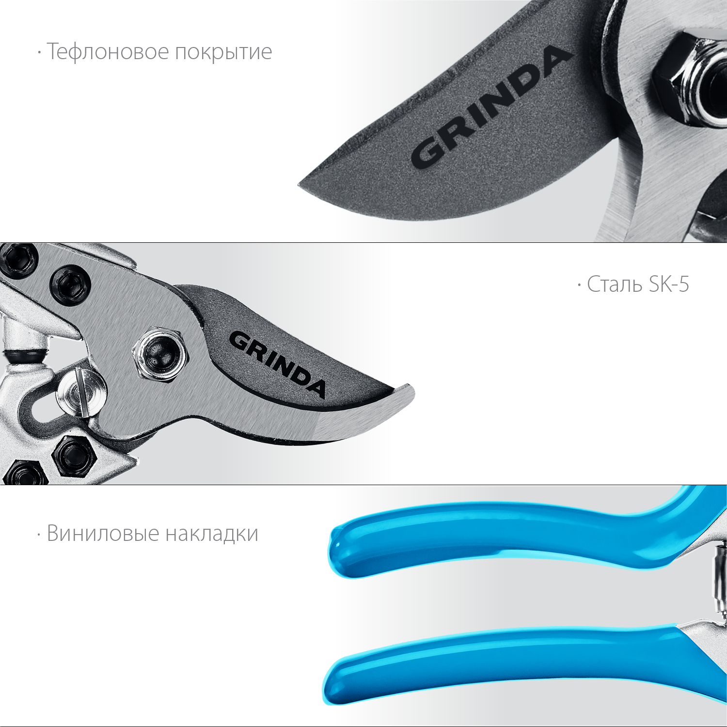 Профессиональные секаторы GRINDA PRO-LINE характеризуются самыми надёжными и современными материалами. Пользуясь этими секаторами вы обеспечите себе удовольствие и комфорт при работах в саду.