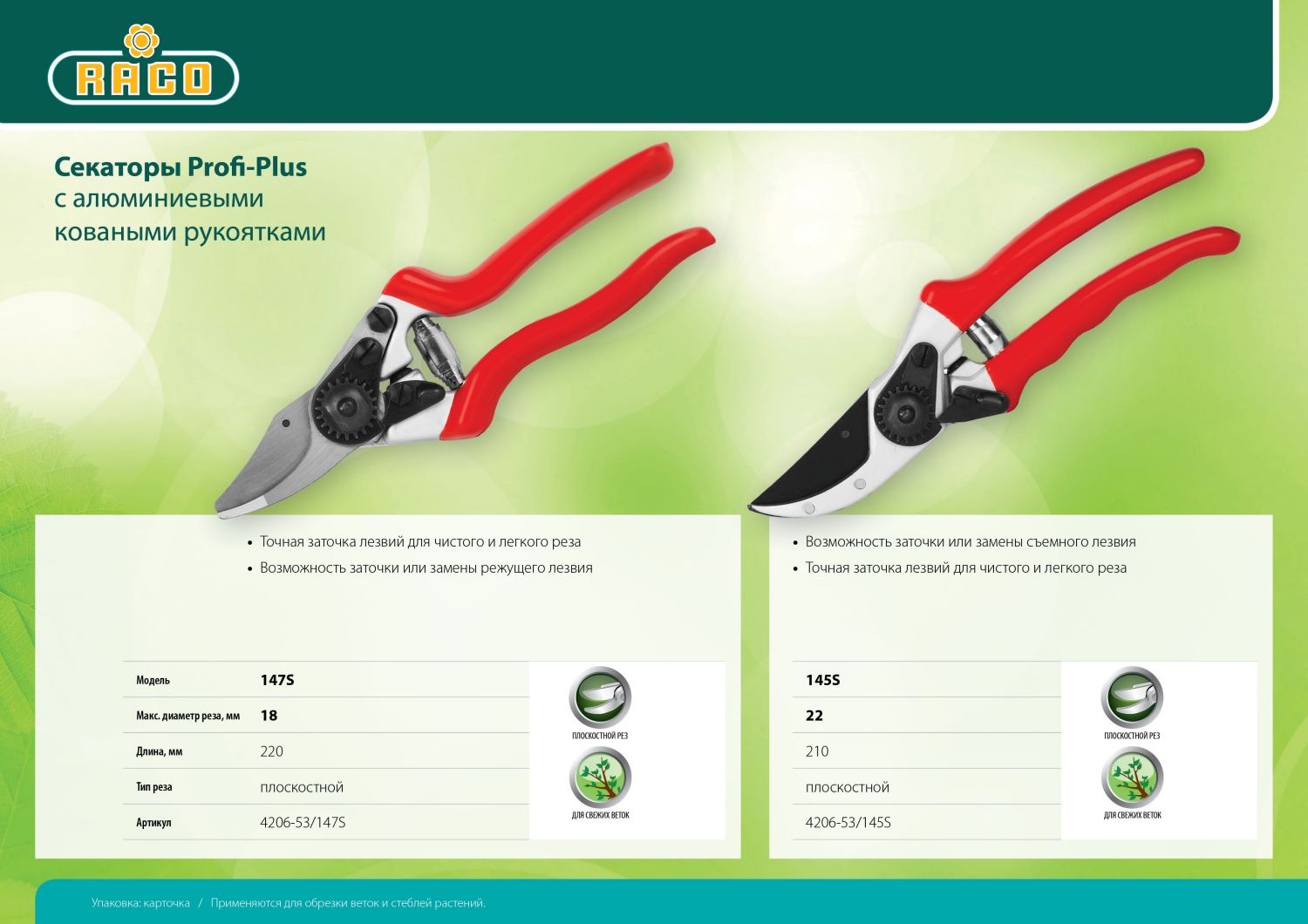 Предназначен для обрезки свежих веток кустов или деревьев. Идеально подходят для ухода за фруктовыми деревьями, виноградной лозой и цветочными растениями.