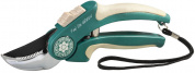 - Секатор снабжен верхним фиксатором и ремешком для ношения на руке.