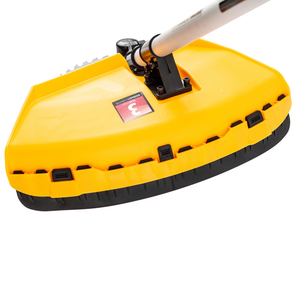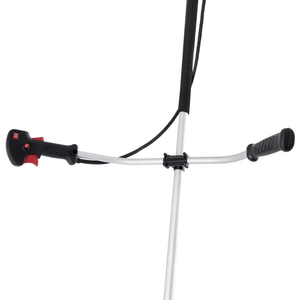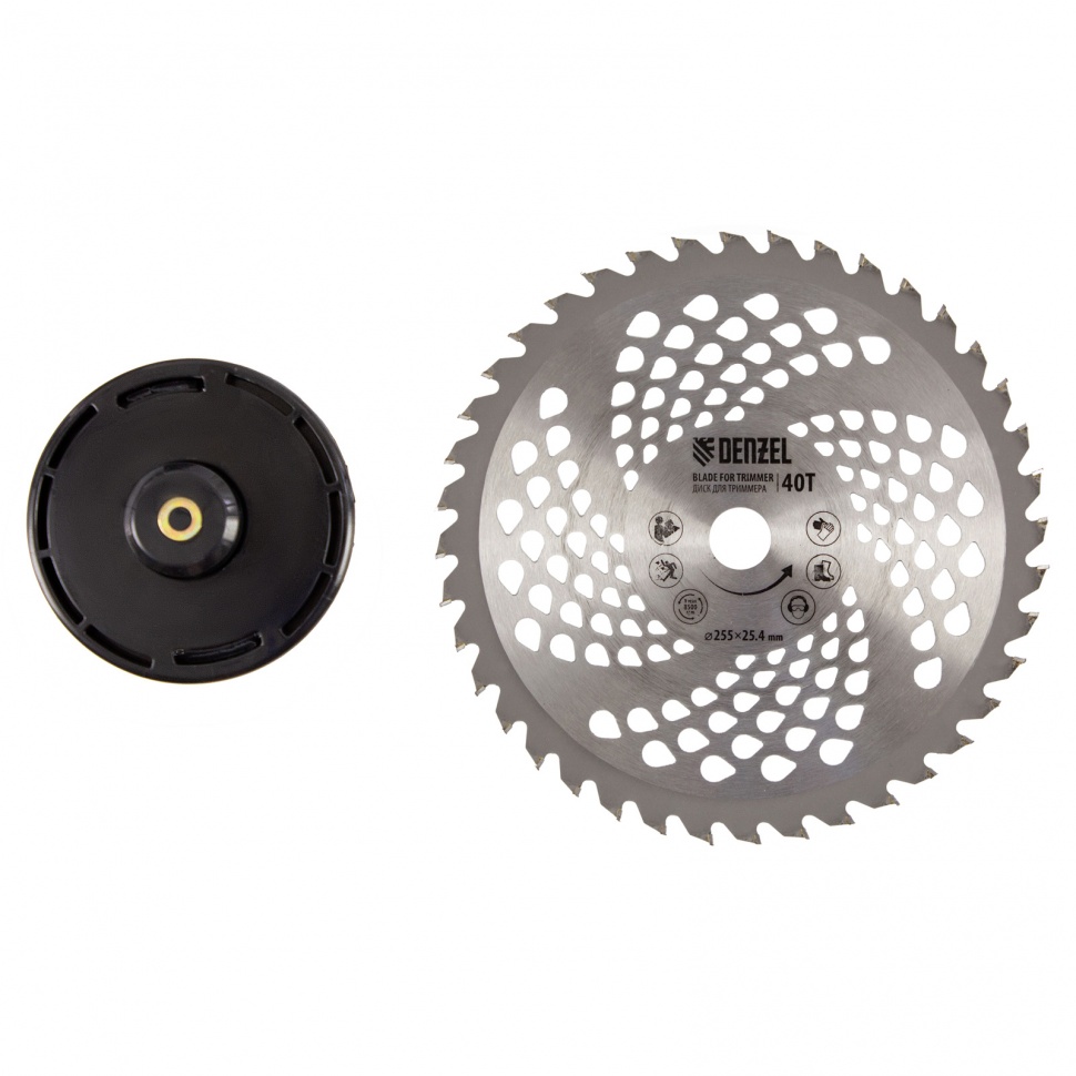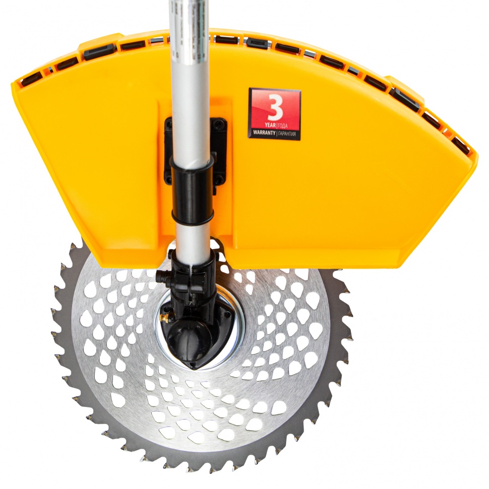 Бензиновый триммер Denzel DT-52 96226 оснащен экономичным, надежным и простым в эксплуатации двигателем мощностью 3 л.с. и объемом 52 см3, имеет неразъемную штангу и поставляется комплектом из 2 частей. Оптимален для подравнивания газона, избавления от травы с жесткими древовидными стеблями (полыни, крапивы, лебеды, борщевика), а также срезания кустарника и молодых побегов деревьев со стволами диаметром до 10 мм. Эффективно скашивает траву в труднодоступных местах: вдоль кромок дорожек, стен строений и вокруг деревьев. В комплект поставки входит катушка с леской для невысокой травы любой густоты, а также пильный диск для высокой сухой травы, лопухов, крапивы и борщевика. Испытаниями подтверждена возможность безотказной работы на протяжении не менее 80 часов.ПреимуществаВысокий ресурс — хромированный цилиндр двигателя, закаленный коленвал и поршень оптимизированной конструкции в несколько раз продлевают срок службы техники.Полуавтоматическая система подачи лески — достаточно слегка ударить катушкой о землю, не останавливая двигатель.Быстрый старт — благодаря усиленному классическому стартеру и праймеру (топливному насосу) двигатель легко запускается даже после долгого простоя.Низкий расход топлива — полного бака на 0,85 л хватает почти на 45 мин работы.Удобный контроль уровня топлива — бак изготовлен из полупрозрачного пластика.Надежность — прочная штанга выполнена из алюминия толщиной 1,5 мм.Удобное управление — все кнопки находятся на правой рукоятке под ладонью.Безопасность — пластиковый кожух защищает пользователя от вылетающей травы, камней, веток и мелких частиц.Продуманная конструкция — благодаря винтовому креплению крышки фильтр не выпадает во время работы, при необходимости его легко можно заменить.Эргономичность — велосипедные асимметричные ручки с прорезиненными рукоятками удобно лежат в руках.Комфортная работа — инструмент хорошо сбалансирован и оснащен системой гашения вибраций.Уменьшенная нагрузка на плечи и спину — триммер весит 7,6 кг и комплектуется наплечным ремнем.Дополнительные возможности — можно приобрести и установить на триммер диски Denzel 96323, 96325 для быстрого удаления растительности с жесткими стеблями, 96328 для скашивания молодых побегов кустарника диаметром до 3 мм.Подтвержденное качество — производитель предоставляет расширенную 3-летнюю гарантию на заводской брак.