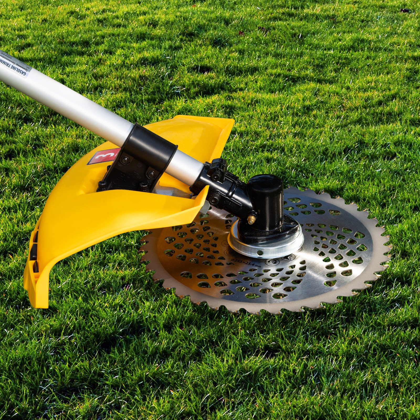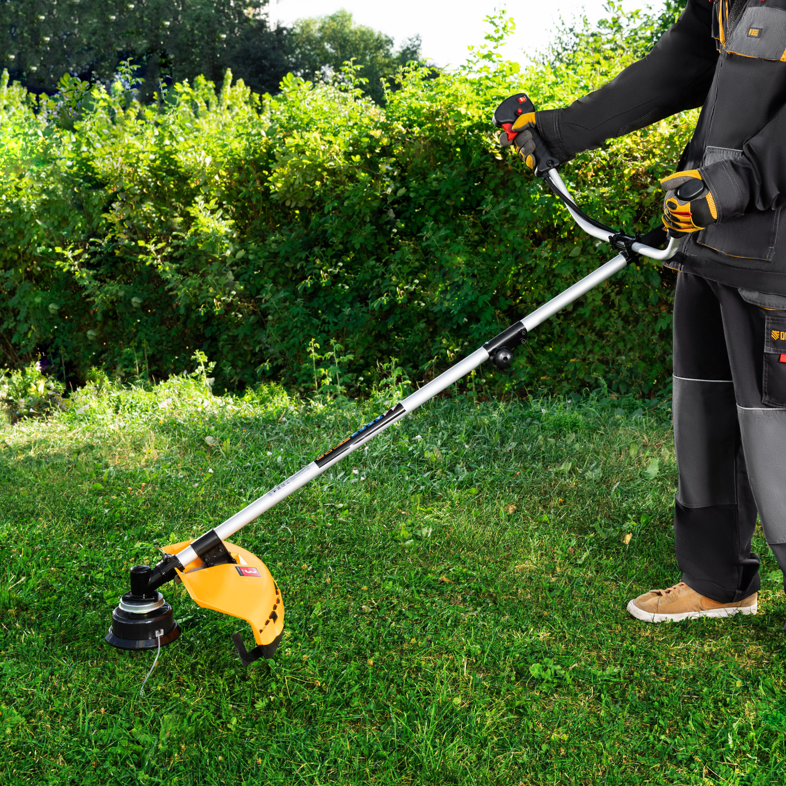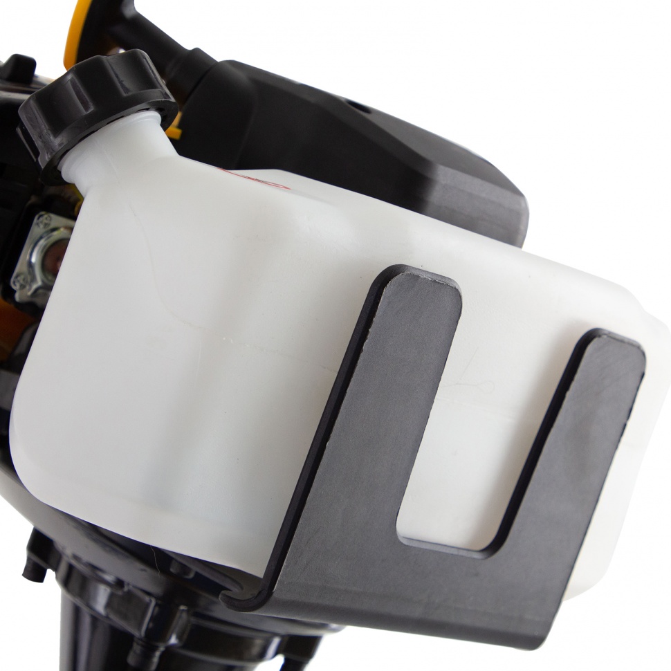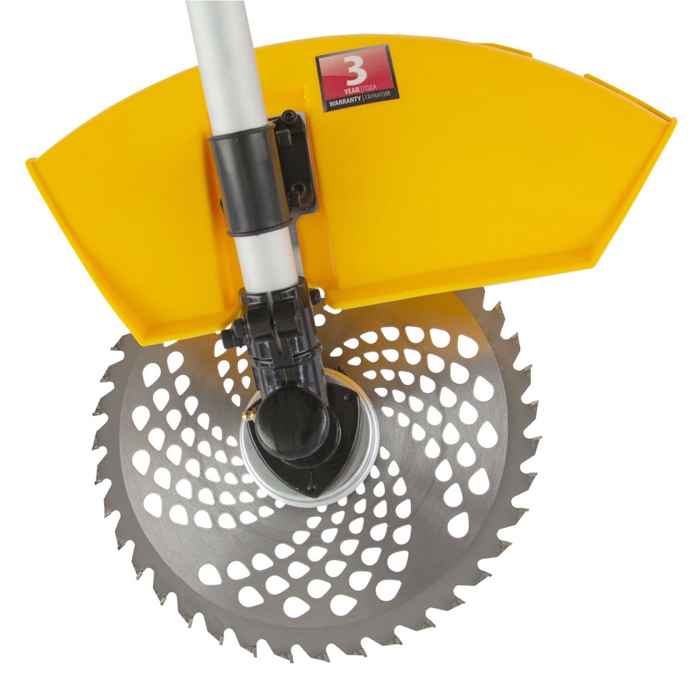 Бензиновый триммер Denzel DT-52S 96227 с двигателем мощностью 3 л.с. и объемом 52 см3, с разъемной штангой, поставляется комплектом из 2 частей и предназначен для скашивания травы всех типов, в том числе с жесткими древовидными стеблями — полыни, крапивы, лебеды, борщевика. Справляется также со срезанием кустарника и молодых побегов деревьев с диаметром стволов до 10 мм. Удобен для работы с мокрой травой и в труднодоступных местах. Ширина скашивания катушкой с леской составляет 420 мм, пильным диском — 255 мм. Испытаниями подтверждено — триммер способен работать до отказа 80 часов подряд.ПреимуществаВысокий ресурс — все детали двигателя хромированы, что значительно увеличивает его износостойкость.Быстрое обновление лески — достаточно слегка ударить катушкой о землю прямо во время работы, после чего корд вытянется, а специальный нож обрежет его до нужной длины.Легкий старт — благодаря топливному насосу двигатель быстро запускается даже после долгого простоя.Надежность — усиленный классический стартер рассчитан на длительное использование.Экономичность — полного бака объемом 0,85 л хватает почти на 45 мин. работы.Простой контроль уровня топлива — стенки бака полупрозрачные, поэтому его наполненность легко отслеживать.Удобное и простое управление — все кнопки собраны на правой рукоятке: выключатель, клавиша газа и блокиратор случайного пуска.Защита пользователя — пластиковый кожух предотвращает вылет травы, попадающих под нож камней и веток.Прочная конструкция — благодаря винтовому креплению фильтр не вываливается во время работы, стальной коннектор штанги выдерживает высокие нагрузки.Дополнительные возможности — можно приобрести и установить на триммер диски Denzel 96323, 96325 для быстрого удаления растительности с жесткими стеблями (полыни, крапивы, лебеды), 96328 для скашивания молодых побегов кустарника диаметром до 3 мм.Эргономичность — велосипедная асимметричная рукоятка с прорезиненными ручками обеспечивает оптимальное положение рук.Комфортное использование — благодаря небольшому весу триммера 7,8 кг, системе гашения вибраций, сбалансированности и удобному управлению даже длительная работа не вызывает дискомфорт.Удобное хранение и транспортировка — штанга легко разбирается на 2 части, поэтому триммер не занимает много места.Расширенная 3-летняя гарантия — высокое качество инструмента подтверждено производителем.