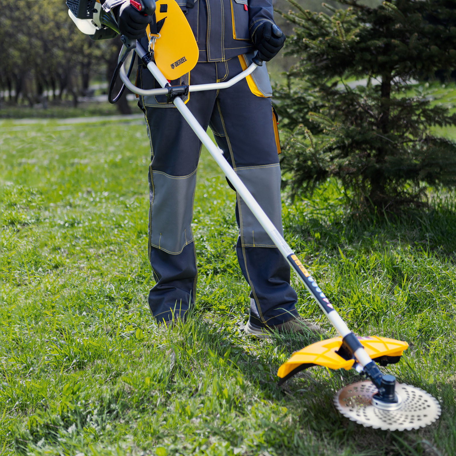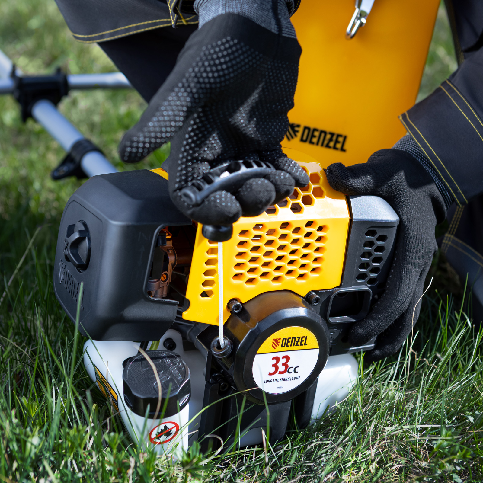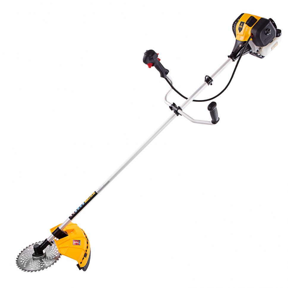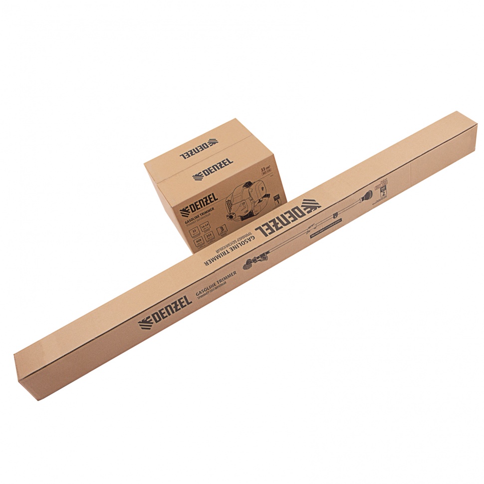Бензиновый триммер Denzel DGT-330 93234 с двигателем объемом 33 см3 и мощностью 1,8 л. с., с неразъемной штангой, состоит из 2 частей. Комплектуется усиленной катушкой из полиамида, трехлопастным ножом и пильным диском. Предназначен для подравнивания газона, скашивания травы различных типов, в том числе с жесткими стеблями (полыни, крапивы, лебеды), а также срезания борщевика, кустарника и молодых побегов деревьев с диаметром стволов до 10 мм. Удобен для работы в местах, недоступных для колесной косилки.ПреимуществаВысокий ресурс — детали двигателя хромированы, трансмиссионный вал закален токами высокой частоты.Прочность — алюминиевая штанга с увеличенной толщиной стенок 1,5 мм выдерживает повышенные нагрузки.Легкий старт — пусковая система Easy Start облегчает и ускоряет включение триммера даже после долгого простоя.Быстрое обновление лески — благодаря полуавтоматической катушке достаточно слегка ударить шпулей об землю и корд вытянется до нужной длины.Безопасность — пластиковый кожух защищает пользователя от вылетающей травы и мелких частиц.Удобное управление — клавиша зажигания вынесена под большой палец, это позволяет моментально остановить двигатель при необходимости.Низкий расход топлива — полного бака хватает на 45 минут работы.Удобный контроль уровня топлива — бак выполнен из полупрозрачного пластика.Продуманная конструкция — легкий доступ к воздушному фильтру облегчает обслуживание триммера.Эргономичность — велосипедные асимметричные ручки с прорезиненным покрытием удобно ложатся в руки.Комфортная работа — устройство хорошо сбалансировано, благодаря антивибрационной защите и двухплечевой разгрузочной системе длительная работа не вызывает усталость.Дополнительные возможности — можно приобрести и установить на триммер диск Denzel 96323 для быстрого удаления растительности с жесткими стеблями, 96328 для скашивания молодых побегов кустарника диаметром до 3 мм.Гарантия 3 года — высокое качество триммера подтверждено производителем.