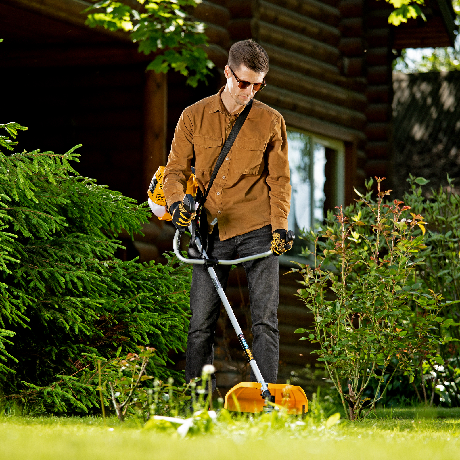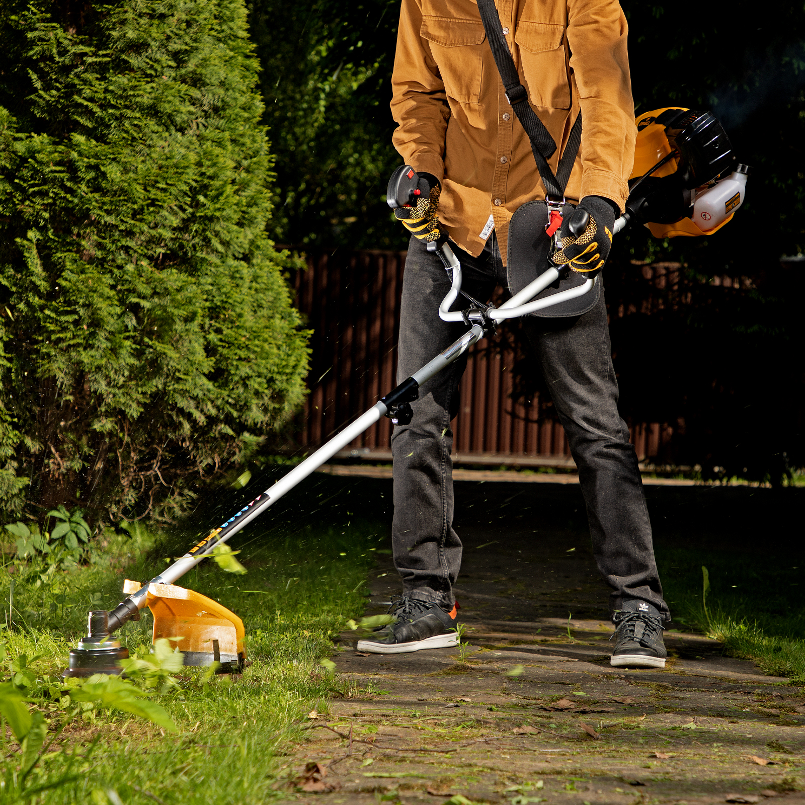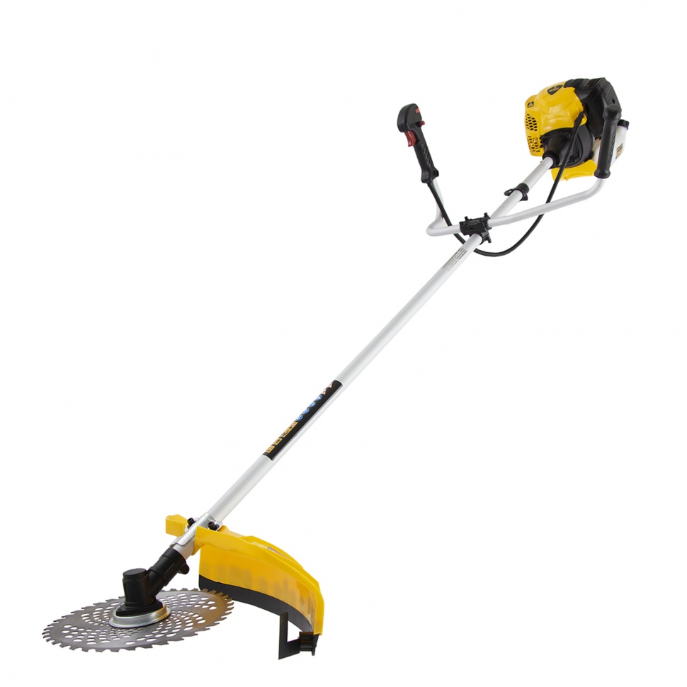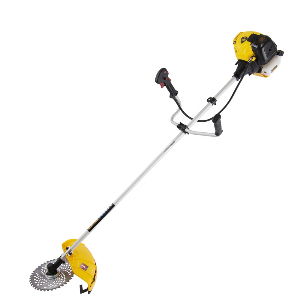 Бензиновый триммер Denzel DTL-52 96265, с увеличенным до 52 куб. см объемом двигателя и неразъемной штангой, состоит из 2 частей и отличается самыми высокими параметрами работы из линейки DTL. Подходит как для частичного подравнивания газона, так и скашивания травы всех типов, в том числе с жесткими древовидными стеблями (полыни, крапивы, лебеды, борщевика), а также срезания кустарника и молодых побегов деревьев с диаметром стволов до 10 мм. Два режущих инструмента — леска и пильный диск — работают на скорости 9500 об/мин и обеспечивают ширину скашивания 42 и 25,5 см соответственно. Двигатель мощностью 3 л.с. экономично потребляет топливо, поэтому часто заправлять бак не придется. Триммер не требует подключения к стационарному источнику питания и может использоваться в самом отдаленном уголке дачного участка.ПреимуществаВысокий ресурс поршневой группы — цилиндр, покрытый пористым хромом и хонингованный, обеспечивает стабильную и долгую работу двигателя.Удобное приготовление топливной смеси — дозатор для смешивания бензина и масла прилагается к триммеру.Контроль уровня топлива — прозрачные стенки позволяют отслеживать степень наполненности бензобака.Блокировка газа — случайный запуск двигателя исключен, что обеспечивает безопасность пользователя.Полуавтоматическая подача лески — увеличить длину корда можно легким ударом шпули о землю, при этом работу двигателя останавливать не придется.Автоматическое укорачивание лески — в случае, если длина корда превышает допустимую, лезвие на кожухе триммера подрезает его, предотвращая лишнюю нагрузку на двигатель и его перегрев.Безопасная работа — защитный кожух закрывает режущую часть, поэтому в сторону пользователя не отлетают ветки и камни.Быстрая смена оснастки — установка режущего элемента занимает несколько секунд.Удобное управление — эргономичная рукоятка асимметричной формы обеспечивает удобный хват.Хорошая балансировка — триммер не клонит в сторону даже при сложном маневрировании.Комфортная работа — плечевой ремень снижает нагрузку на руки, защита бедра предотвращает появления синяков от ударов штангой.Антивибрационная система — специальные амортизаторы снижают воздействие вибраций на организм пользователя, сохраняя суставы здоровыми.Мобильность — вес триммера составляет всего 7,6 кг, как у моделей с меньшей мощностью, поэтому его легко перемещать.Дополнительные возможности — можно приобрести и установить на триммер диски Denzel 96323, 96325 для быстрого удаления растительности с жесткими стеблями (полыни, крапивы, лебеды) или 96328 для скашивания молодых побегов кустарника диаметром до 3 мм.Гарантия 3 года — высокое качество техники подтверждено производителем.