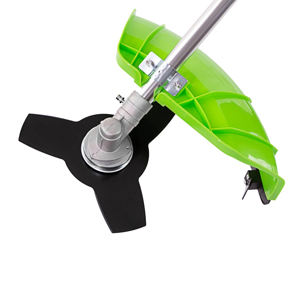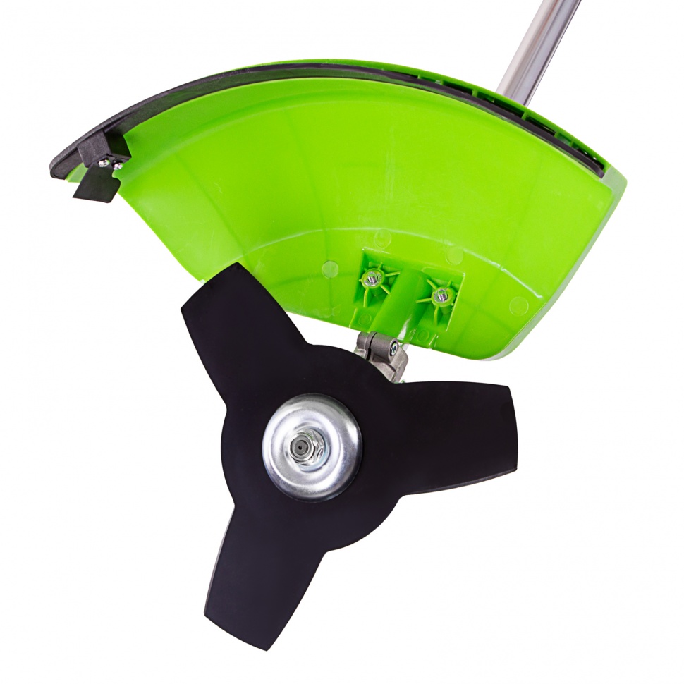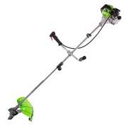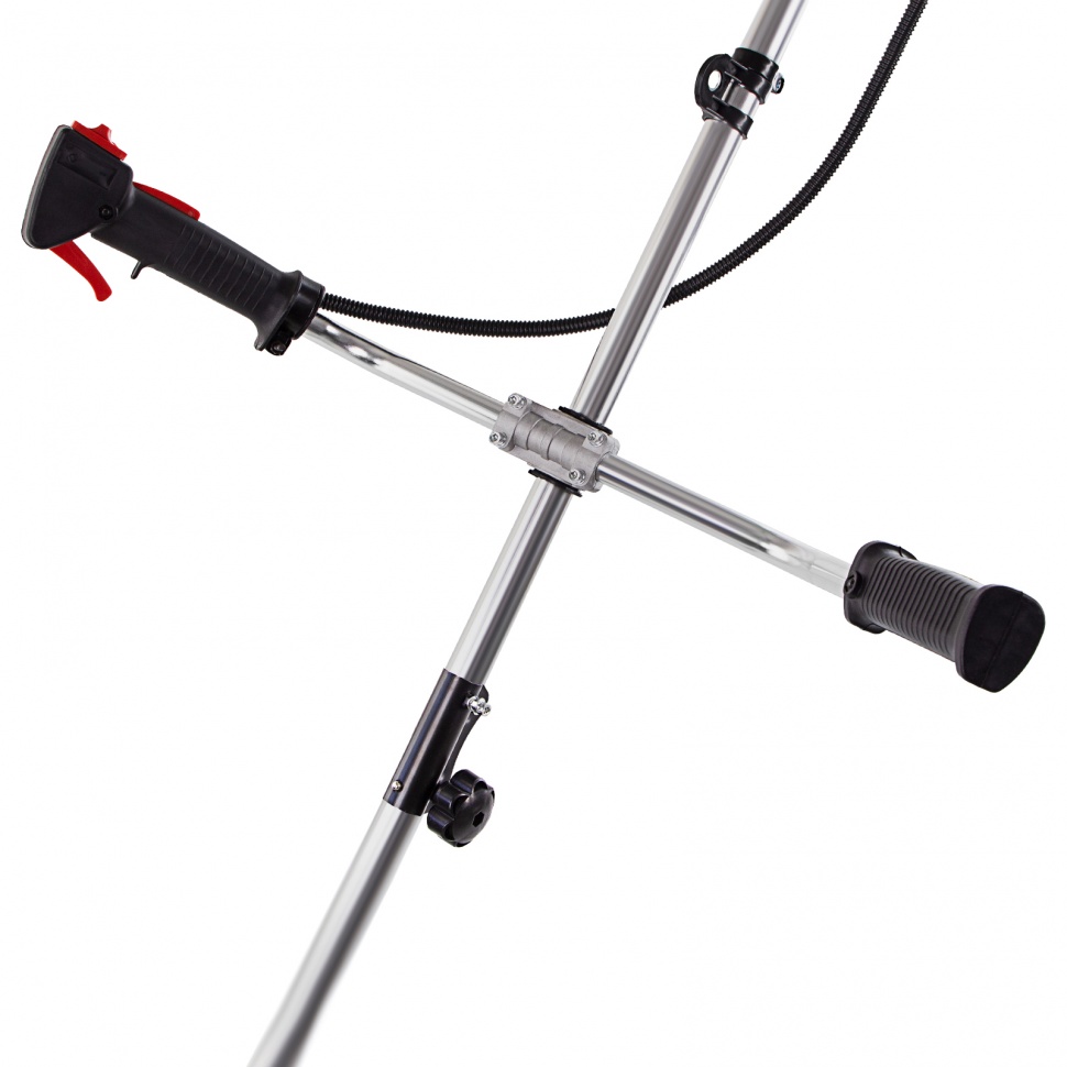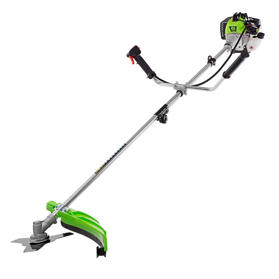 Бензиновый триммер Сибртех КС-1800Р 962525 с разъемной штангой, поставляющийся комплектом из 2 частей, имеет двигатель объемом 33 куб. см и мощностью 1,8 л.с., благодаря чему успешно справляется с подравниванием газона, скашиванием травы на лужайке и уничтожением сорняков. Выполнение этих задач облегчают режущие элементы — катушка с леской и трехлопастный нож. Леской триммер скашивает 42 см за один проход, а ножом — 25,5 см, поэтому можно за короткое время привести дачный участок в порядок. Благодаря разборной штанге мотокоса не занимает много места во время хранения и транспортировки.ПреимуществаДолговечность — редуктор бензотриммера выдерживает значительные нагрузки.Надежность — корпус двигателя выполнен из ударопрочного пластика и устойчив к повреждениям.Безопасность — блокиратор курка газа предотвращает случайное включение инструмента.Защита от летящей травы и камней — режущий элемент со стороны пользователя закрыт прочным пластиковым кожухом.Быстрый старт — праймер подкачки топлива облегчает пуск холодного двигателя.Низкий расход топлива — полного бака хватает почти на 45 минут работы, и его не нужно часто заправлять.Удобное приготовление топливной смеси — дозатор с крышкой уже входит в комплект поставки.Быстрое обновление лески — ее подача происходит при легком ударе катушкой о землю.Автоматическая обрезка корда — специальный нож укорачивает леску, предотвращая рост нагрузки на двигатель.Снижение вибраций — защитная система гасит колебания, что уменьшает усталость при длительной работе.Комфорт во время работы — велосипедные рукоятки и плечевой ремень обеспечивают оптимальное положение тела и правильное распределение нагрузки.