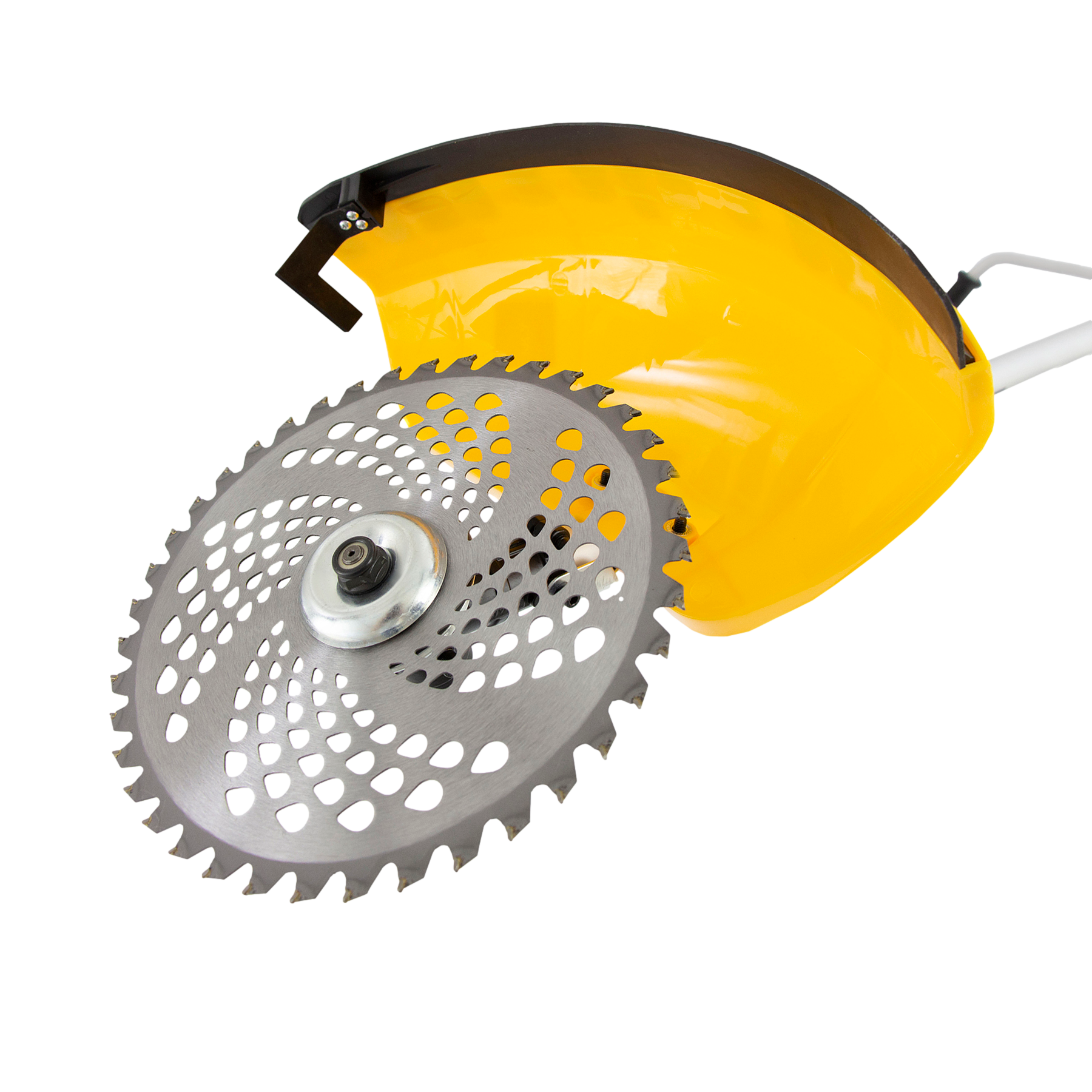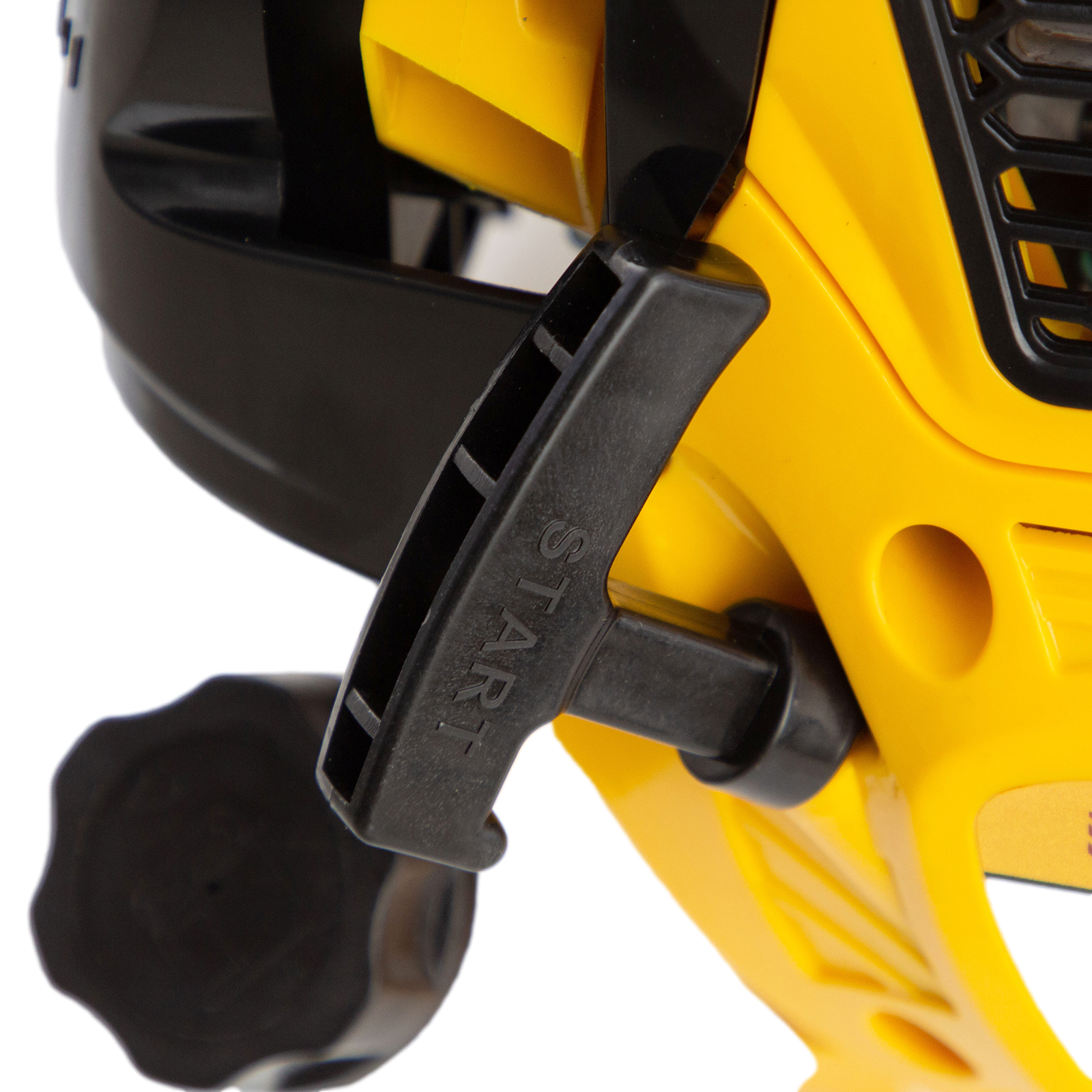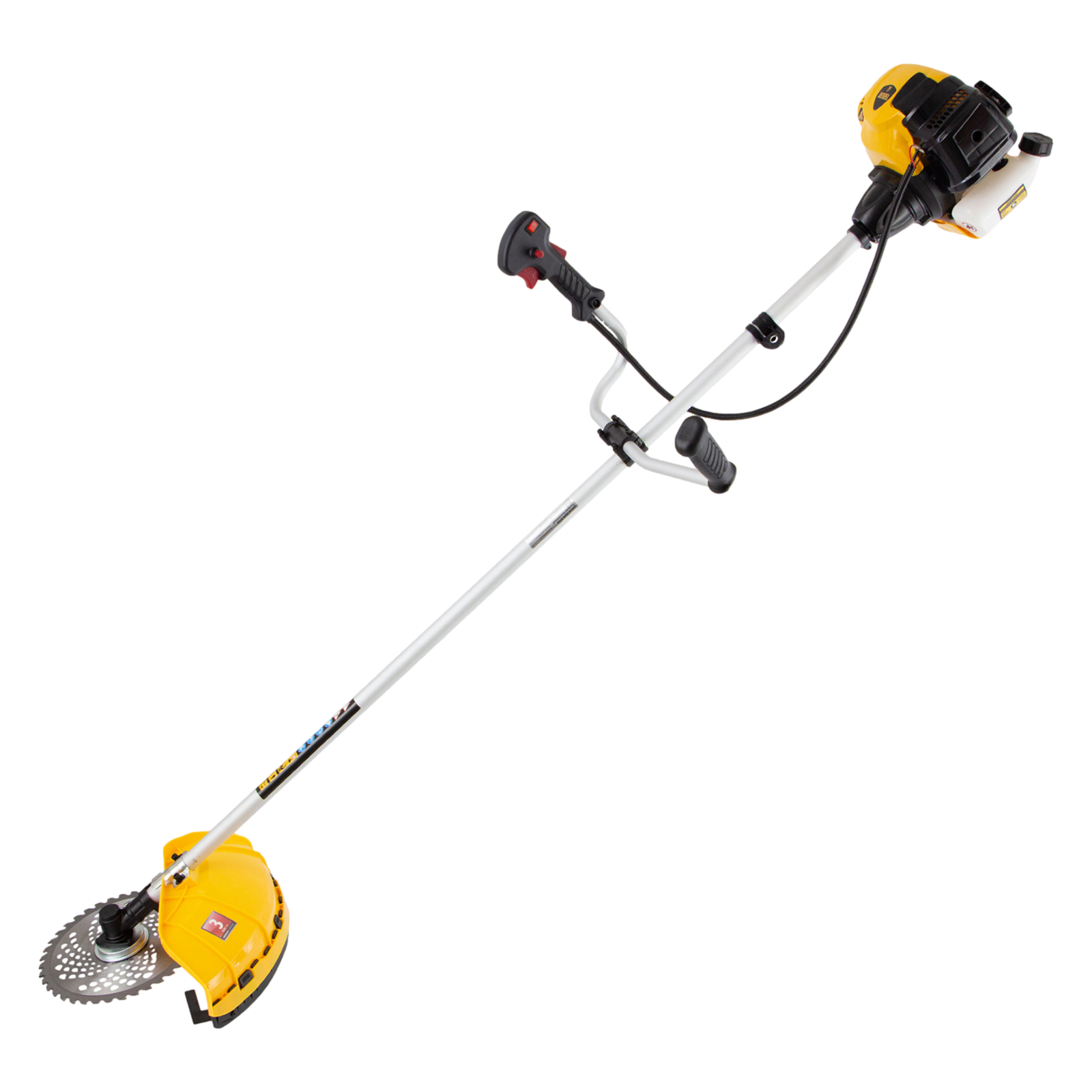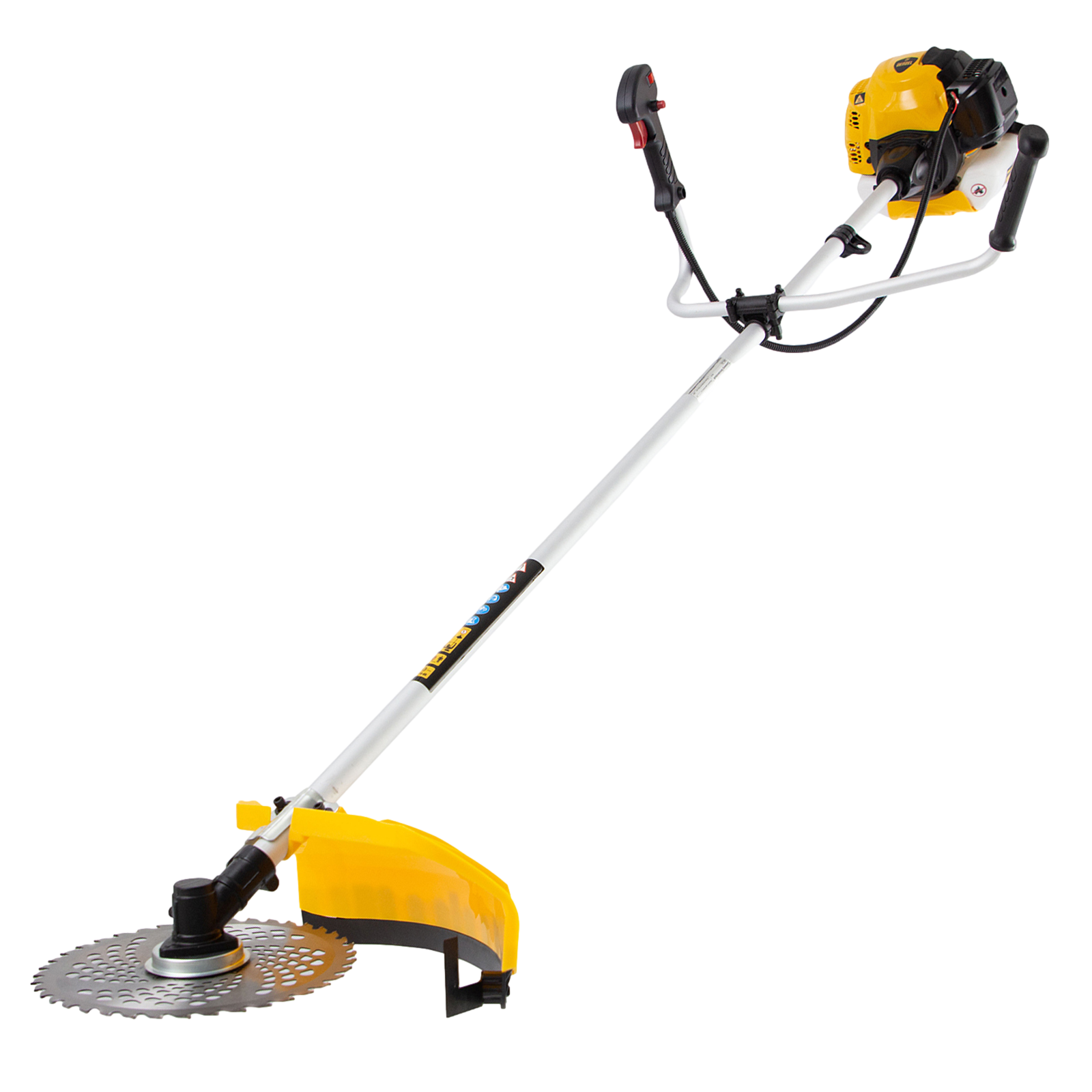 Бензиновый триммер Denzel DTL-33 96261 с объемом двигателя 33 см3 и неразъемной штангой подходит как для частичного подравнивания газона, так и скашивания травы всех типов, в том числе с жесткими древовидными стеблями (полыни, крапивы, лебеды, борщевика). Также эффективен для срезания кустарника и молодых побегов деревьев с диаметром стволов до 10 мм. Два режущих инструмента — леска и пильный диск — работают на скорости 9500 об/мин и обеспечивают ширину скашивания 42 и 25,5 см соответственно.Двигатель мощностью 1,8 л.с. экономично потребляет топливо, поэтому часто заправлять бак не придется. Триммер не требует подключения к стационарному источнику питания и может использоваться в самом отдаленном уголке дачного участка. ПреимуществаВысокий ресурс поршневой группы — цилиндр, покрытый пористым хромом и хонингованный, обеспечивает стабильную и долгую работу двигателя.Контроль уровня топлива — прозрачные стенки позволяют отслеживать степень наполненности бензобака.Блокировка газа — случайный запуск двигателя исключен, что обеспечивает безопасность пользователя.Полуавтоматическая подача лески — увеличить длину корда можно легким ударом шпули о землю, при этом работу двигателя останавливать не придется.Автоматическое укорачивание лески — в случае, если длина корда превышает допустимую, лезвие на кожухе триммера подрезает его, предотвращая лишнюю нагрузку на двигатель и его перегрев.Безопасная работа — защитный кожух закрывает режущую часть, поэтому в сторону пользователя не отлетают ветки и камни.Быстрая смена оснастки — установка режущего элемента занимает несколько секунд.Удобное управление — эргономичная рукоятка асимметричной формы обеспечивает удобный хват.Комфортная работа — плечевой ремень снижает нагрузку на руки, защита бедра предотвращает появление синяков от ударов штангой.Антивибрационная система — специальные амортизаторы снижают воздействие вибраций на организм пользователя, сохраняя суставы здоровыми.Мобильность — вес триммера составляет всего 7 кг, поэтому его легко перемещать.Удобное приготовление топливной смеси — дозатор для смешивания бензина и масла прилагается к триммеру.Дополнительные возможности — можно приобрести и установить на триммер диски Denzel 96323, 96325 для быстрого удаления растительности с жесткими стеблями (полыни, крапивы, лебеды) или 96328 для скашивания молодых побегов кустарника диаметром до 3 мм.Гарантия 3 года — высокое качество подтверждено производителем.