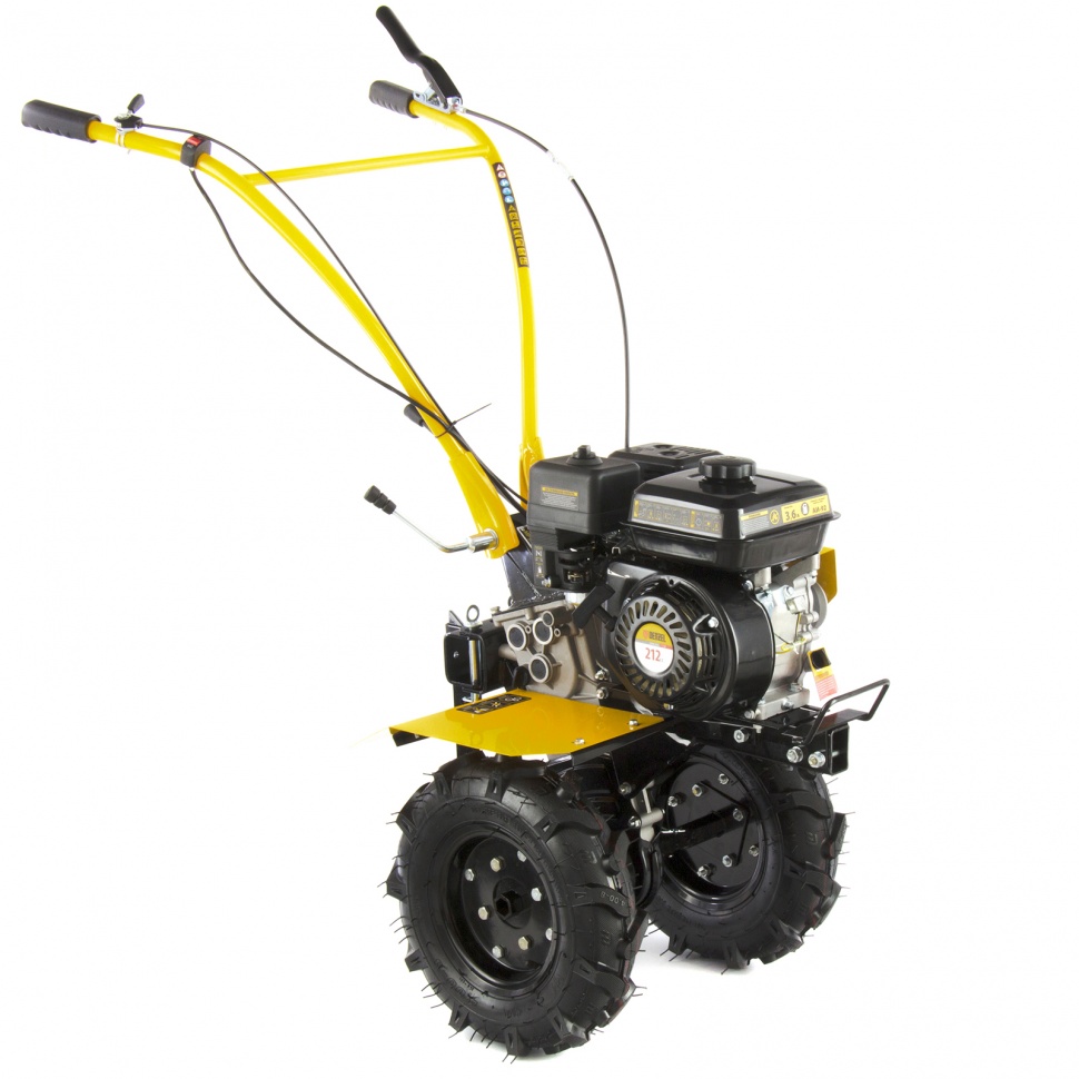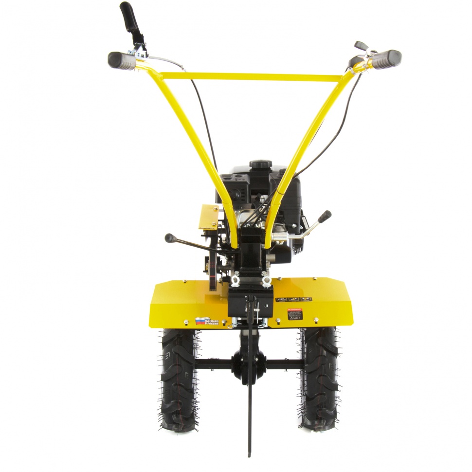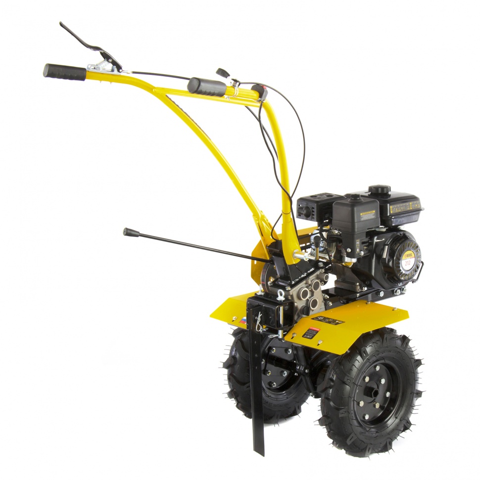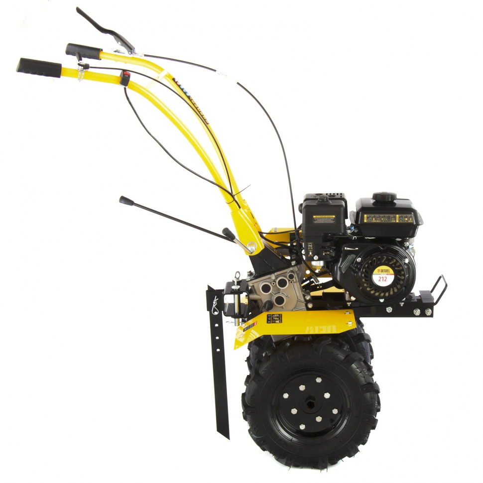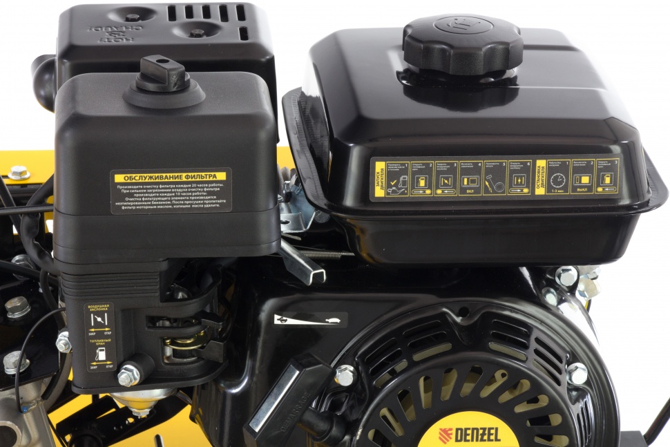 Мотоблок Denzel DPT-170 56401 используется для вспахивания целины или глинистой почвы, разбивает комки сырой земли, создает ровные борозды. Двигатель мощностью 7 л.с. позволяет ему справляться с участками более 15 соток. Получится с легкостью культивировать сухой, мокрый или вязкий грунт, за один проход обрабатывая участок шириной 85 см и глубиной до 35 см.Возможность работы на 3-х скоростях и универсальное сцепление позволяют эффективно эксплуатировать мотоблок с разным навесным оборудованием: дополнительными фрезами, косилками, инструментом для выкапывания корнеплодов, снегоуборочным оборудованием, тележками и др. Это делает устройство многофункциональным и значительно экономит средства пользователя.ПреимуществаТрехскоростная коробка передач (2 вперед/1 назад) — можно выбрать добиться маневренности на разной почве и легко извлечь почвофрезы из грунта.Экономичный двигатель Denzel серии Long Life — заправлять топливный бак придется не чаще 1 раза в 3,5 часа.Универсальность — шкив отбора мощности делает возможным подключение даже активного навесного оборудования, например, зубчатых дисков для удаления сорняков.Фрезы из закаленной стали — они не деформируется, подходят для любого типа почвы и не требуют повторной заточки.Надежность и стабильная работа — стальной коленвал, закаленный токами высокой частоты до твердости 45-50 HRС и качественный распредвал повышают ресурс мотоблока.Система LO-protection — исключен запуск двигателя при недостаточном уровне масла, это помогает продлить ресурс мотоблока и избежать поломок.Безопасность — 2 защитных крыла оберегают пользователя от вылетающей почвы, камней и других предметов.Регулировка сошника по высоте — легко добиться неизменной глубины вспахивания для каждого типа почвы и поднять производительность работы.Комфортное управление — регулятор оборотов вынесен на рукоятку перед оператором, что позволяет быстро менять темп работы под тип грунта.Эргономичность — рукоятки находятся на удобном расстоянии друг от друга, дополнительно укреплены поперечной балкой и прорезинены для снижения вибраций.Идеальное равновесие — несмотря на вес более 50 кг мотоблоком легко управлять, т.к. он отцентрован на заводе.Легкое передвижение — пневматические колеса диаметром 47 см обеспечивают отличную проходимость.Металлическая ручка — мотоблок удобно поднимать, например, для загрузки в транспорт.Расширенная гарантия 3 года — качество мотоблока подтверждено производителем.