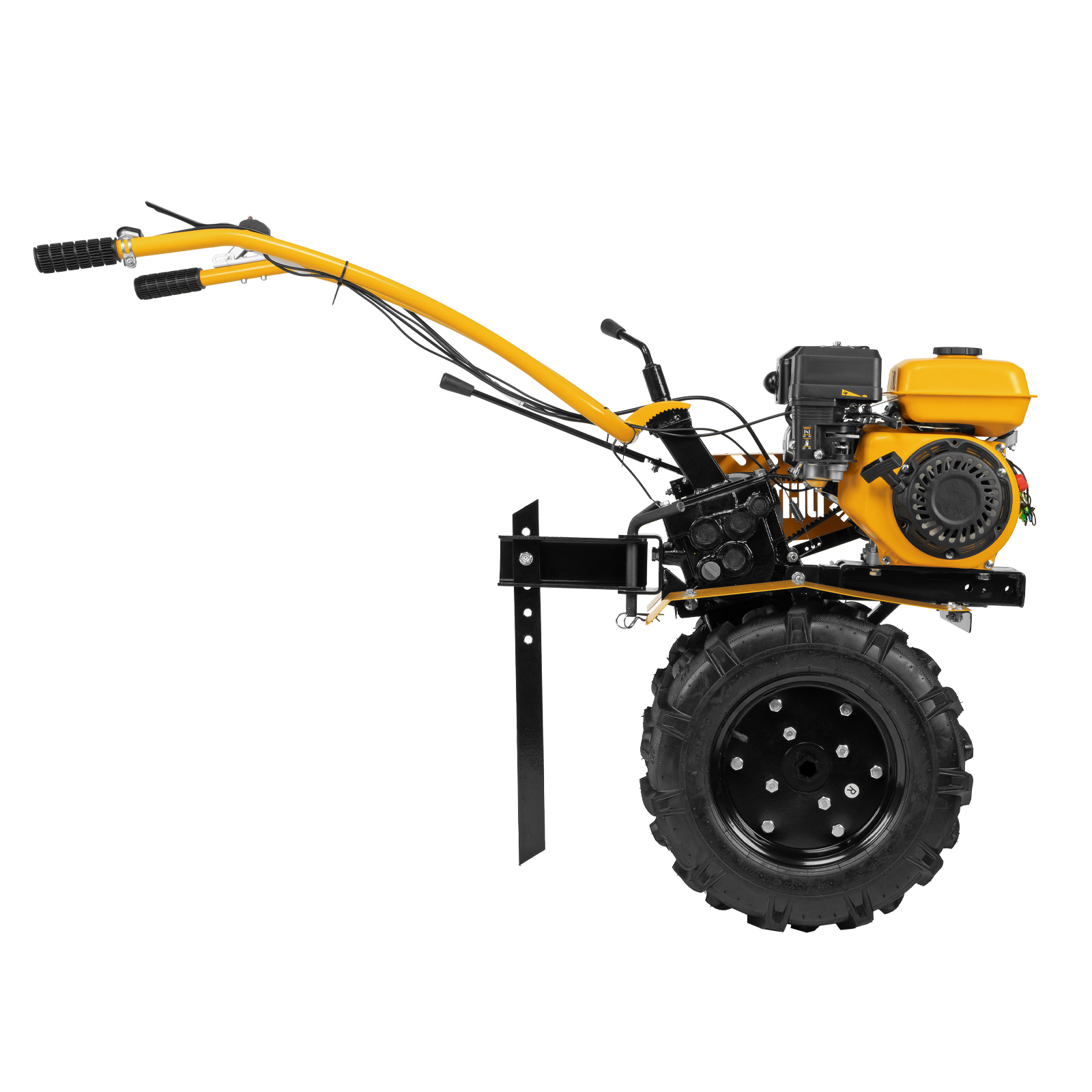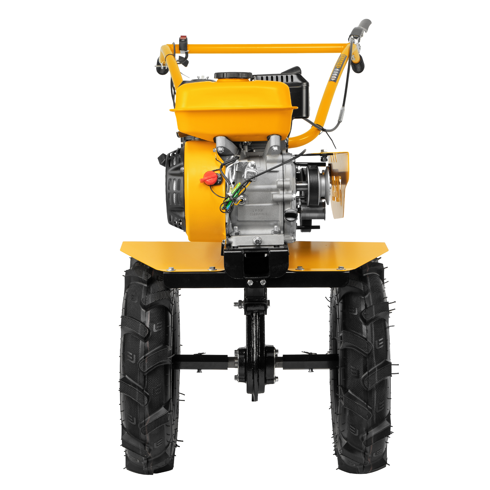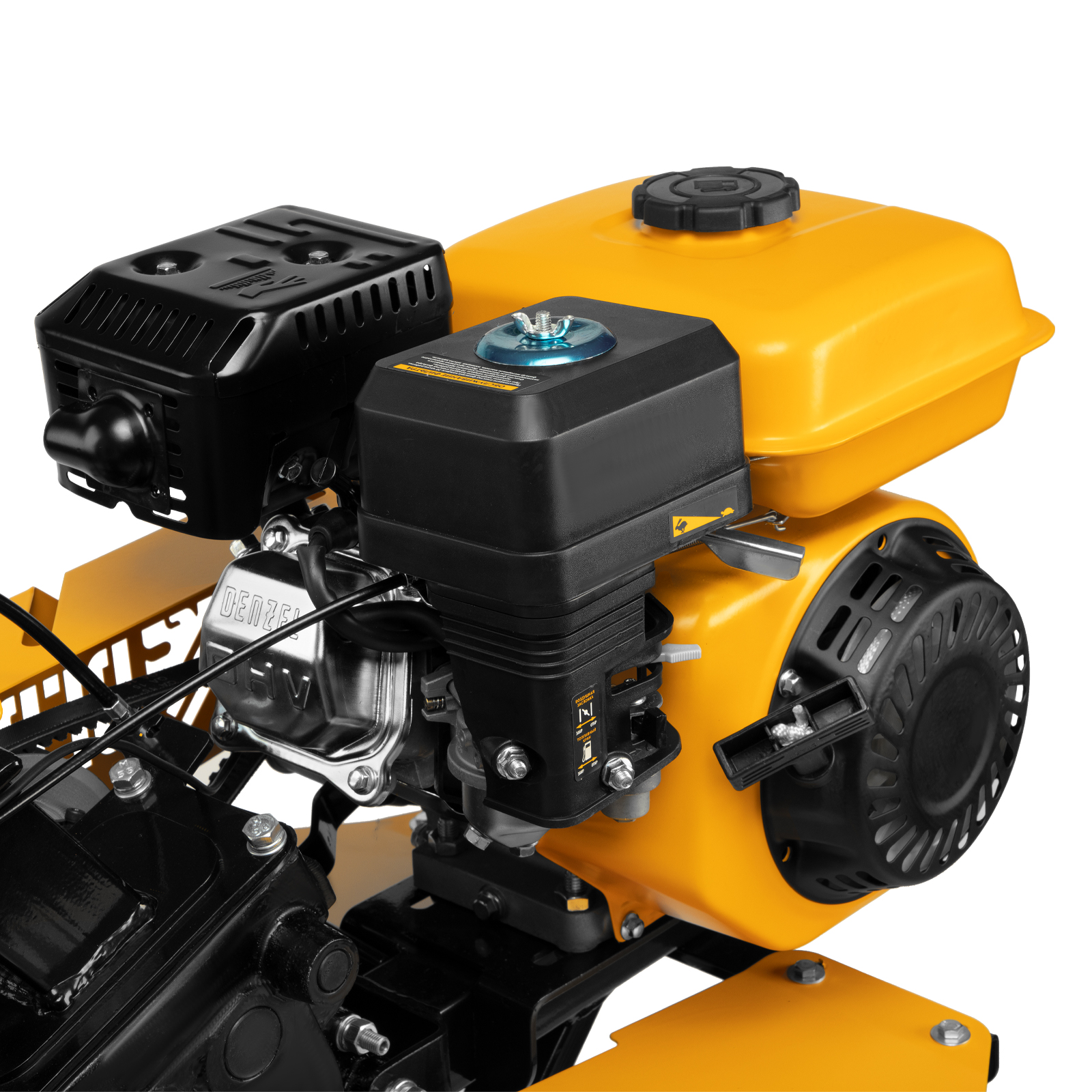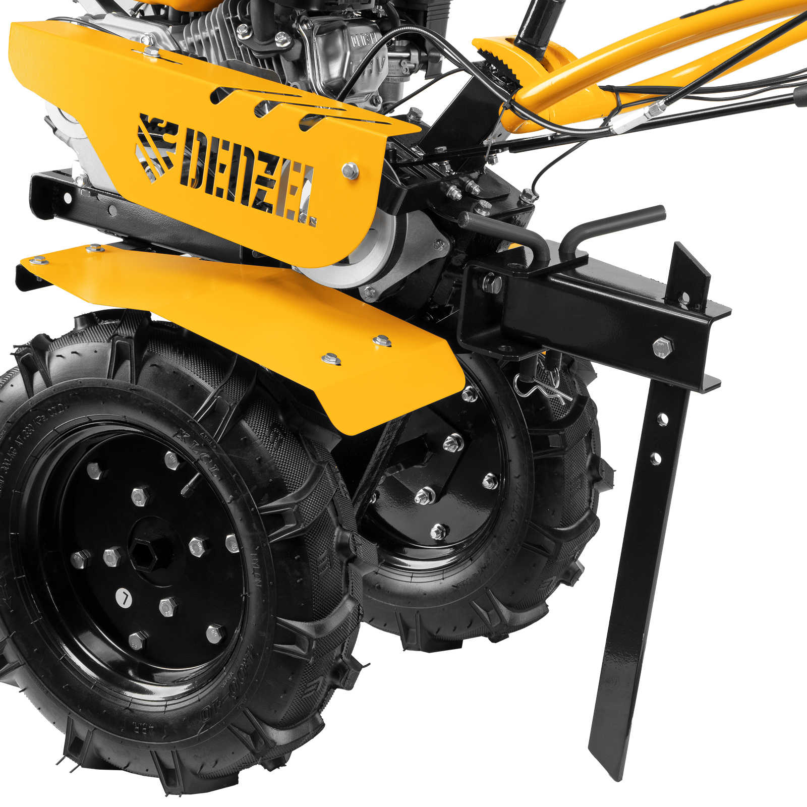 Мотоблок Denzel DPT-270 56402 предназначен для больших территорий площадью от 15 соток. Благодаря мощности 7 л.с. и острым фрезам он без труда вспашет целину, справится с глинистой почвой, обработает даже вязкий грунт. 3 скорости работы обеспечивают легкое переключение в процессе культивирования, а вес более 60 кг позволяет достигать глубины обработки до 35 см.Модель отличается универсальным сцеплением, что делает возможным присоединение практически любого навесного оборудования, представленного на рынке: для уборки территории, скашивания травы, посадки и сбора урожая и т.д. Для крепления активного навесного оборудования предусмотрен шкив отбора мощности.Преимущества2 скорости вперед и одна назад — техника может использоваться на разном грунте, а переключение скорости на движение назад позволяет быстро и легко извлекать фрезы из почвы любого типа.Экономичность — двигатель Denzel из серии Long Life отличается медленным расходом топлива — заливать бензин можно не чаще 1 раза в 3,5 часа.Защита двигателя — система LO-protection не позволит мотору включиться, если уровень масла будет ниже допустимого, что сохранит основные узлы мотоблока от поломки.Высококачественные фрезы из закаленной стали (24 шт.) — они не нуждаются в заточке, покрыты антикоррозийной краской, поэтому прослужат долгое время.Высокий ресурс работы — коленвал выполнен из закаленной до твердости 45-50 HRС стали, распредвал также отличается высоким качеством, это повышает надежность двигателя внутреннего сгорания и обеспечивает стабильность его работы.Надежность — чугунный корпус редуктора отличается повышенной прочностью, рычаг сцепления выполнен из металла.Безопасная работа — защитная планка предотвращает выброс разрыхленной почвы, камней и прочих предметов на оператора.Сошник с регулировочными отверстиями — можно выбрать нужную глубину культивации и поддерживать ее на всем участке.Легкое управление — регулятор оборотов и выключатель зажигания расположены на рукоятках, это позволяет быстро менять скорость на участках разной сложности.Комфортная работа — рукоятки находятся на оптимальном расстоянии друг от друга, имеют прорезиненные наконечники, гасящие вибрации, а для большей прочности укреплены поперечной балкой.Идеальное равновесие — мотоблок отцентрован на заводе, поэтому с ним справится даже новичок.Свобода движений — большие пневматические колеса входят помогают перевозить мотоблок в нужное место даже по неровной земле и не боятся повреждений.Комфортная транспортировка — усиленная металлическая ручка на передней части корпуса позволяет без труда перемещать технику.Расширенная гарантия 3 года — качество мотоблока подтверждено производителем.