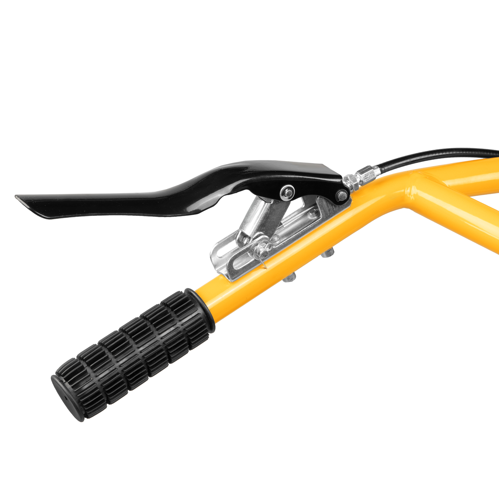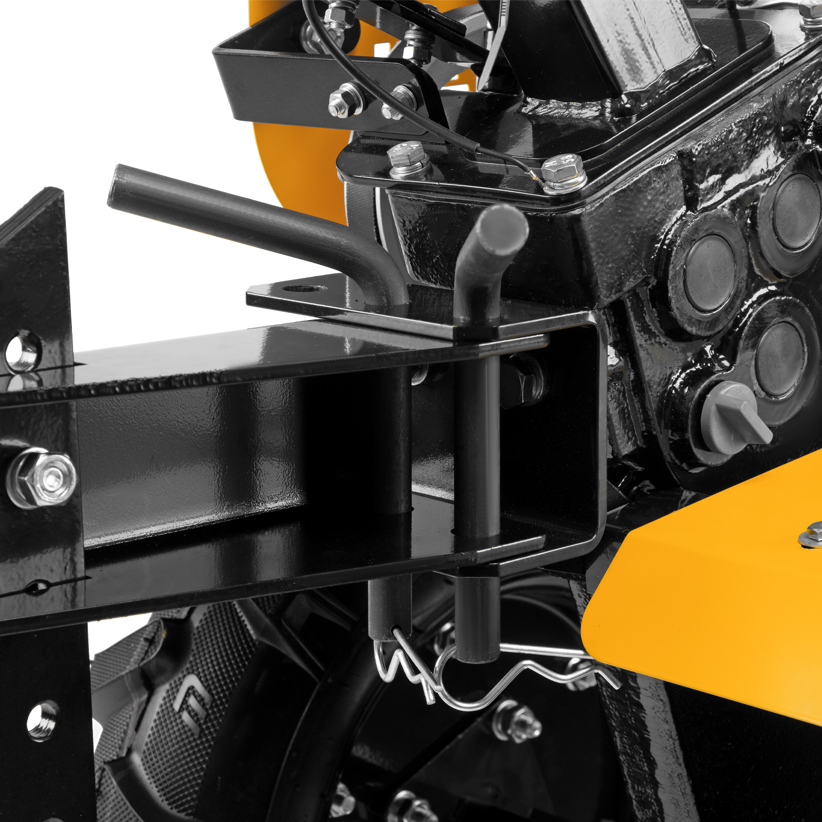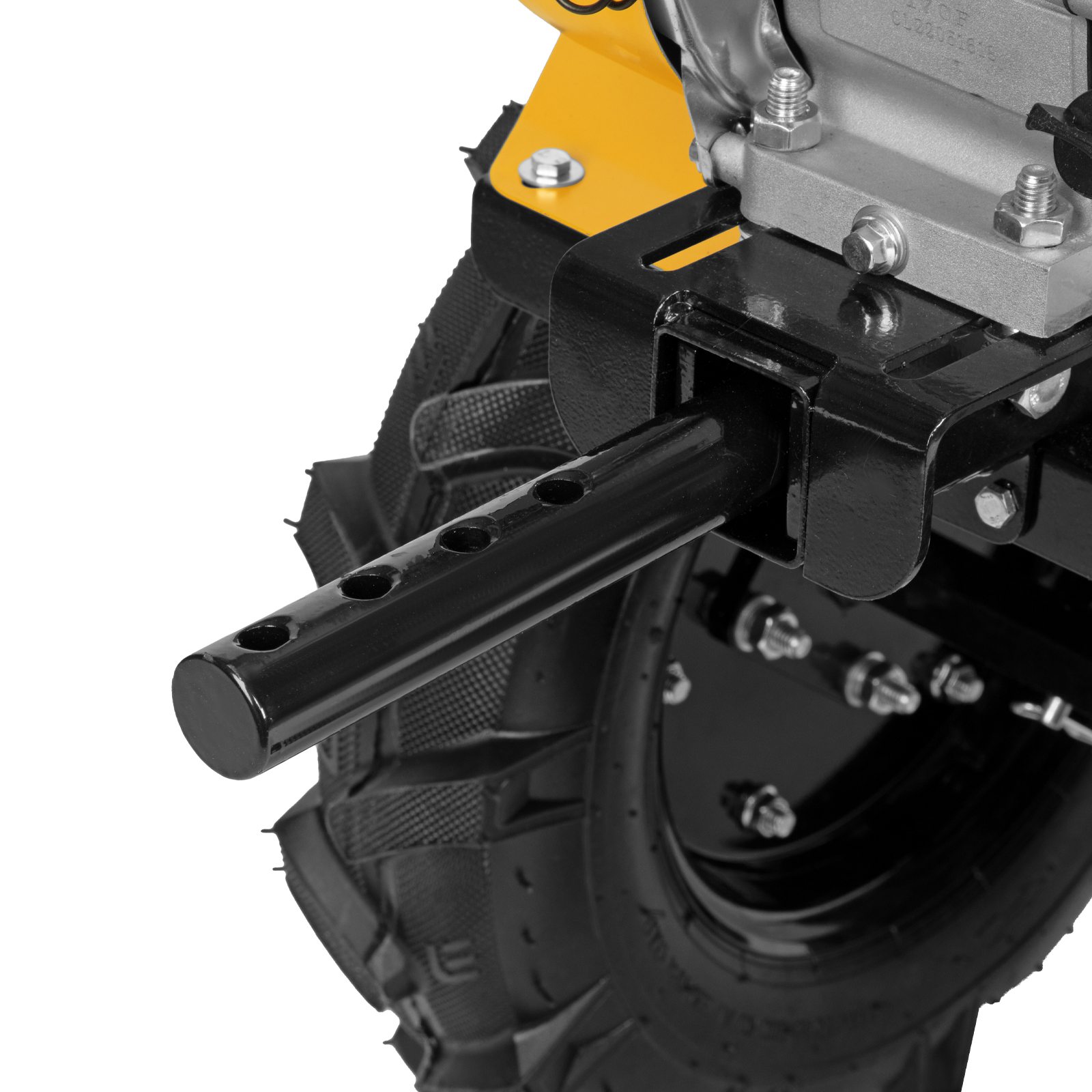 Мотоблок Denzel DPT-270S 56442 с двигателем объемом 212 см3 и мощностью 7 л. с., ременным механизмом сцепления, фрезами 3 х 4, шкивом отбора мощности (ШОМ) и коробкой передач 2В/1Н предназначен для проведения сельскохозяйственных работ. Максимальная ширина обработки составляет 1000 мм. Фрезы собираются из двух двойных и двух одинарных секций, что позволяет регулировать ширину вспашки. Шкив отбора мощности и универсальный кронштейн диаметром 30 мм позволяют установить различное навесное оборудование: плуг, окучник, картофелевыкапыватель, а также грунтозацепы и удлинители осей. Совместимые артикулы: Denzel 59901, 59902, 59903, 59904, 59905, 59906, 59907, 59908. Такое решение значительно расширяет возможности мотоблока и позволяет минимизировать расходы на закупку сельскохозяйственной техники.Преимущества Надежность — мощный 4-тактный двигатель серии Long Life обеспечивает длительную стабильную работу мотоблока. Долговечность — система защиты не позволит запустить двигатель при низком уровне масла. Эффективная работа — благодаря усиленному шестеренчато-цепному редуктору с чугунным корпусом мотоблок успешно справляется даже с плотным, глинистым грунтом. Безопасность — защитные крылья предотвращают вылет из-под колес комьев земли и твердых предметов. Настраиваемая глубина вспашки — степень погружения фрез в почву можно задать, отрегулировав сошник по высоте. Защита двигателя от поломки — воздушный фильтр препятствует попаданию в цилиндр твердых частиц. Удобная работа — основные элементы управления расположены на рукоятках, для включения сцепления и регулировки оборотов двигателя не нужно наклоняться. Маневренность — две скорости вперед и одна назад, а также пневматические колеса обеспечивают повышенную проходимость. Комфорт пользователя — руль регулируется в 2-х плоскостях, что позволяет установить его в наиболее удобное положение. Гарантия 3 года — надежность техники подтверждена производителем.