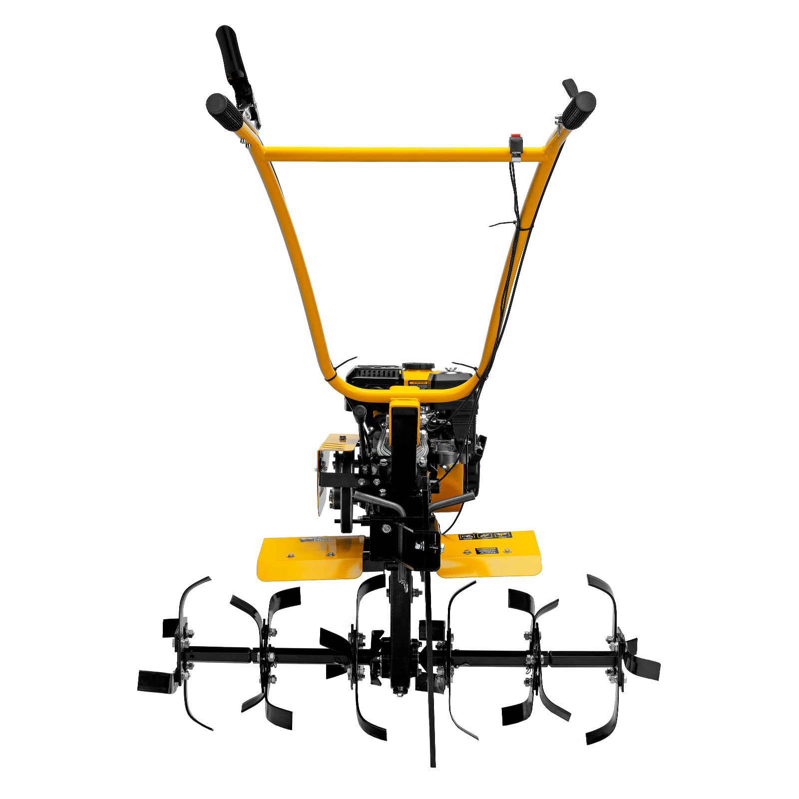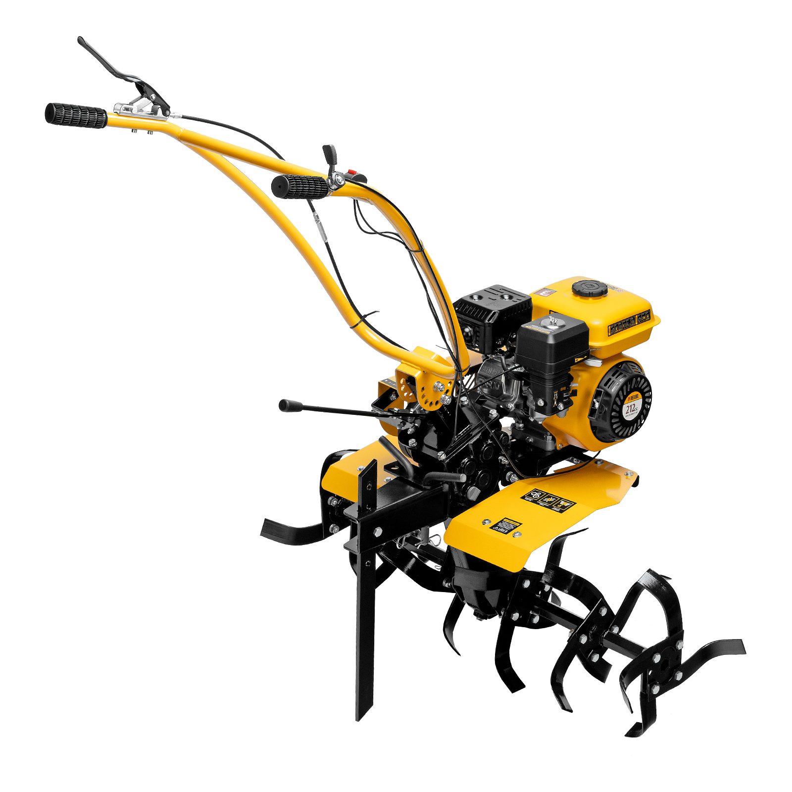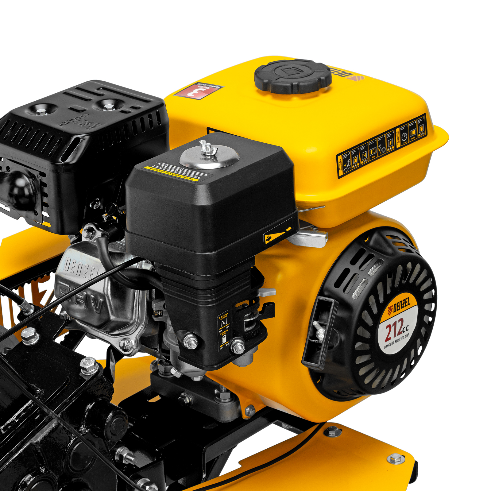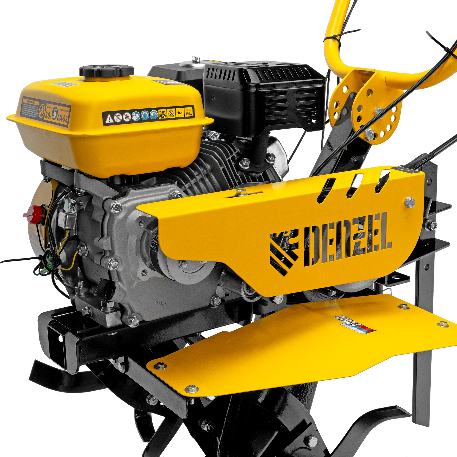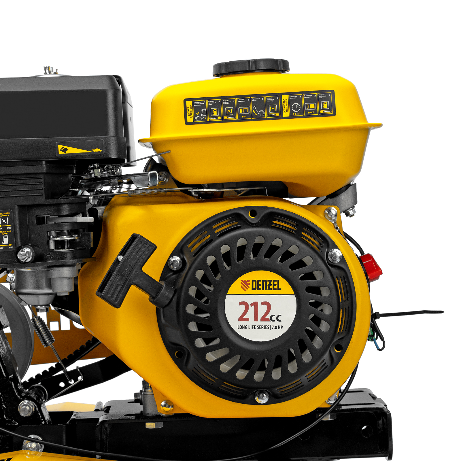 Мотоблок Denzel DPT-270SB 56452 мощностью 7 л.с., с ременным механизмом сцепления, оснащен фрезами 3 х 4, шкивом отбора мощности (ШОМ) и коробкой передач 2В/1Н. Предназначен для выполнения земляных работ: рыхления, вспахивания, прополки и т. д. Успешно справляется даже с плотной, глинистой почвой. Разборные фрезы с дополнительными секциями позволяют регулировать ширину обработки до 1 м.Чугунный шестеренчато-цепной редуктор позволяет работать длительное время с большими нагрузками, шкив отбора мощности и кронштейн диаметром 30 мм позволяют подключать активное навесное оборудование. При помощи универсальной сцепки мотоблок агрегатируется с различным навесным оборудованием Denzel: плугом, окучником, картофелевыкапывателем (совместимые артикулы 59905, 59911, 59906, 59907, 59912, 59908, 59913). Тем самым можно сократить расходы на приобретение сельскохозяйственной техники. Повысить проходимость можно при помощи грунтозацепов 59901, 59914, 59915, 59916, 59917. Установка прицепа Denzel 59950 позволяет использовать мотоблок для перемещения по участку и транспортировки грузов.ПреимуществаНадежность — мощный и экономичный 4-тактный двигатель серии Long Life с воздушным охлаждением обеспечивает стабильную работу на протяжении длительного времени.Высокая прочность — 6 рядов фрез из закаленной стали не деформируются при высоких нагрузках, подходят для обработки любого грунта и не требуют повторной заточки. Система защиты от поломки — двигатель не запустится при низком уровне масла. Маневренность — 2 скорости вперед и 1 назад обеспечивают уверенное передвижение по участку. Настраиваемая глубина вспахивания — отрегулировав сошник по высоте, можно задать степень погружения фрез до 350 мм. Безопасность пользователя — защитные крылья предотвращают вылет комьев земли и других предметов. Удобная эксплуатация — основные элементы управления вынесены на рукоятки. Комфортное использование — руль регулируется в вертикальной плоскости, что позволяет установить оптимальную высоту в зависимости от роста пользователя. Гарантия 3 года — надежность техники подтверждена производителем.