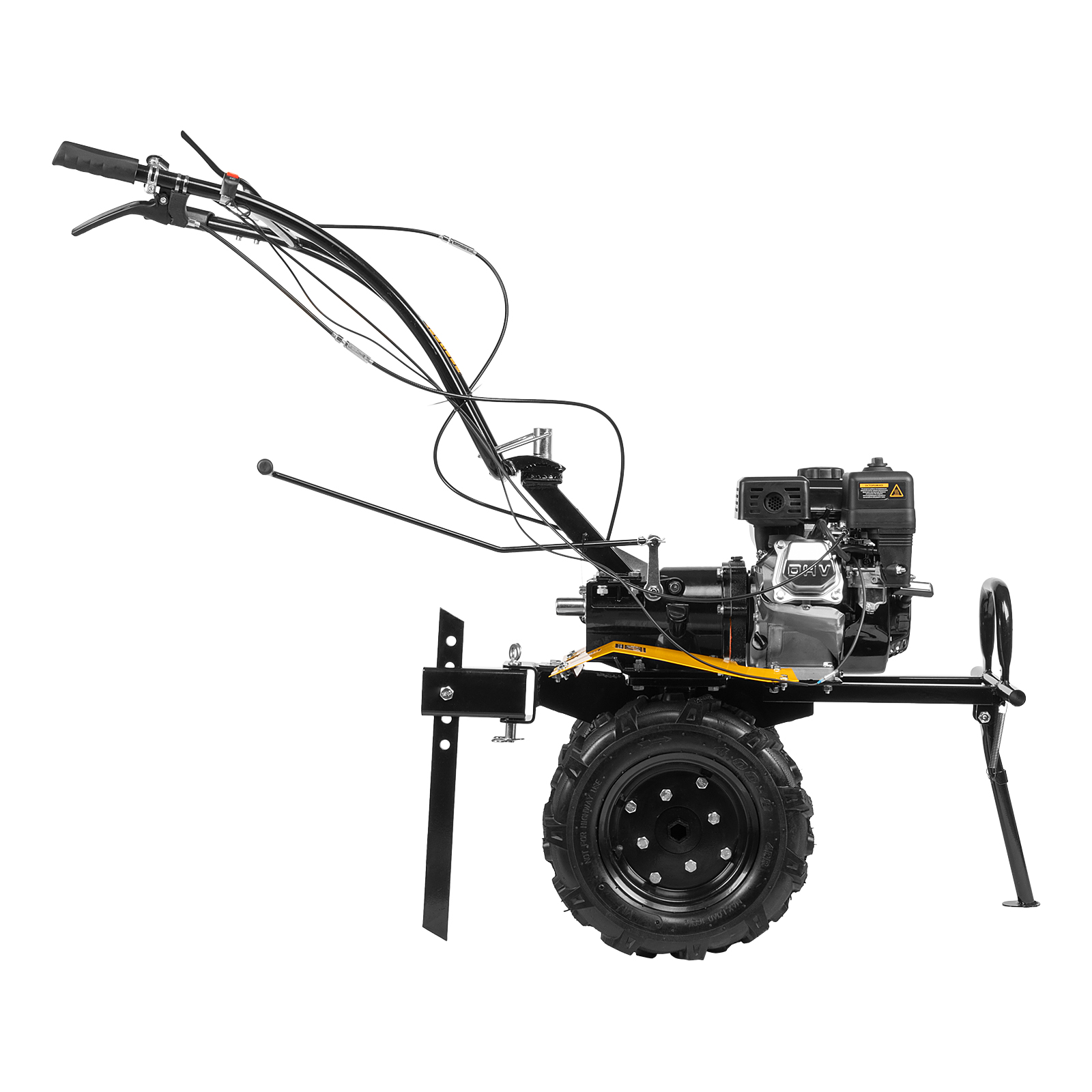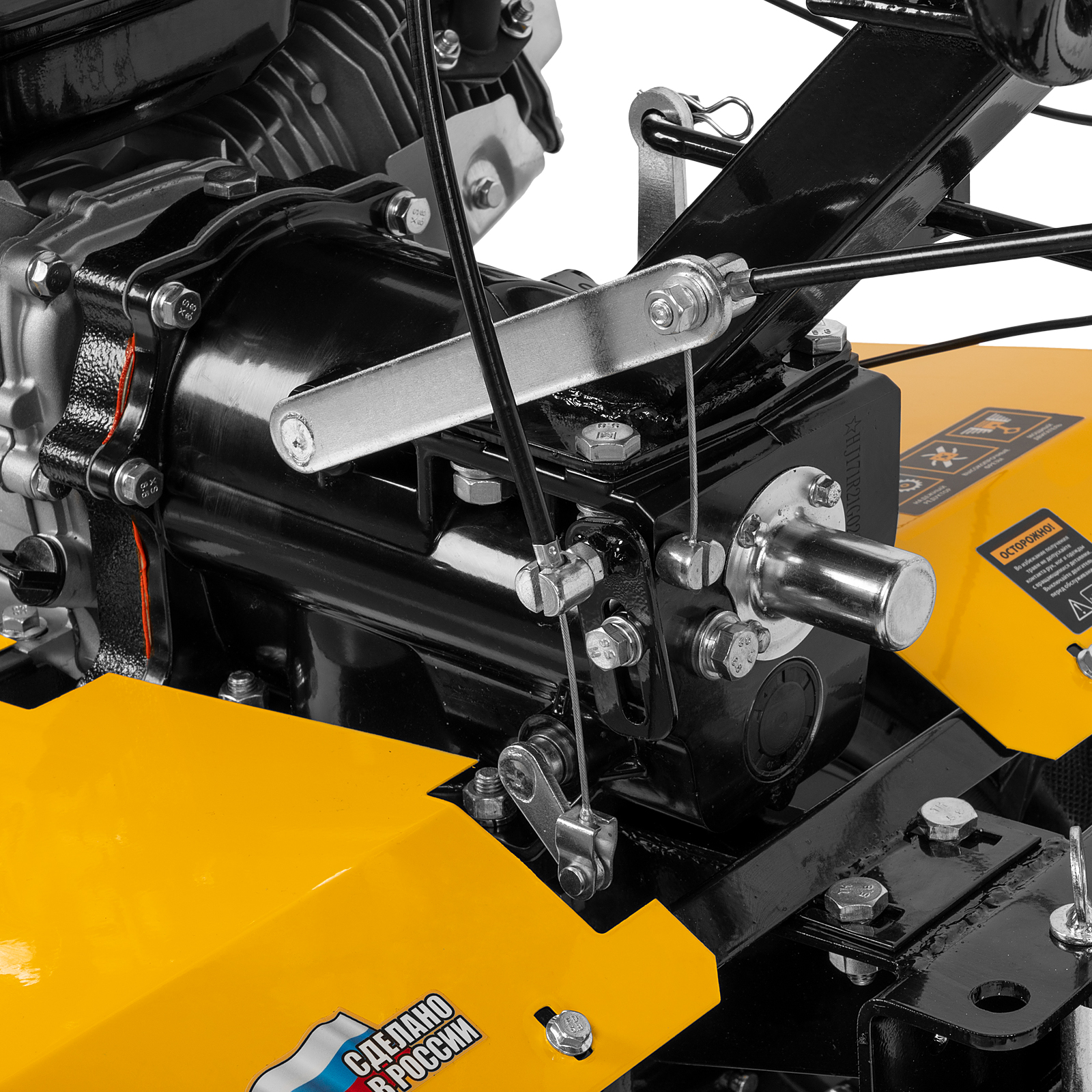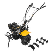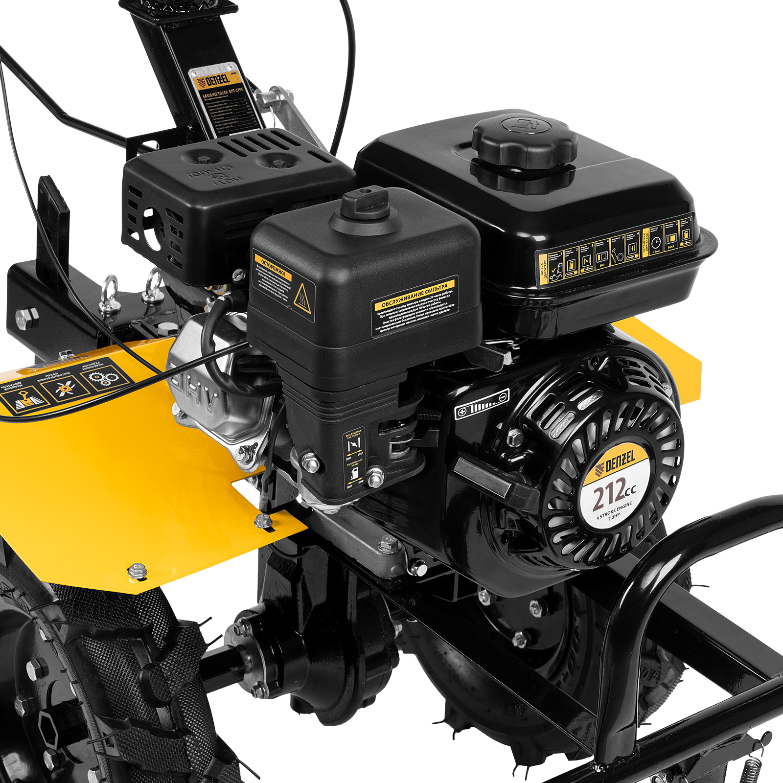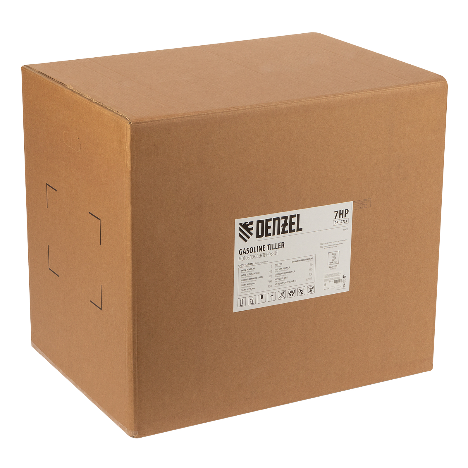 Мотоблок Denzel DPT-270X 56433 с двигателем объемом 212 см3 и мощностью 7 л.с., дисковым сцеплением, валом отбора мощности (ВОМ) и коробкой передач 2В/1Н используется для проведения различных сельскохозяйственных работ. Удобен для обработки участков большой площади: в комплект поставки входит 6 рядов высокопрочных фрез, обеспечивающих ширину 90 см и глубину вспахивания 35 см.Возможность установки различного навесного оборудования, в том числе активного, значительно расширяет возможности мотоблока и позволяет снизить расходы на приобретение сельскохозяйственной техники. Техника совместима с удлинителями осей 59903, 59909, универсальной сцепкой 59904 и 59910, плугами 59905, 59911, окучниками 59906, 59912, 59907, картофелевыкапывателями 59908, 59913, грунтозацепами 59914, 59915, 59916, 59901, 59917, 59902. Установив прицеп Denzel 59950, мотоблок можно использовать в качестве транспортного средства.ПреимуществаУверенное передвижение по участку — 2 скорости вперед и 1 назад позволяют работать на разном грунте, а также быстро и легко извлекать фрезы.Долговечность — мощный и экономичный двигатель серии Long Life обеспечивает стабильную работу, чугунный редуктор выдерживает высокие нагрузки.Защита двигателя от поломки — мотоблок не запустится при низком уровне масла в картере.Удобное использование — основные элементы управления вынесены на руль.Мобильность — производитель предусмотрел колеса повышенной проходимости.Комфортная транспортировка — усиленная рукоятка-бампер упрощает перемещение мотоблока по участку.Продуманная конструкция — дополнительная опора обеспечивает устойчивое положение мотоблока в зоне хранения.Гарантия 3 года — надежность техники подтверждена производителем.