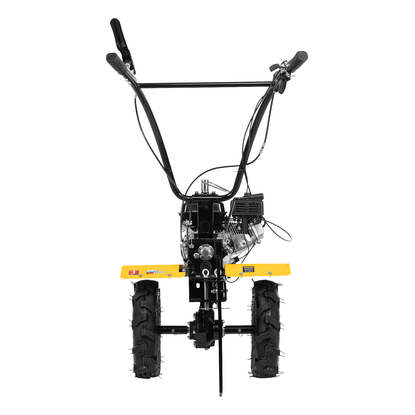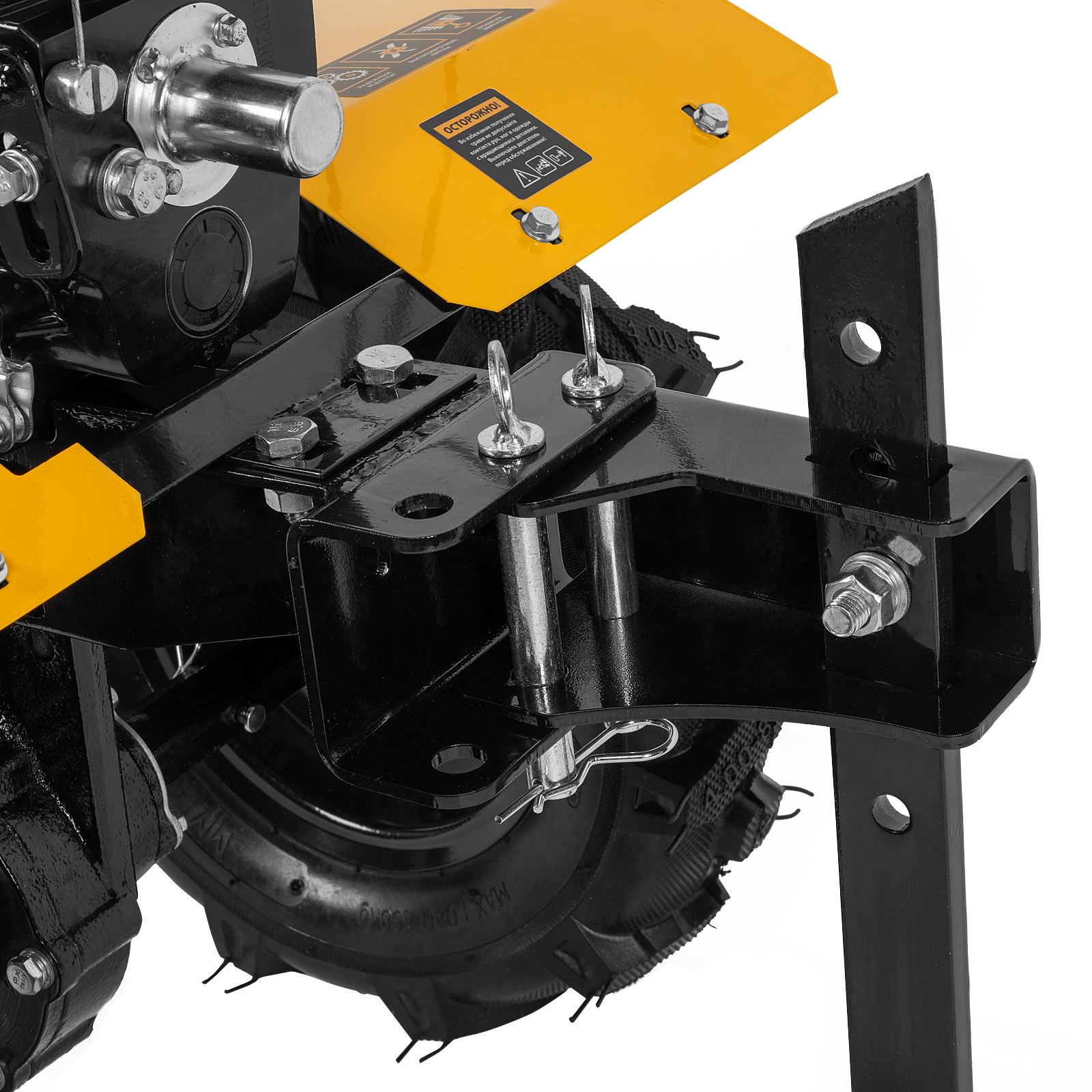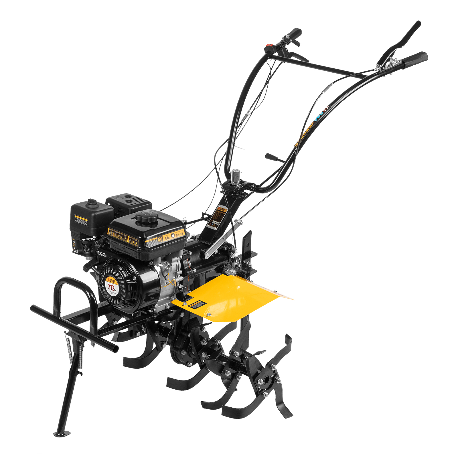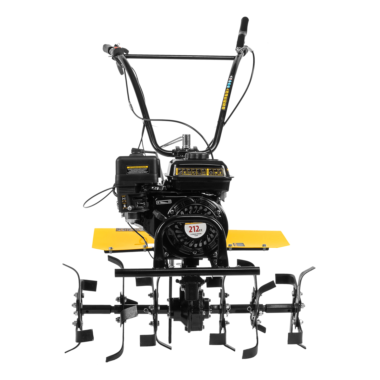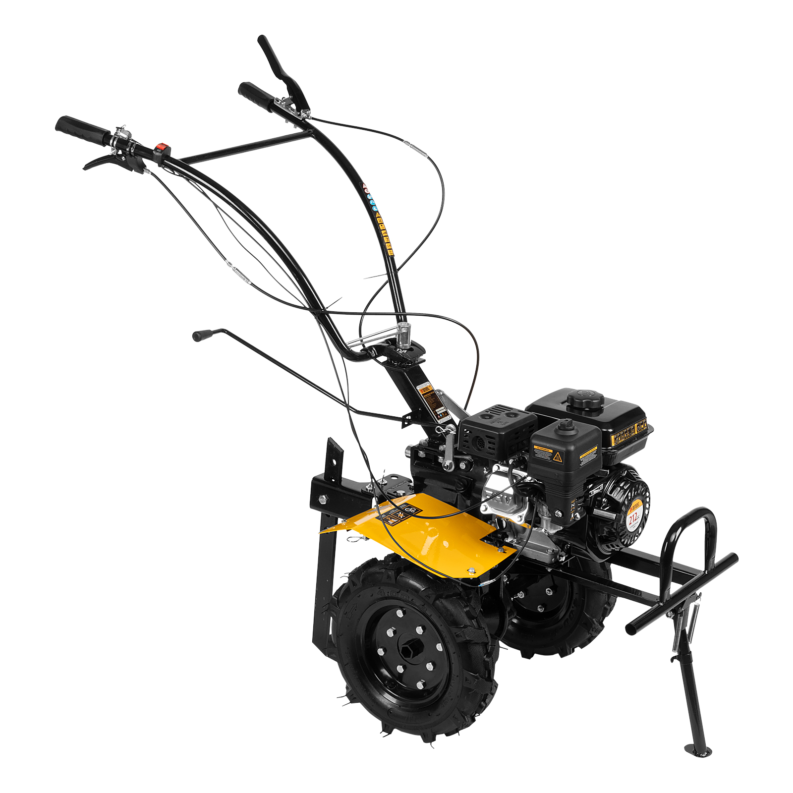 Мотоблок Denzel DPT-270X 56433 с двигателем объемом 212 см3 и мощностью 7 л.с., дисковым сцеплением, валом отбора мощности (ВОМ) и коробкой передач 2В/1Н используется для проведения различных сельскохозяйственных работ. Удобен для обработки участков большой площади: в комплект поставки входит 6 рядов высокопрочных фрез, обеспечивающих ширину 90 см и глубину вспахивания 35 см.Возможность установки различного навесного оборудования, в том числе активного, значительно расширяет возможности мотоблока и позволяет снизить расходы на приобретение сельскохозяйственной техники. Техника совместима с удлинителями осей 59903, 59909, универсальной сцепкой 59904 и 59910, плугами 59905, 59911, окучниками 59906, 59912, 59907, картофелевыкапывателями 59908, 59913, грунтозацепами 59914, 59915, 59916, 59901, 59917, 59902. Установив прицеп Denzel 59950, мотоблок можно использовать в качестве транспортного средства.ПреимуществаУверенное передвижение по участку — 2 скорости вперед и 1 назад позволяют работать на разном грунте, а также быстро и легко извлекать фрезы.Долговечность — мощный и экономичный двигатель серии Long Life обеспечивает стабильную работу, чугунный редуктор выдерживает высокие нагрузки.Защита двигателя от поломки — мотоблок не запустится при низком уровне масла в картере.Удобное использование — основные элементы управления вынесены на руль.Мобильность — производитель предусмотрел колеса повышенной проходимости.Комфортная транспортировка — усиленная рукоятка-бампер упрощает перемещение мотоблока по участку.Продуманная конструкция — дополнительная опора обеспечивает устойчивое положение мотоблока в зоне хранения.Гарантия 3 года — надежность техники подтверждена производителем.