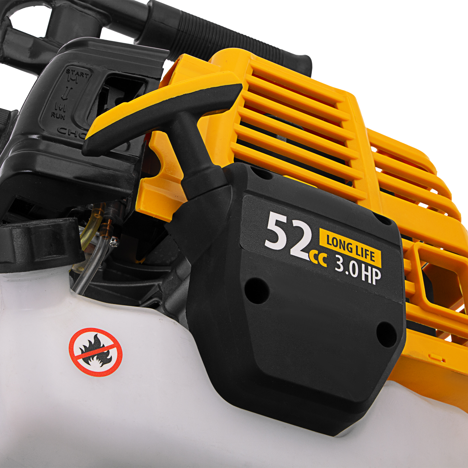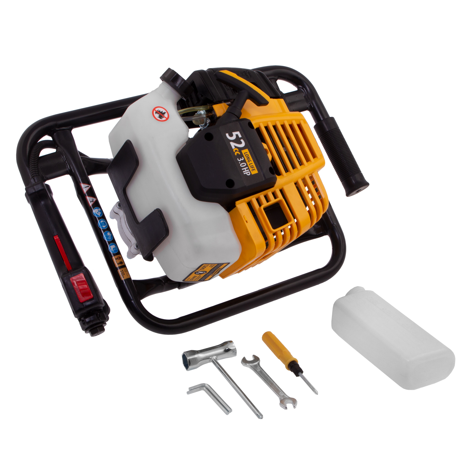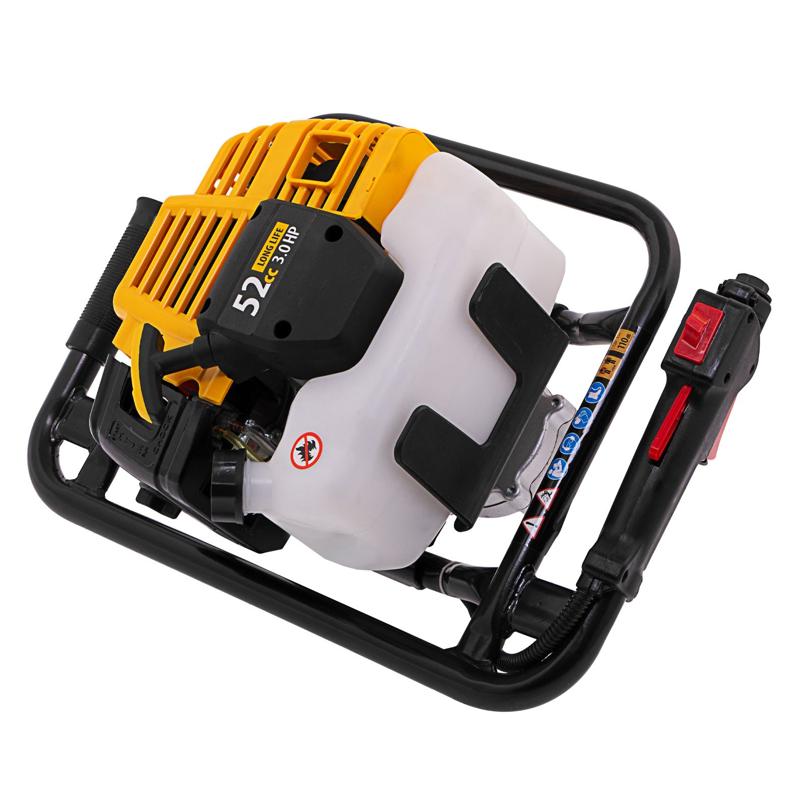 Мотобур Denzel DX-52 56001 с объемом двигателя 52 см3 и диаметром соединения 20 мм предназначен для получения отверстий и углублений во льду или в грунте максимальным диаметром 300 мм. Мощный и экономичный двигатель мощностью 3 л. с. позволяет эффективно решать поставленные задачи. Для бурения отверстий диаметром более 150 мм и глубиной более 1 м предусмотрена возможность управления мотобуром двумя пользователями. Устройство будет полезно на строительной площадке, загородном участке, пригодится также во время зимней рыбалки.ПреимуществаНадежная конструкция — корпус из высококачественного ударопрочного пластика и рама устойчивы к механическим воздействиям, усиленный редуктор рассчитан на интенсивное использование.Мощный и экономичный двигатель — техника обеспечивает высокую эффективность работы и низкий расход топлива.Удобное управление — выключатель зажигания и курок газа расположены на правой рукоятке.Безопасность пользователя — блокиратор курка газа препятствует случайному запуску шнека.Праймер подкачки топлива — двигатель легко запустится в холодную погоду или после долгого простоя.Легкая установка оснастки — благодаря быстросъемному соединению шнек фиксируется на выходному валу за несколько секунд.Быстрая подготовка к работе — мотобур поставляется в сборе, достаточно добавить смазку при необходимости, установить шнек и залить топливо в бак (шнек в комплект не входит).Удобное приготовление топливной смеси — специальный дозатор входит в комплект поставки.Решение широкого спектра задач — выходной вал диаметром 20 мм совместим со шнеками для грунта и льда, а также с удлинителями соответствующего присоединительного размера.Простое обслуживание — конструкцией предусмотрен легкий доступ к воздушному фильтру для его осмотра и очистки.Комфортная работа — оптимизированная антивибрационная система снижает нагрузку на руки.Гарантия 3 года — надежность мотобура подтверждена производителем.