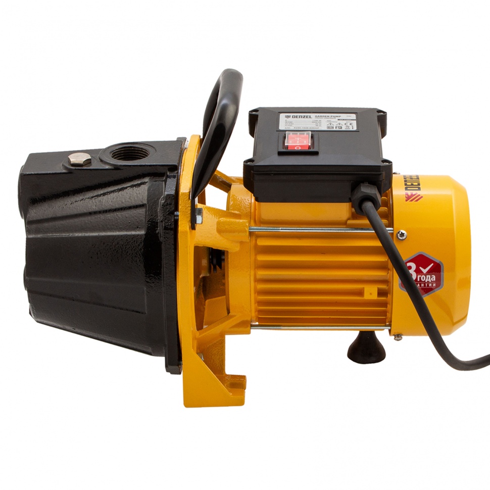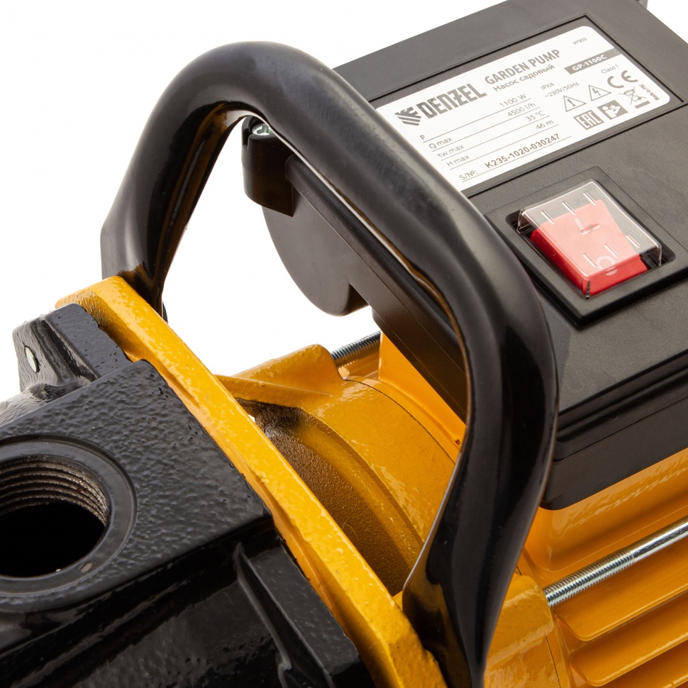 Садовый поверхностный насос Denzel GP1100C 97203 с корпусом насосной части из чугуна, мощностью 1100 Вт и производительностью 4500 л/ч, обеспечивает стабильный напор до 46 м и используется для подъема чистой воды из резервуаров и колодцев с глубины до 8 м. Подходит для организации систем полива на дачном участке и повышения давления в водопроводной системе загородного дома. Высокая производительность позволяет применять насос в системах с большим количеством водоразборных точек.Преимущества Высокий ресурс — термозащита отключает двигатель в случае перегрева, предотвращая его поломку. Прочная конструкция — чугунный литой корпус насосной части устойчив к повреждениям и снижает уровень шума работающего устройства. Защита от разрушения — специальное внутреннее покрытие предохраняет корпус от образования коррозии. Качественные комплектующие — торцевое уплотнение из карбида кремния и вал из нержавеющей стали обеспечивают надежность насоса. Электробезопасность — двойная изоляция токопроводящих элементов защищает пользователя от поражения током. Устойчивость — конструкцией предусмотрены опоры и специальная антивибрационная ножка, исключающие опрокидывание и некорректную работу насоса. Комфортное перемещение — устройство весит 10,2 кг и снабжено удобной ручкой. Гарантия 3 года — высокое качество насоса подтверждено производителем.