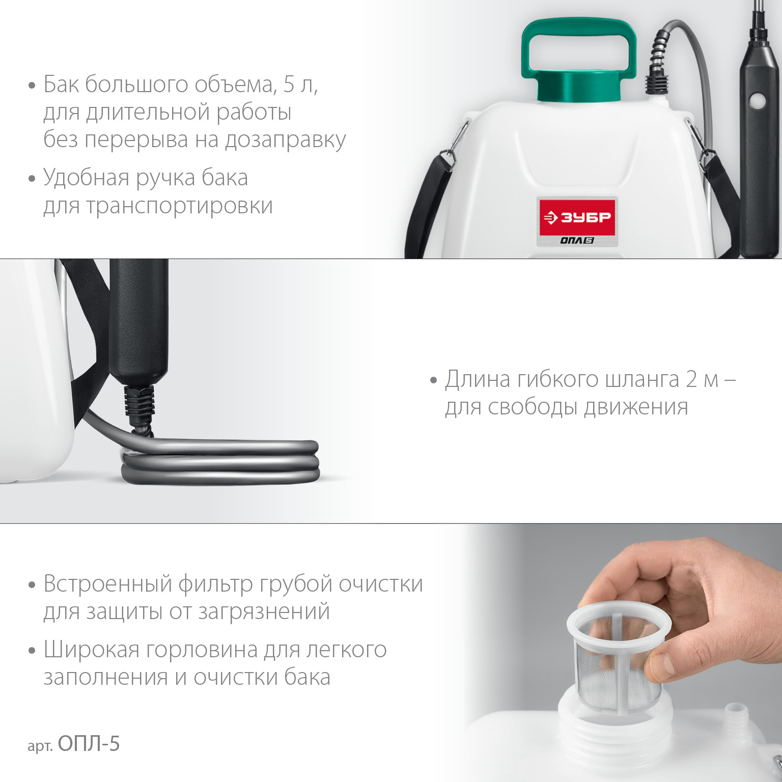 - Удобный бак для жидкости объемом 5 л обеспечивает длительную работу без дозаправки