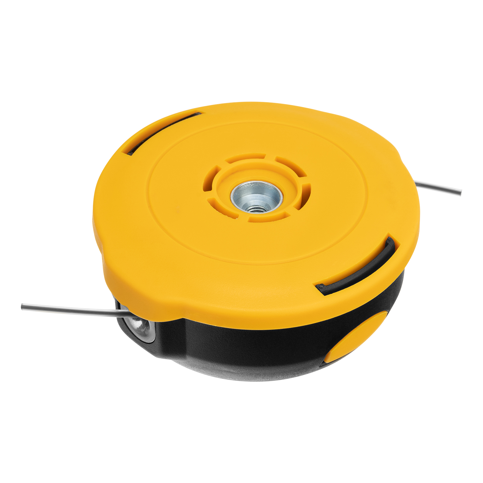 Универсальная триммерная катушка Denzel 96312 с адаптерами (гайка M10 x 1,25, левая резьба, адаптер «папа»-«папа» M8-M10, левая резьба) предназначена для установки на бензиновые и электрические косы. Наличие адаптеров позволяет использовать ее с моделями, оснащенными как присоединительной гайкой, так и винтом.Катушка заправляется леской круглой, квадратной, треугольной формы, кордом в виде клевера или с другим типом сечения, толщиной до 3-х мм, а это значит, что триммер справится не только с обновлением газона, но и с густыми зарослями травы. Преимущества:Простота и удобство — адаптеры легко устанавливаются без использования инструментов.Легкая замена лески — благодаря наличию специальных прорезей не нужно снимать крышку.Полуавтоматическая система удлинения лески — достаточно слегка ударить шпулей о землю, чтобы обновить режущий элемент.Прочность — противоударный корпус из полиамида PA6-GF30 обеспечивает долговечность катушки.Максимально длина лески 15 м — заправлять триммер нужно примерно 1 раз в сезон при нечастом использовании.