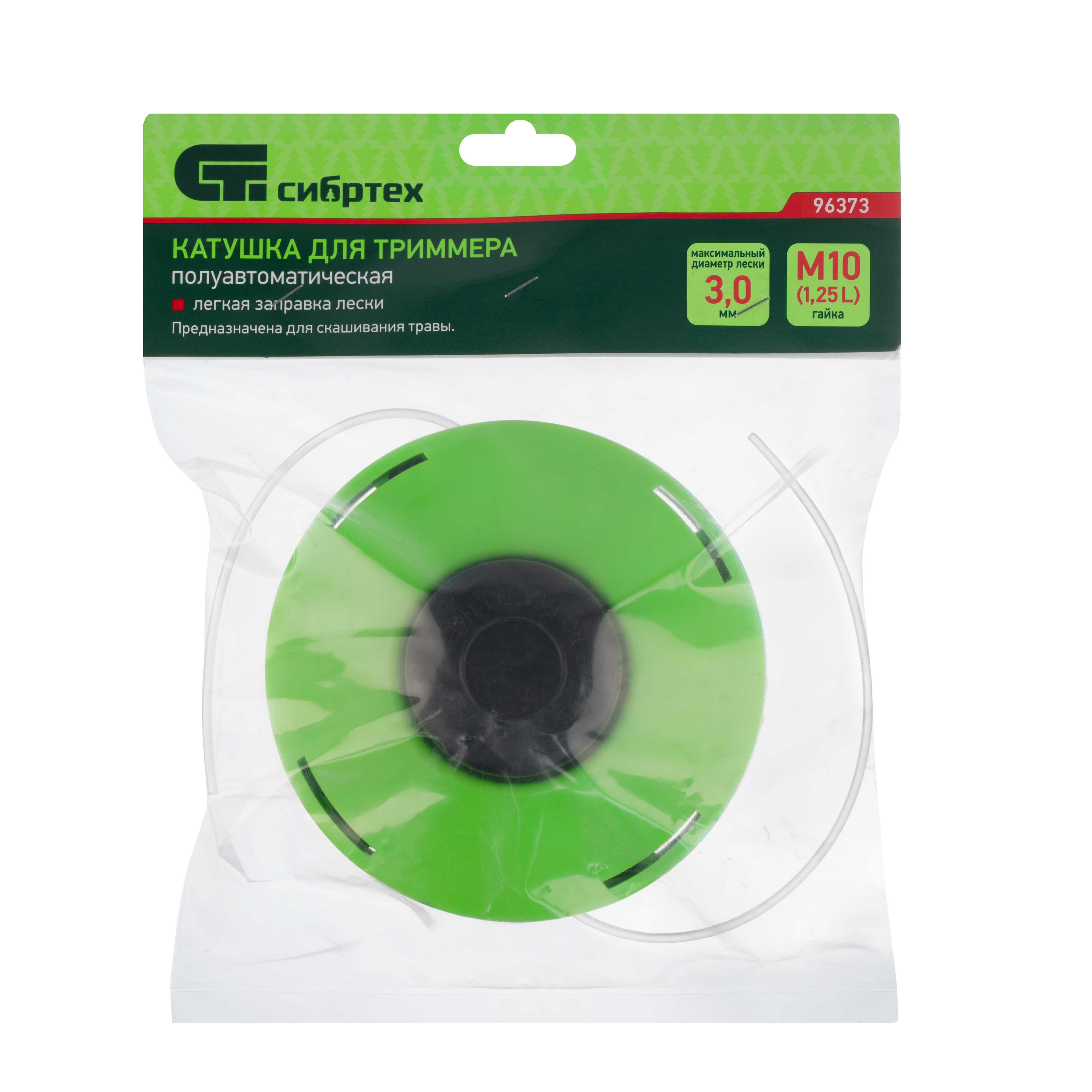 Полуавтоматическая катушка Сибртех 96373 с легкой заправкой лески крепится на вал бензинового или электрического триммера при помощи гайки М10 х 1,25 мм с левой резьбой. Заправляется леской диаметром до 3 мм, что позволяет использовать ее для подравнивания газона и скашивания сорняков. Катушка пригодится владельцам загородных участков.ПреимуществаЛегкая заправка — благодаря продуманной конструкции катушки не нужно разбирать корпус при подготовке к работе.Быстрое обновление лески — не нужно выключать триммер, достаточно слегка ударить катушкой о землю.Резьбовое крепление — установка катушки на вал триммера осуществляется без дополнительного инструмента.