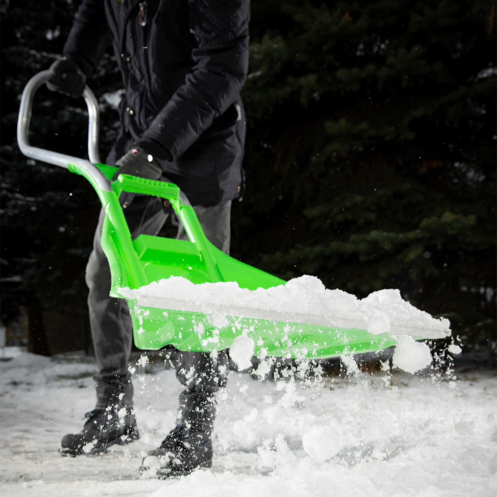 Пластиковый движок для уборки снега Сибртех 61496 с алюминиевой рукояткой, 670 х 530 х 1410 мм, предназначен для расчистки территории после снегопада. Глубокий ковш обеспечивает высокую эффективность уборки. Инструмент можно использовать для перебрасывания снега, поскольку он оснащен дополнительным захватом и локтевым упором. Движок подойдет для использования на придомовой территории, у гаража или на дачном участке.ПреимуществаКовш из морозостойкого полипропилена выдерживает температуру до -50 градусов, поэтому его можно использовать в самых суровых условиях.Ребра жесткости повышают прочность ковша, а значит, он не сломается при высоких нагрузках.Алюминиевая рукоятка не подвержена коррозии, поэтому инструмент прослужит долго.Эргономичная рукоятка позволяет уменьшить нагрузку на спину, поэтому работа с движком не вредит здоровью.Защитная накладка из алюминиевого сплава на кромке ковша предотвращает его изнашивание.Рукоятка выполнена из алюминиевого сплава, поэтому движок весит всего 2,02 кг, и с ним можно долго работать без усталости.Рукоятка крепится при помощи специальных направляющих и заклепок, поэтому ковш не соскочит с нее во время работы.