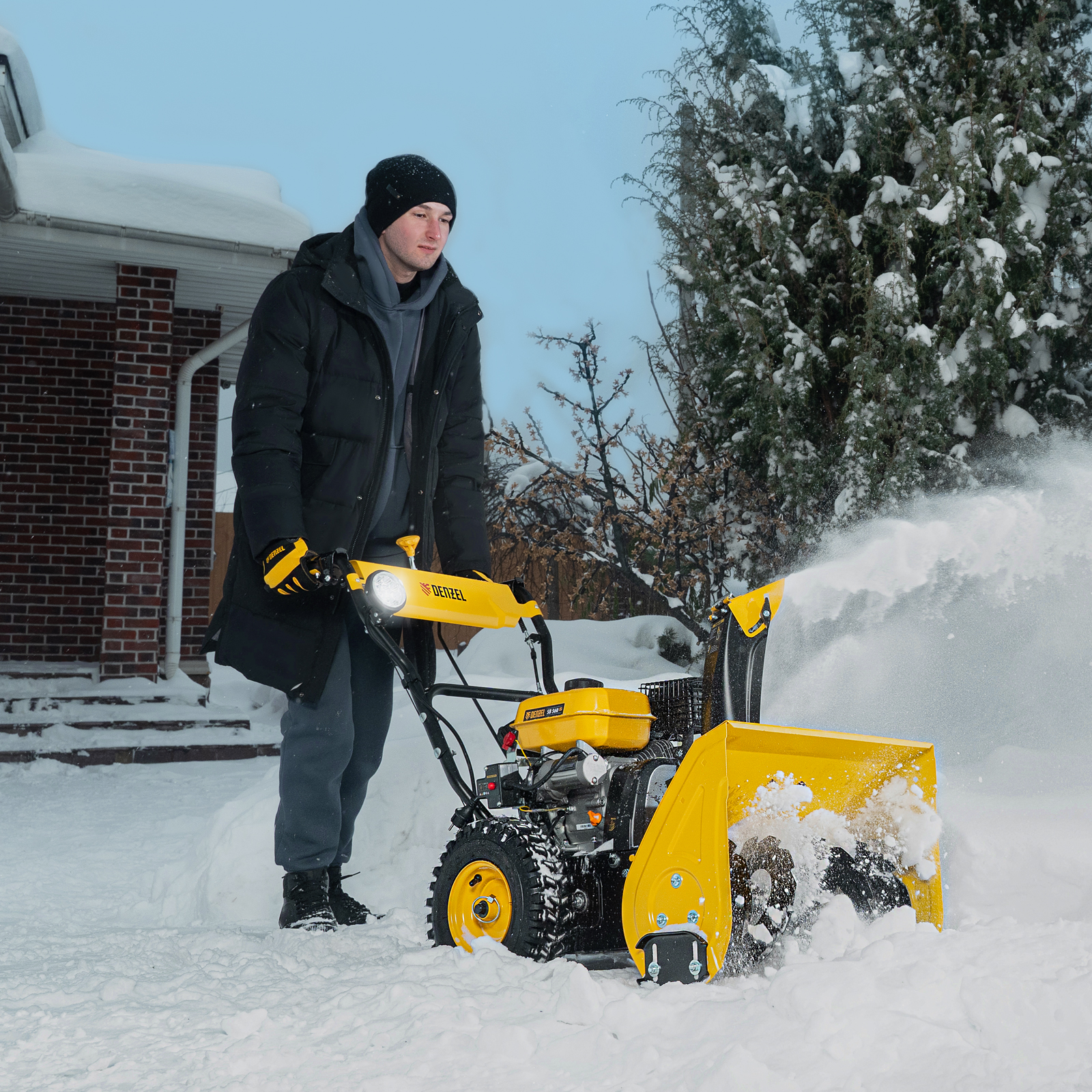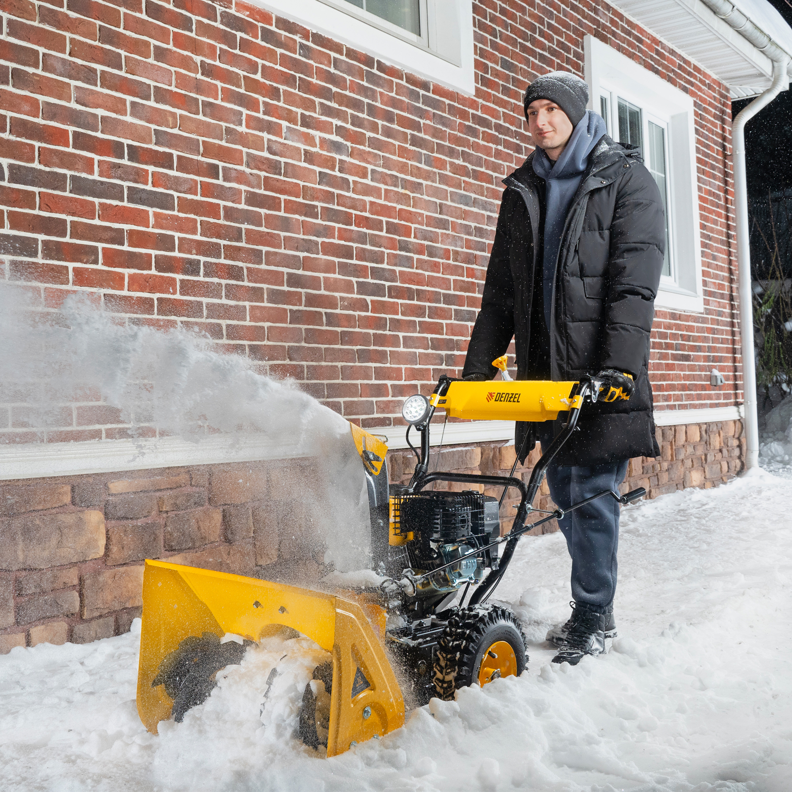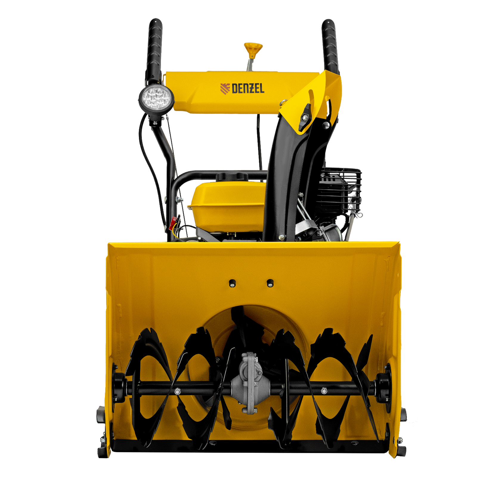 Бензиновая снегоуборочная машина Denzel SB 560 LP 97652 с двигателем объемом 212 cм3, электростартером и фарой предназначена для уборки территорий загородных домов, коттеджей, подъездных дорог и улиц СНТ, парковок и городских дворовых территорий.Ресурсный двигатель с увеличенным крутящим моментом и шнек с агрессивным профилем ледорубов обеспечивают эффективную уборку снега. Ковш шириной 560 мм и высотой захвата 430 мм эффективно справляется с сугробами. Denzel SB 560 LP подойдет сотрудникам коммунальных служб, организаций, а также людям, ценящим комфорт, функционал и эстетический внешний вид.ПреимуществаЭкономия сил и времени — снегоуборочная машина относится к самоходному типу, а значит, ее не придется толкать во время работы.Увеличенная производительность — двухступенчатая система удаления снега обеспечивает эффективное решение поставленных задач.Гибкая коробка передач 6/2 — можно установить оптимальную скорость движения.Долговечность — редуктор с увеличенным ресурсом продлевает срок службы снегоуборочной машины.Удобный и быстрый запуск — электростартер позволяет включить двигатель одним нажатием кнопки, а широкая рукоятка ручного стартера обеспечивает комфорт при запуске двигателя вручную.Комфортная работа — рычаг поворота желоба позволяет легко выбрать желаемое направление выброса снега, а яркая LED фара позволяет работать в условиях плохой видимости.Надежная конструкция — высокая стальная панель придает жесткость раме и повышает комфорт использования бензинового снегоуборщика.Высокая проходимость — колеса с зимним протектором облегчают движение по заснеженной территории.Гарантия от производителя 3 года — высокое качество и надежность снегоуборочной машины подтверждены производителем.