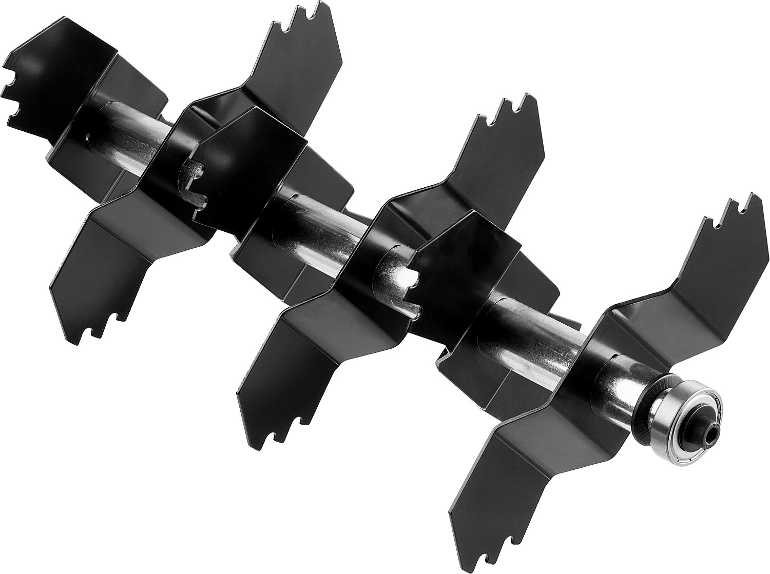 - Уникальное изделие 2 в 1: аэратор и скарификатор. Сменные валы с их легкой заменой позволяют быстро перейти от одного вида работы к другому. При этом результат в каждом случае будет идеальным (в отличие от объединенных на одном валу ножей и штифтов)