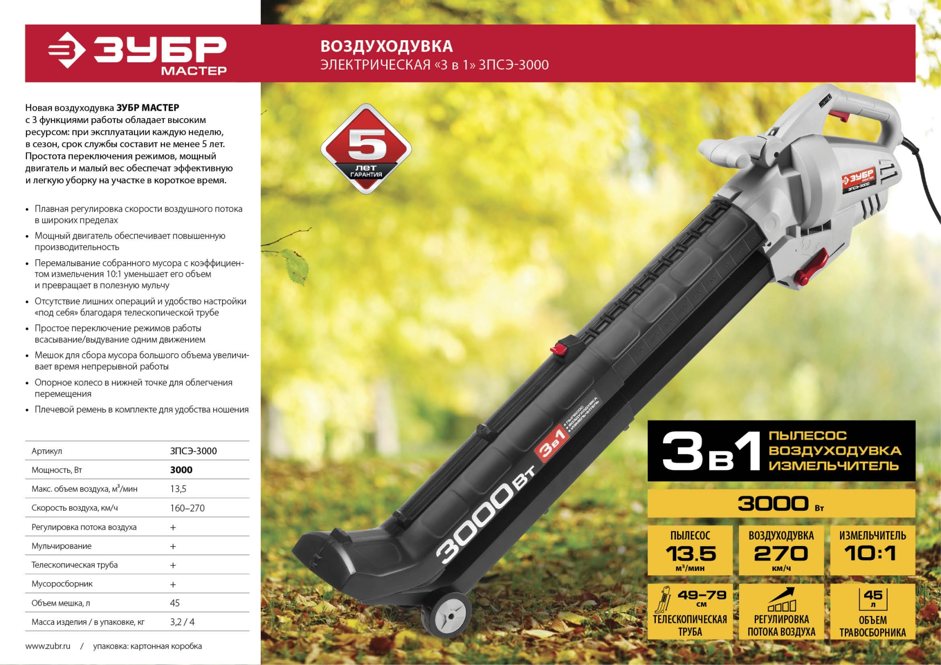 Для уборки листвы с дорожек и газонов потоком воздуха в режиме выдувания или путем сбора в мешок в режиме пылесоса