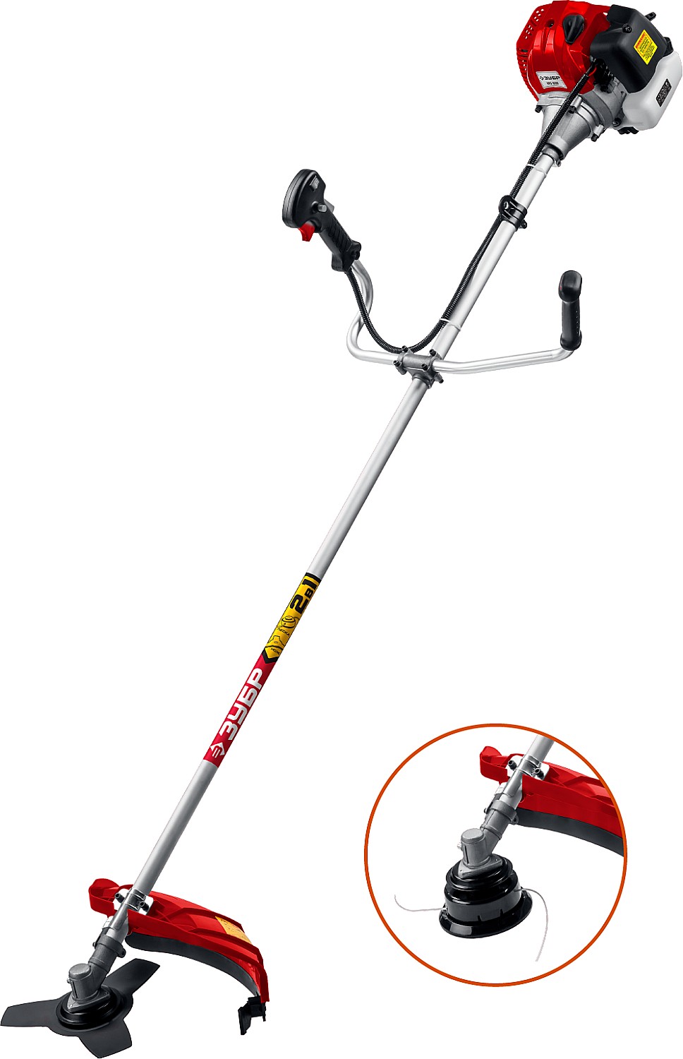 Для кошения травы (с приводом режущего инструмента от двигателя внутреннего сгорания). Изделие предназначено для эксплуатации только вне помещений
