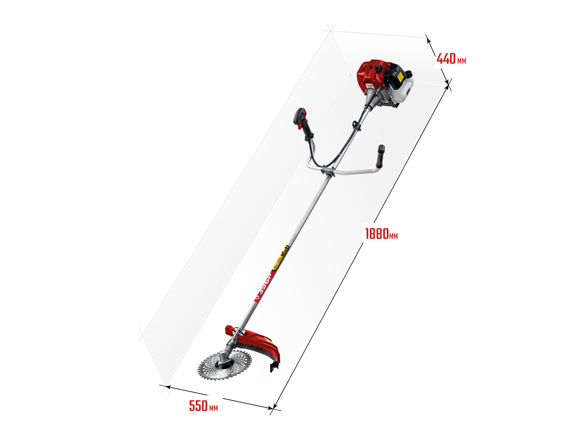 Для кошения травы (с приводом режущего инструмента от двигателя внутреннего сгорания). Изделие предназначено для эксплуатации только вне помещений
