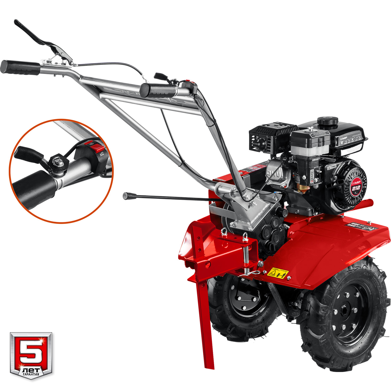 - Рукоять мотоблока с возможностью регулировки по вертикали делает управление более комфортным