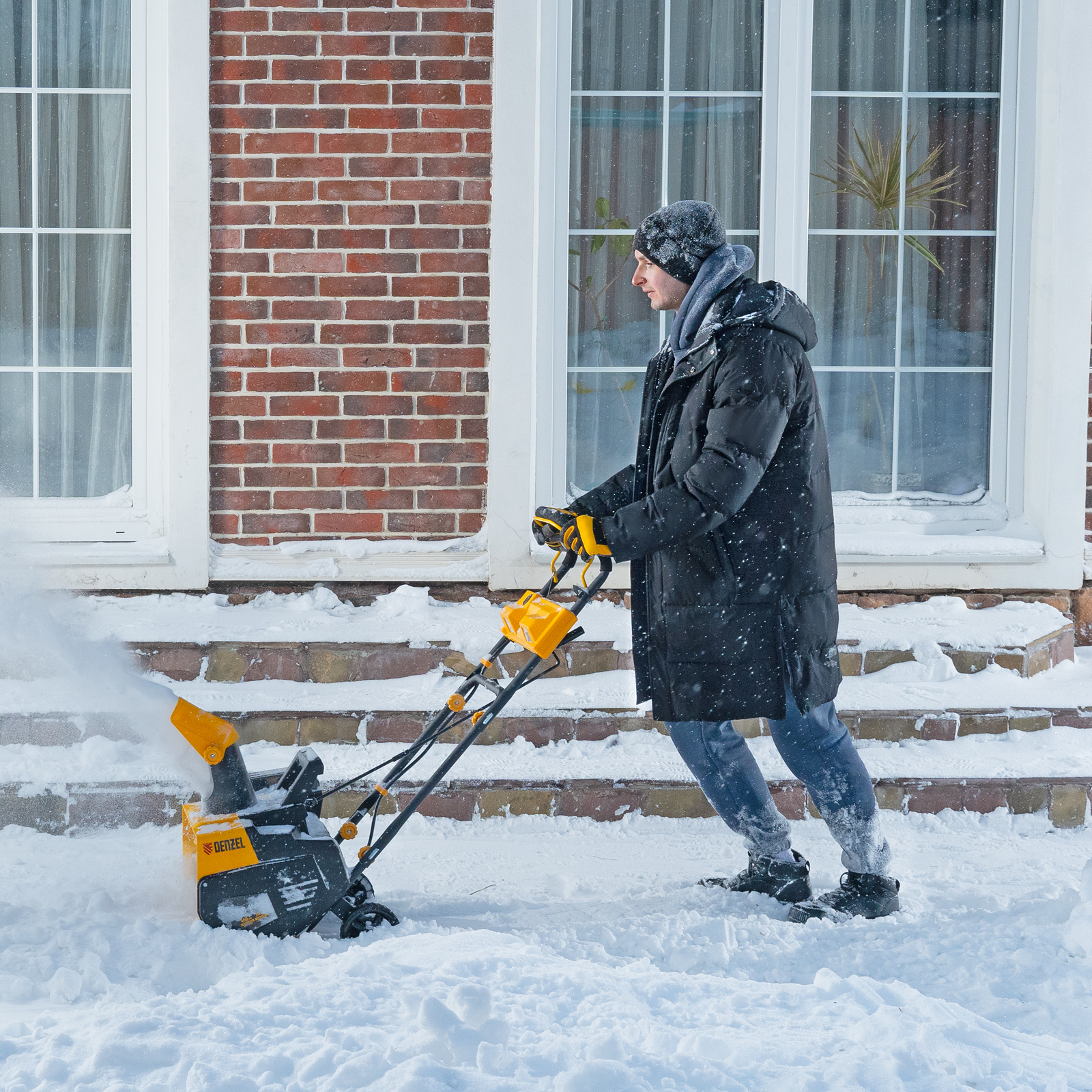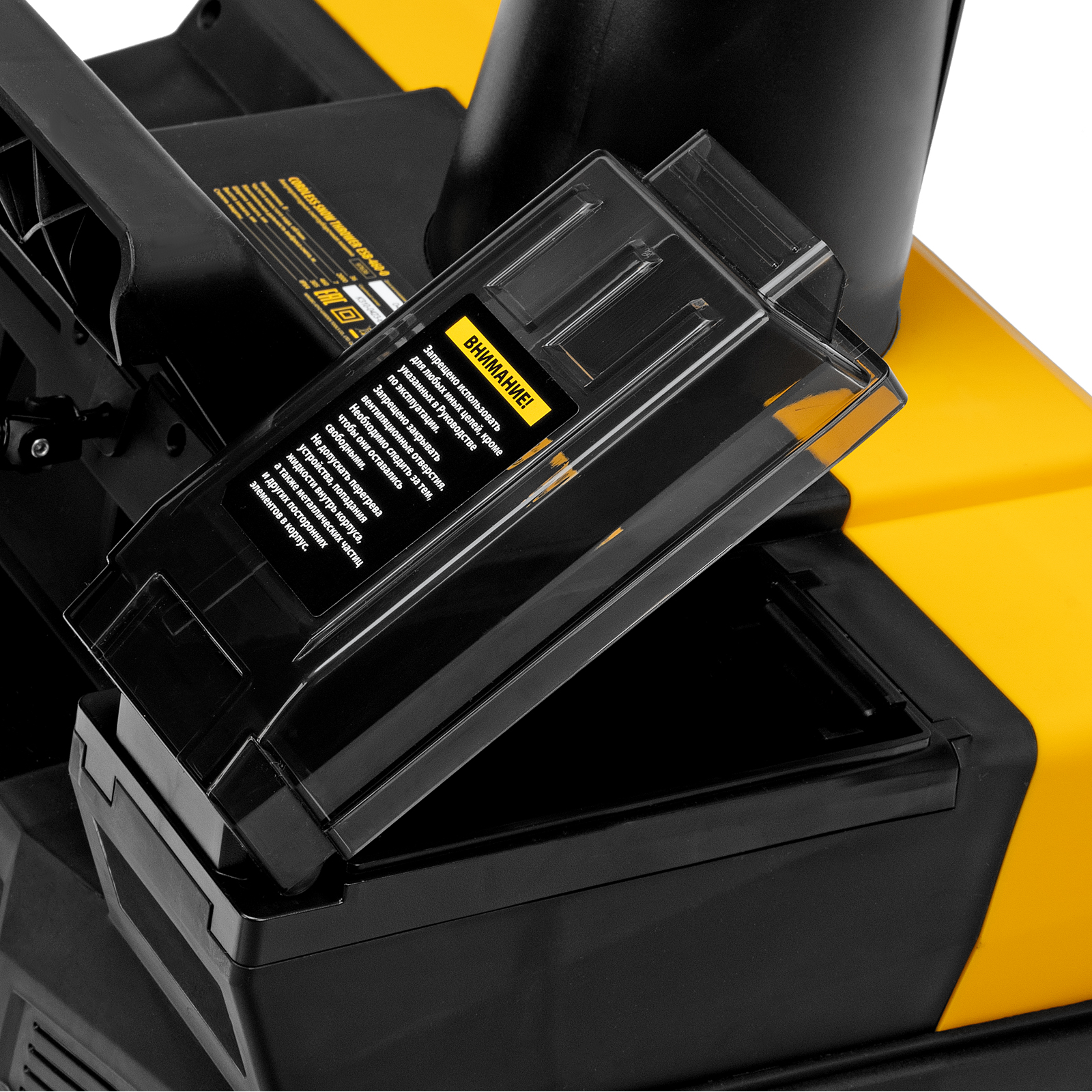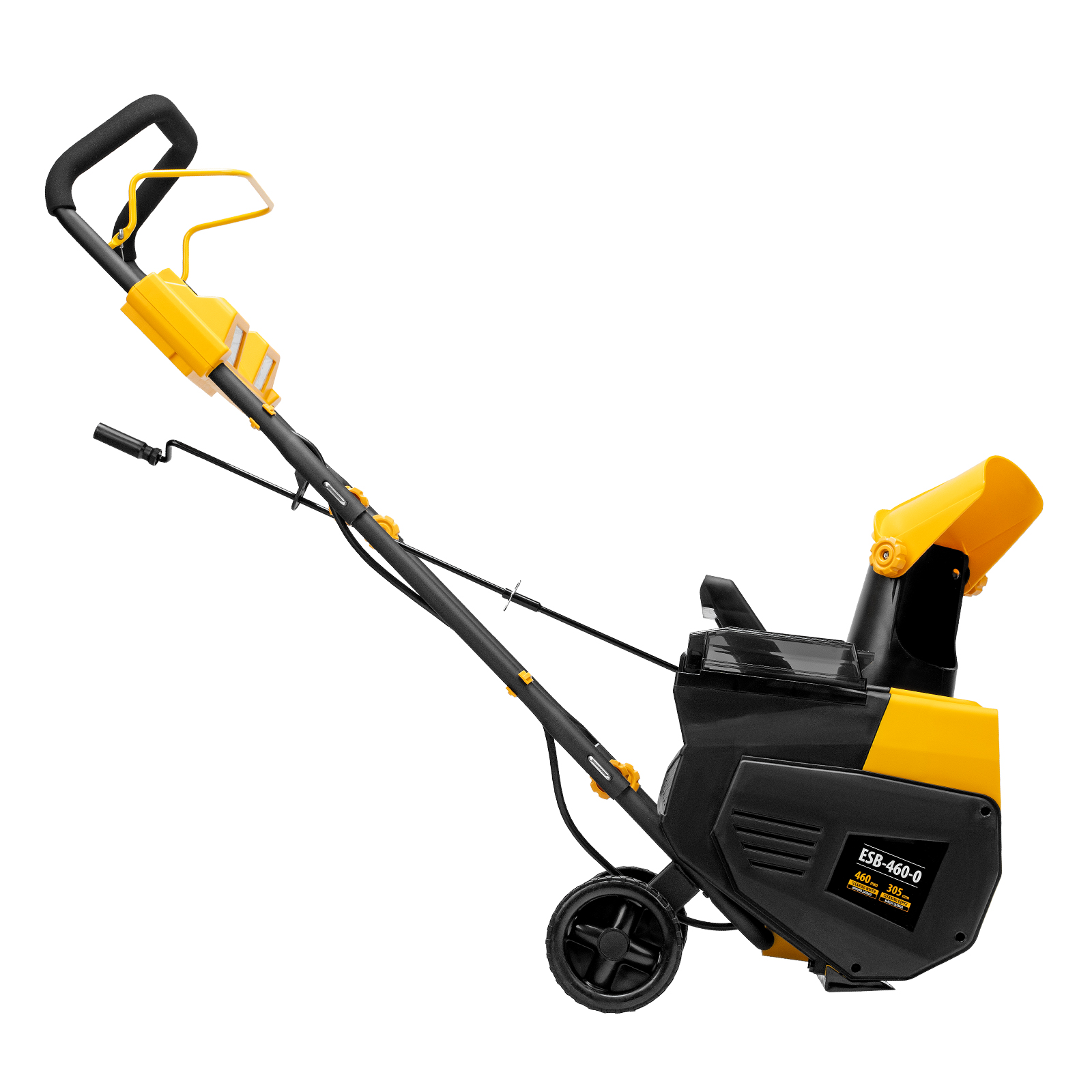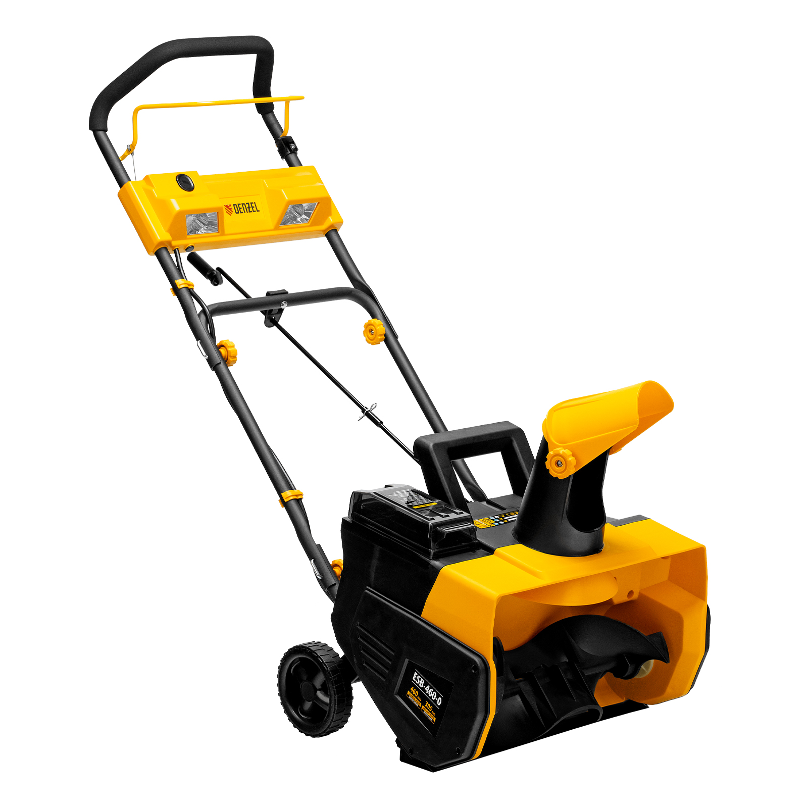 Аккумуляторная снегоуборочная машина Denzel ESB-460-0 97636 работает от 2 аккумуляторов Li-Ion с рабочим напряжением 18 В каждый и предназначена для очищения ровных поверхностей от снега. Поможет расчистить дорожки, тротуары, придомовую территорию, парковку. Ширина захвата составляет 460 мм, что позволяет быстрее справляться с уборкой.,Машина не зависит от стационарного источника электропитания, благодаря чему вы можете с комфортом расчищать дорожки даже в самых удаленных частях участка. Во время ее работы отсутствуют вредные выхлопы и неприятный запах. Благодаря низкому уровню шума использование снегоуборщика не доставляет дискомфорт окружающим.ПреимуществаУниверсальность — к снегоуборщику подходят аккумуляторы емкостью 4 А*ч (не входят в комплект поставки), совместимые с любыми инструментами и техникой единой платформы 18 В Denzel battery system.Эффективность— мощный бесщеточный двигатель обеспечивает высокую производительность.Хорошая видимость при недостаточном освещении — машина оснащена двойной LED-фарой.Удобное перемещение — снегоуборочная машина весит всего 11 кг, благодаря чему обладает высокой маневренностью.Регулировка направления выброса снега — угол поворота желоба можно изменить при помощи удобной рукоятки.Комфортная работа в мороз — на рукоятке имеется микропористое покрытие, благодаря которому руки не мерзнут.Компактность — благодаря складной рукоятке машина не занимает много места во время хранения.Гарантия 3 года — высокое качество техники подтверждено производителем.