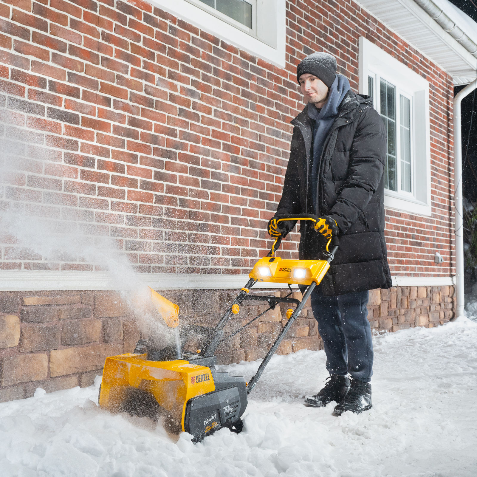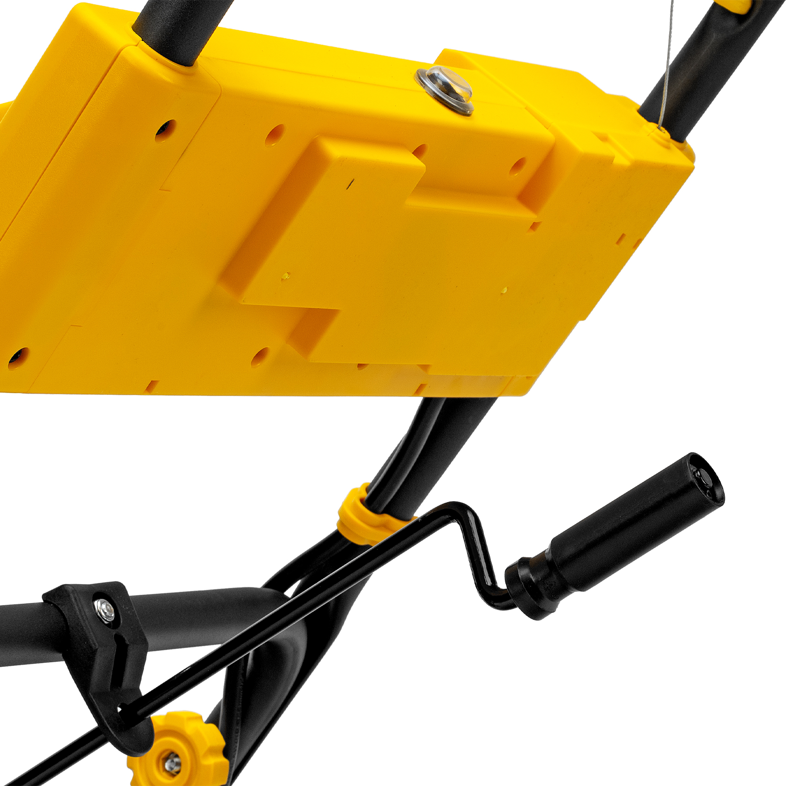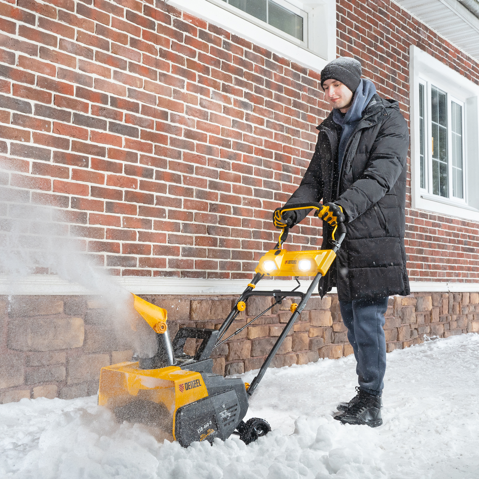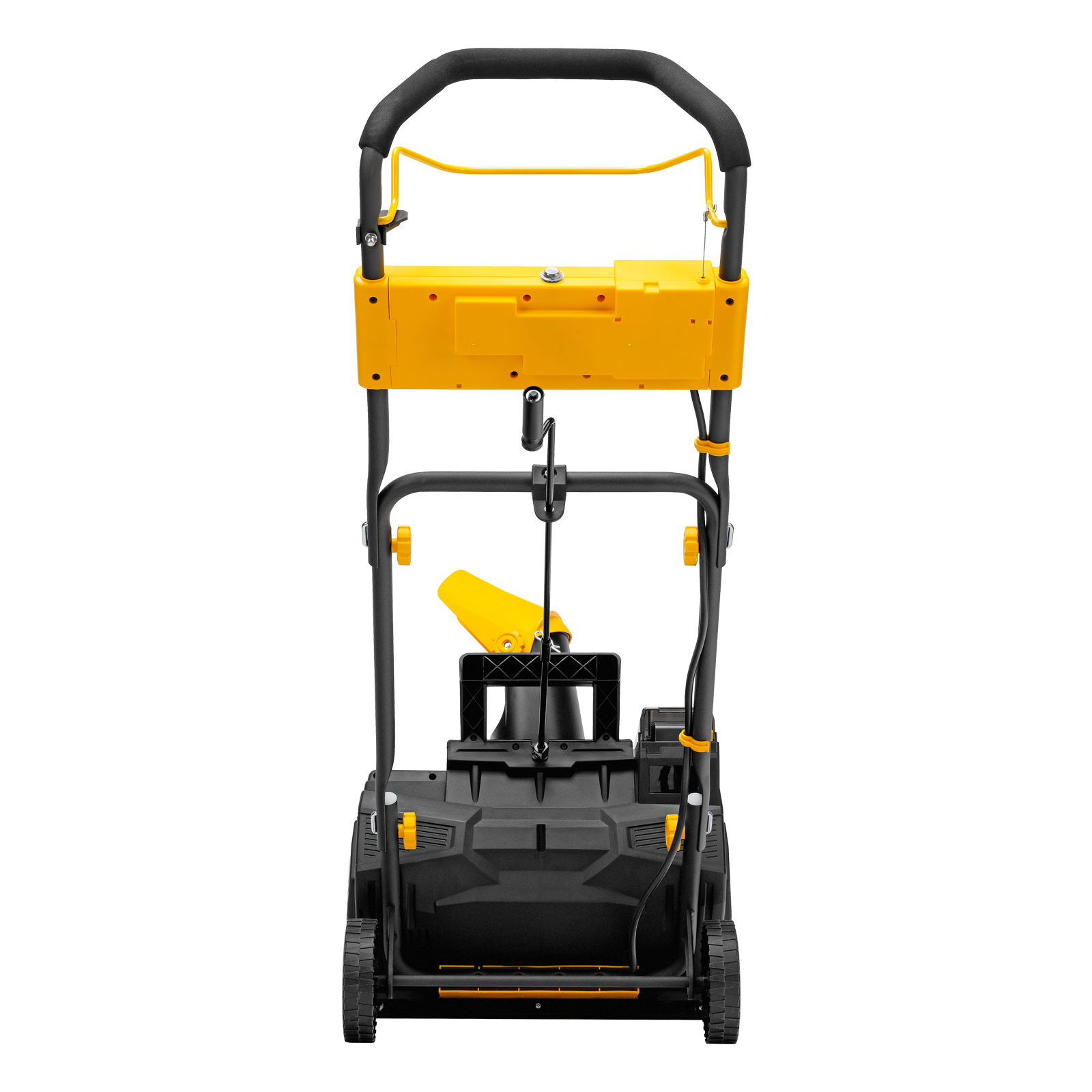 Аккумуляторная снегоуборочная машина Denzel ESB-460-0 97636 работает от 2 аккумуляторов Li-Ion с рабочим напряжением 18 В каждый и предназначена для очищения ровных поверхностей от снега. Поможет расчистить дорожки, тротуары, придомовую территорию, парковку. Ширина захвата составляет 460 мм, что позволяет быстрее справляться с уборкой.,Машина не зависит от стационарного источника электропитания, благодаря чему вы можете с комфортом расчищать дорожки даже в самых удаленных частях участка. Во время ее работы отсутствуют вредные выхлопы и неприятный запах. Благодаря низкому уровню шума использование снегоуборщика не доставляет дискомфорт окружающим.ПреимуществаУниверсальность — к снегоуборщику подходят аккумуляторы емкостью 4 А*ч (не входят в комплект поставки), совместимые с любыми инструментами и техникой единой платформы 18 В Denzel battery system.Эффективность— мощный бесщеточный двигатель обеспечивает высокую производительность.Хорошая видимость при недостаточном освещении — машина оснащена двойной LED-фарой.Удобное перемещение — снегоуборочная машина весит всего 11 кг, благодаря чему обладает высокой маневренностью.Регулировка направления выброса снега — угол поворота желоба можно изменить при помощи удобной рукоятки.Комфортная работа в мороз — на рукоятке имеется микропористое покрытие, благодаря которому руки не мерзнут.Компактность — благодаря складной рукоятке машина не занимает много места во время хранения.Гарантия 3 года — высокое качество техники подтверждено производителем.
