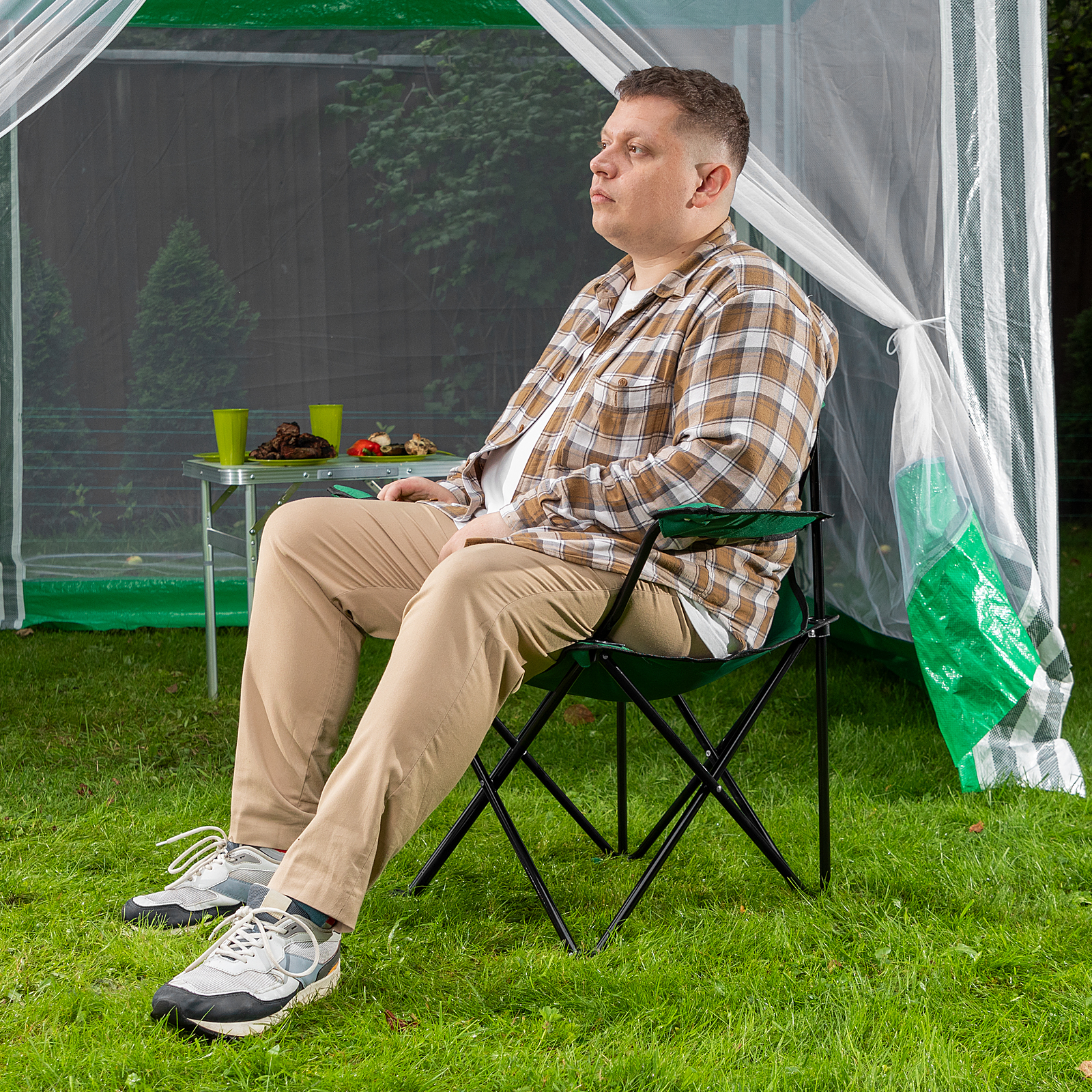 Складной стул Palisad Camping 69608 с подлокотниками и подстаканником, размером 81 х 51 х 86 см, можно взять с собой на пикник или на рыбалку, поставить на дачном участке или предложить гостям. На нем можно с комфортом расположиться, захватив с собой любимый напиток, — конструкцией предусмотрено отделение для банки или стакана.ПреимуществаПрочность и износостойкость — сиденье и спинка изготовлены из полиэстера плотностью 600D.Надежность — стальной каркас с ножками диаметром 16 мм выдерживает нагрузку до 80 кг.Удобное хранение и транспортировка — в комплект входит чехол.Компактность — благодаря небольшим габаритам в сложенном состоянии 890 х 130 х 130 мм стул не занимает много места и может храниться в углу или шкафу.Малый вес 1,7 кг — стул может нести даже пеший турист.