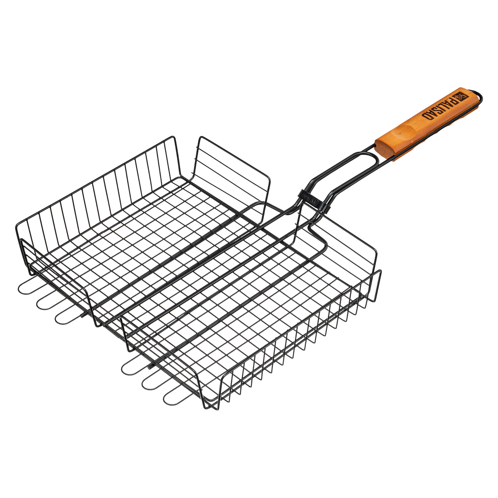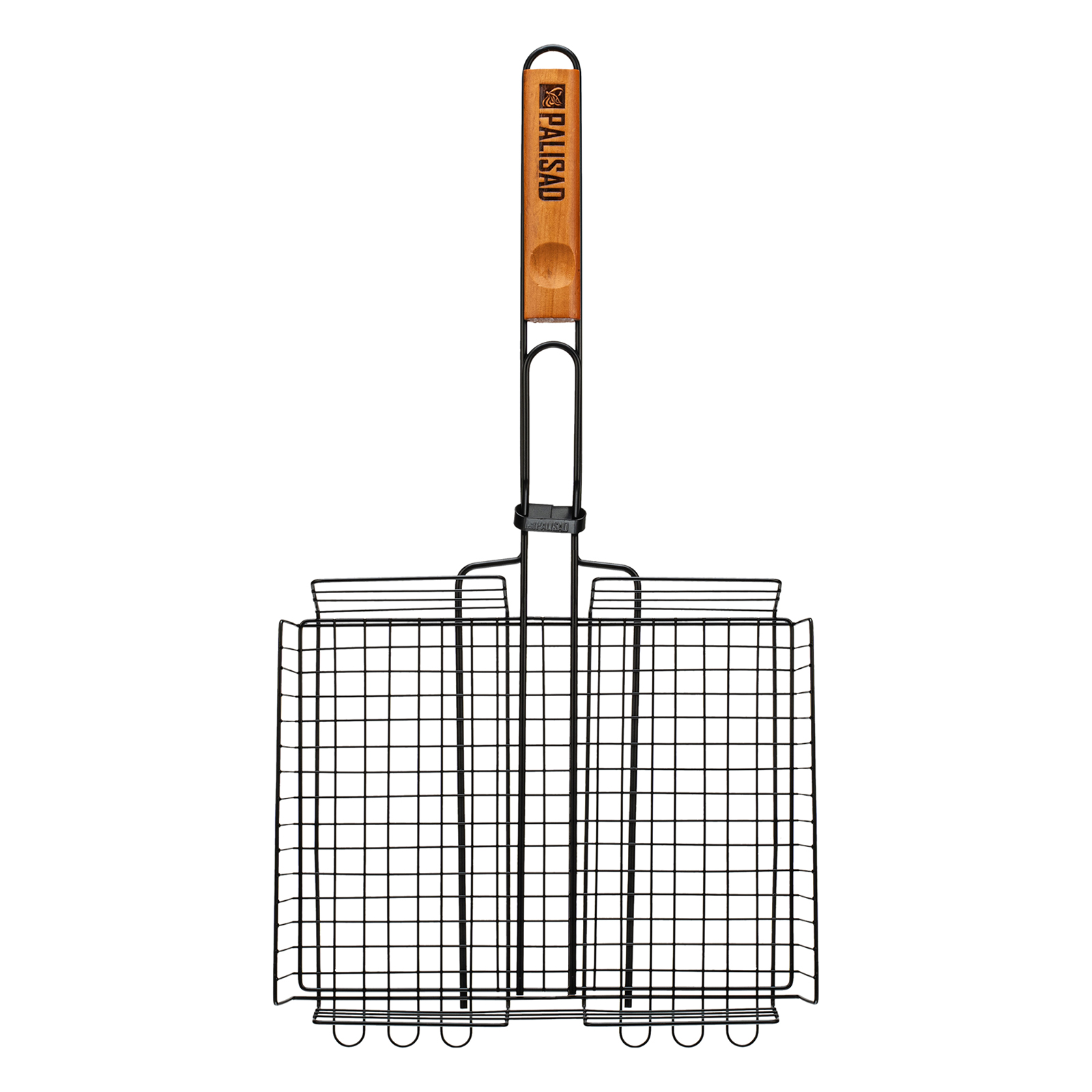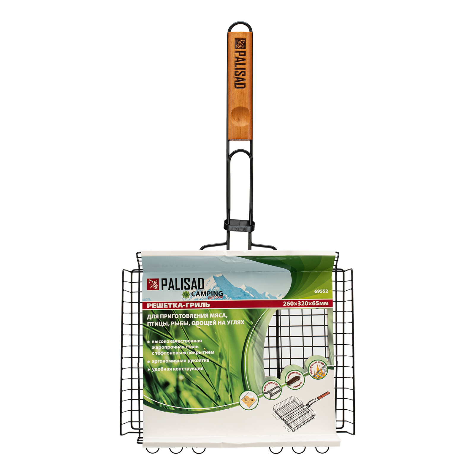 Объемная решетка гриль Palisad Camping 69552 размером 260 х 320 х 65 мм, с антипригарным покрытием, повышает удобство приготовления еды в мангале. Благодаря объемной конструкции решетку можно регулировать по высоте для качественного приготовления крупных кусков рыбы, мяса и даже целой тушки курицы без вытекания сока.Преимущества Надежность и высокий ресурс — решетка выполнена из жаропрочной стали высокого качества. Антипригарное покрытие — продукты не прилипают к решетке. Толстое кольцо-фиксатор — во время переворачивания решетки содержимое не выпадает. Увеличенные опорные стержни — в ходе готовки рабочая площадь решетки используется полностью. Комфортное использование — деревянная эргономичная рукоятка удобно лежит в руке.