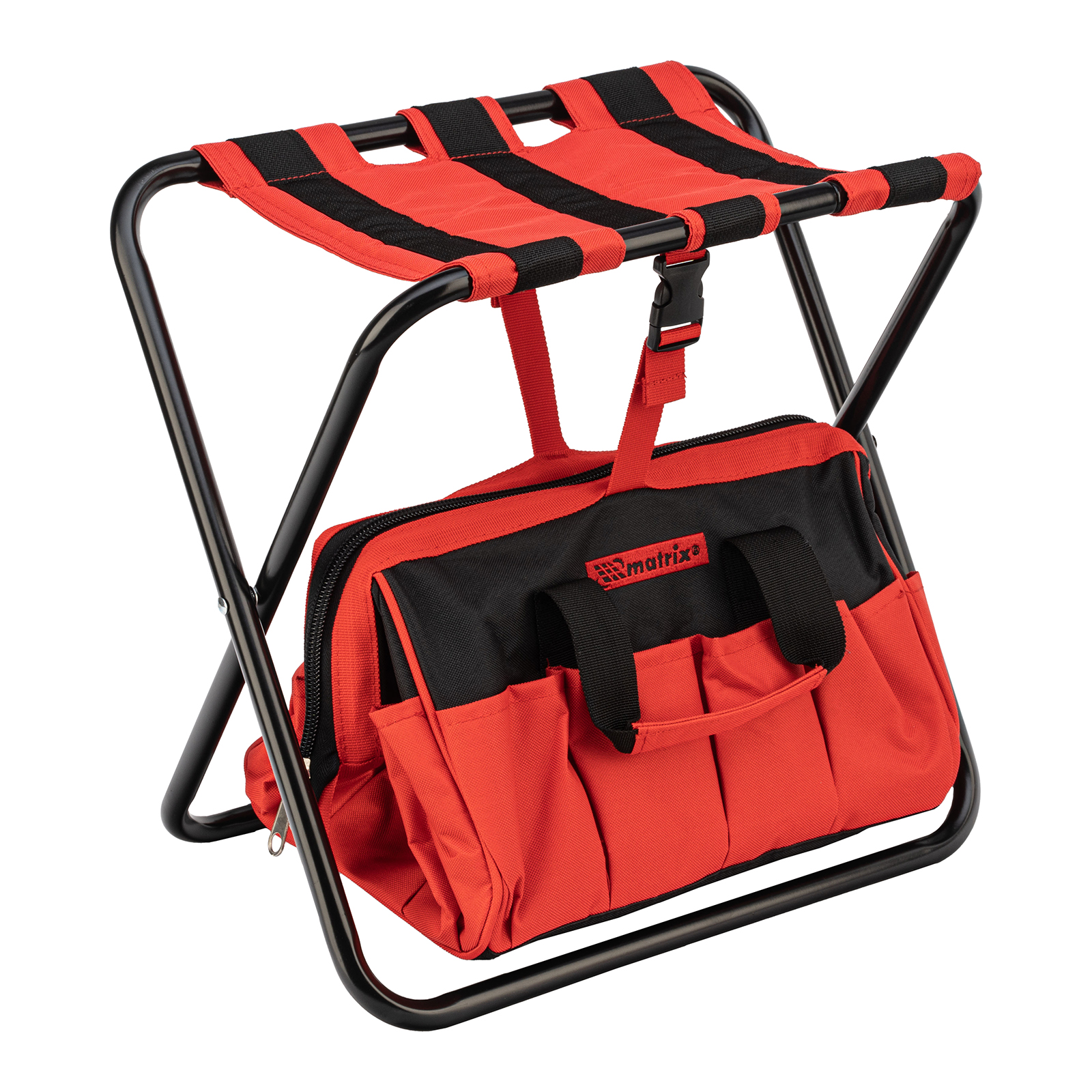 Складная сумка-стул Matrix 90249 размером 420 х 280 х 385 мм позволяет хранить и переносить инструменты и снаряжение, а также всегда иметь при себе удобный предмет рабочей или туристической мебели. Установить его можно за несколько секунд. Сумка-стул пригодится во время пикника и рыбалки, а также облегчит работу в саду и огороде.ПреимуществаПрочность и долговечность — сумка-стул изготовлена из износостойкого синтетического материала, металлический каркас рассчитан на вес до 90 кг.Многофункциональность — складной стул комплектуется сумкой с вместительным основным отделением и большим количеством карманов, в которых поместятся все необходимые инструменты.Надежные крепления — сумка пристегивается к стулу пластиковыми фастексами, которые выдерживают значительные нагрузки.Широкие возможности — стул легко отстегивается от сумки, и их можно использовать отдельно.Удобное хранение и транспортировка — изделие весит 1,775 кг и в сложенном виде занимает мало места.
