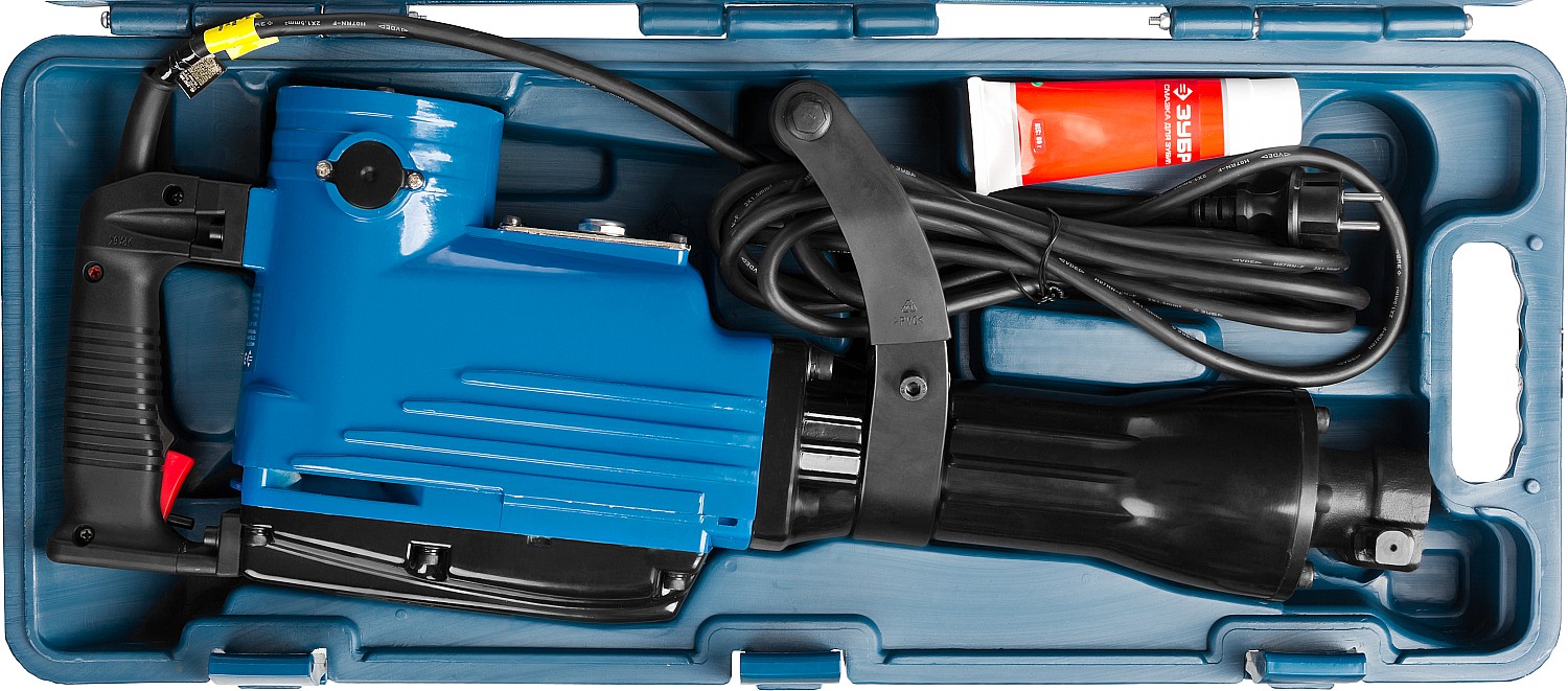 - Отбойный молоток с огромной силой удара при относительно небольшом весе. Обладает мощностью, достаточной для разрушения практически любых конструкций
