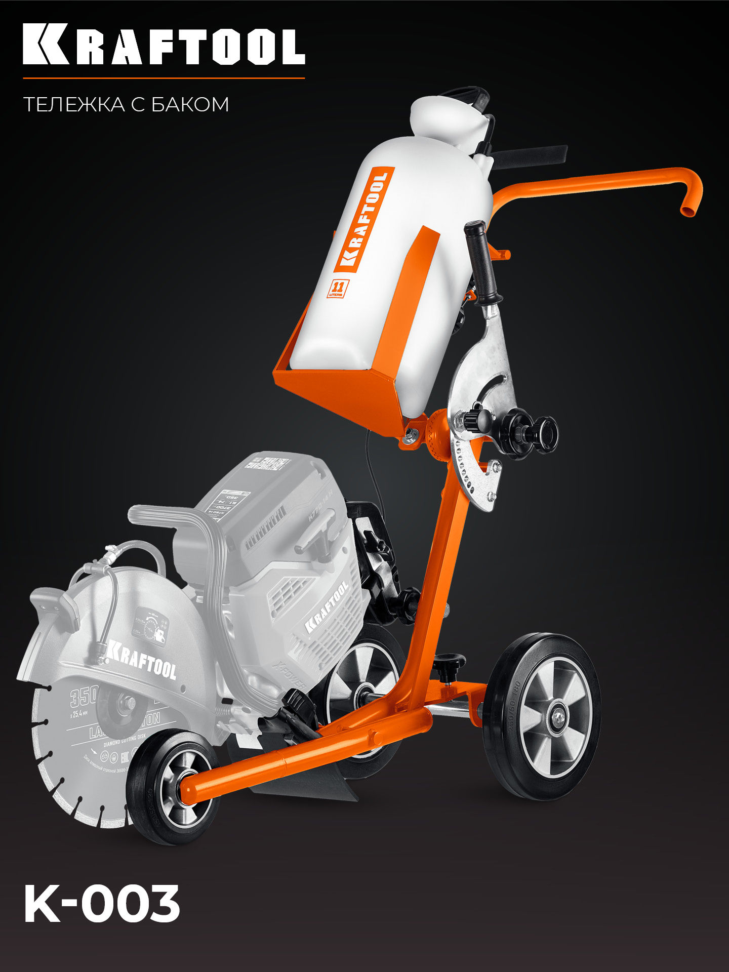Для бензорезов Kraftool K760-14, K760-16, K770-14, K770-14 H, K770-16, K770-16 H. Применение тележки позволяет выполнять длинные ровные резы с заданной глубиной по прямой, по дуге, рядом с вертикальными поверхностями