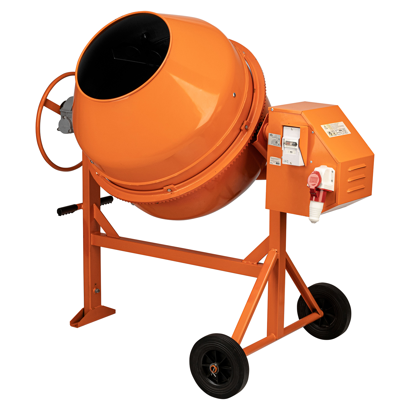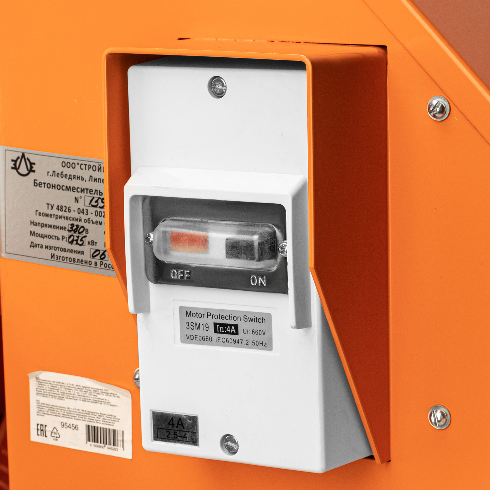 Бетоносмеситель СБР-260В 95456 мощностью 0,75 кВт, с редуктором и баком объемом 260 л, работает от сети 380 В и предназначен для приготовления строительных смесей и растворов, в том числе содержащих крупные фракции диаметром до 70 мм. Используется для выполнения работ по заливке фундамента и полов, укладке плитки и кирпича. Подходит для использования в помещении или на даче, т. к. уровень шума составляет всего 80 дБ. Бетоносмеситель производит до 150 л смеси за один замес, выдерживает интенсивную безостановочную работу и имеет увеличенный ресурс 3000 часов, поэтому подходит для коммерческого использования.ПреимуществаНадежность — усиленная траверса изготовлена из металлического профиля, а толщина стенок стального барабана составляет 2 мм снизу и 1,5 мм сверху.Антикоррозийная защита — порошковая краска предохраняет стойку и бак от разрушения.Термозащита — двигатель автоматически отключается в случае перегрева, что предотвращает выход его из строя.Безопасность — металлический кожух препятствует попаданию в привод пыли, брызг воды и посторонних предметов, а токопроводящие элементы имеют двойную изоляцию.Простое управление — удобный механизм опрокидывания и фиксации наклона барабана упрощает загрузку, перемешивание и выгрузку смеси.Устойчивость — металлическая ножка с упором не дает бетоносмесителю опрокинуться во время работы.Разборная конструкция — бетоносмеситель удобно хранить и транспортировать, а съемный сетевой кабель легко заменить в случае необходимости.Мобильность — благодаря двум большим колесам бетономешалку легко перемещать по строительной площадке.