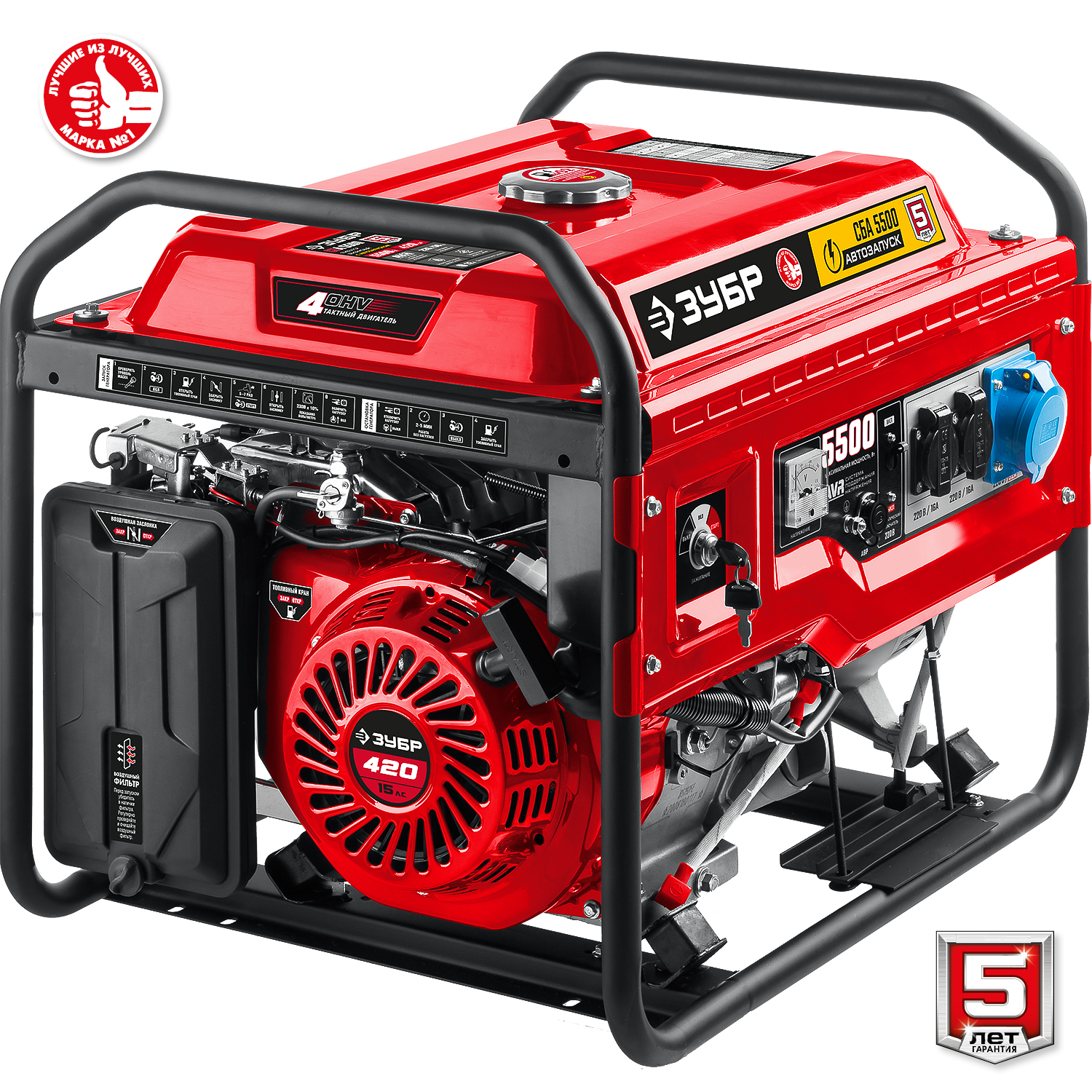 - Электрический стартер облегчает запуск генератора в любых условиях