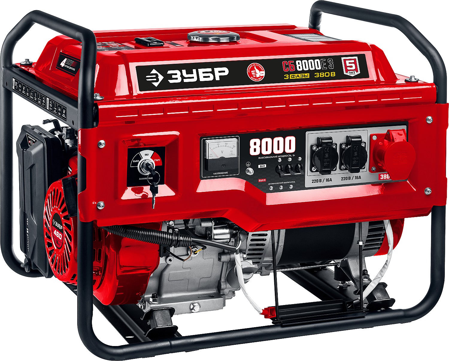 —ЗУБР 8000 Вт, 380 / 220 В, бензиновый генератор с электростартером (СБ-8000Е-3)