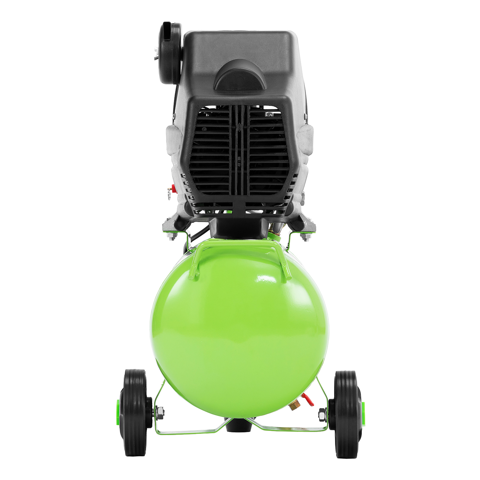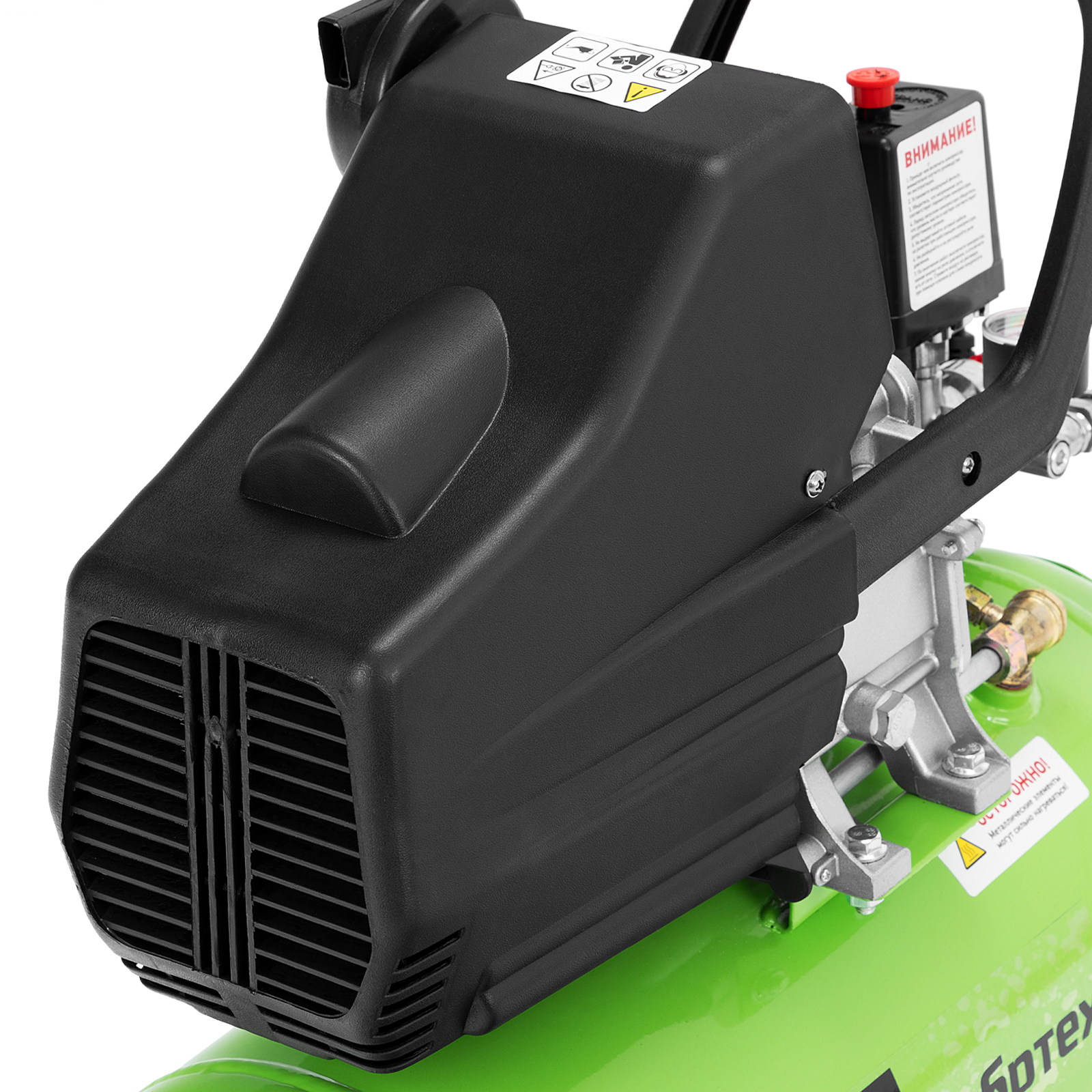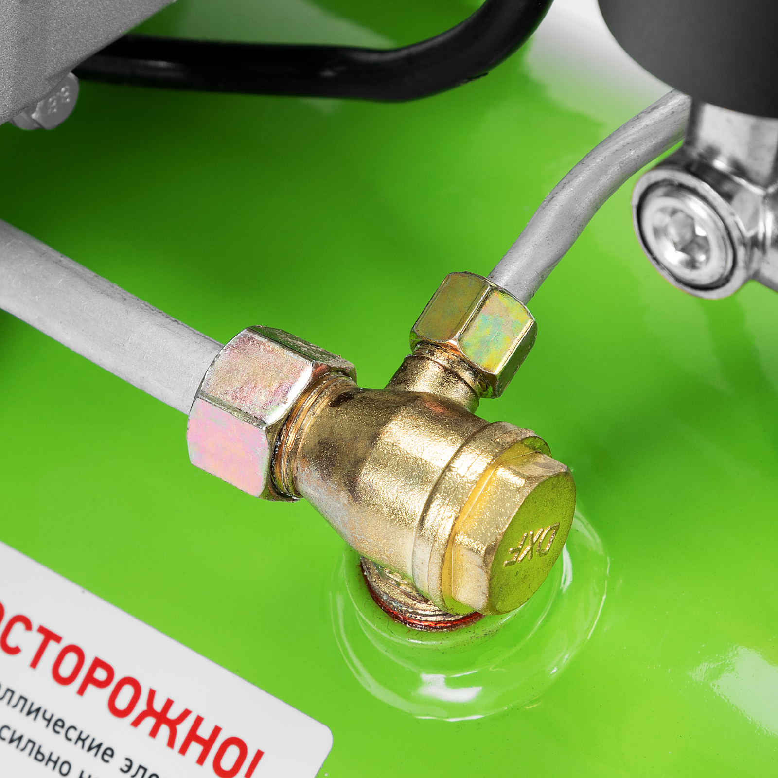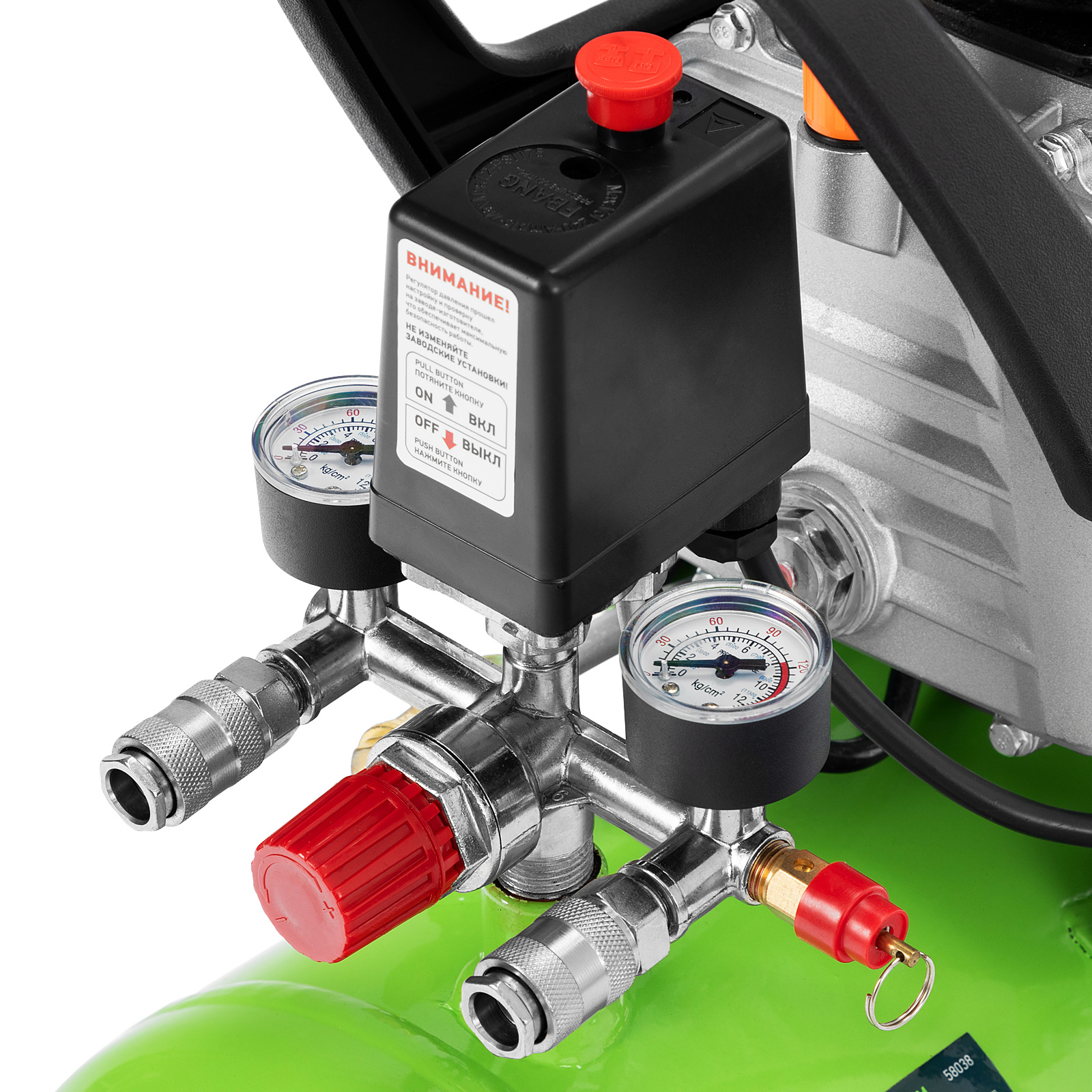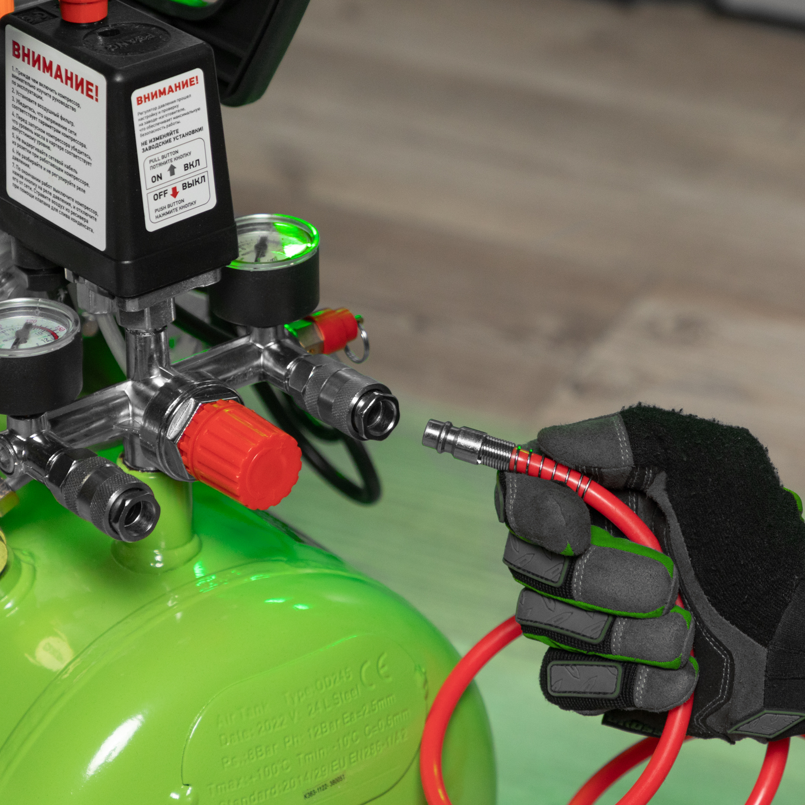 Компрессор Сибртех КК-1500/24 ПЛЮС относится к бытовому типу и для работы использует однофазную сеть. Его удобно применять на небольших ремонтных площадках для накачки шин, продувки различных деталей, монтажа и работ на стройке. Устройство комплектуется краскораспылителем, продувным и моечным пистолетами и 5-метровым спиральным шлангом. Это решение значительно экономит время на поиск аксессуаров.Пневмоинструмент из комплекта оснащен коннекторами Рапид (EURO) и готов к использованию с компрессором. Такой набор является необходимым для большинства задач, на которые рассчитан компрессор.В модели одновременно сочетаются мобильность и высокая производительность 198 л/мин. Большой магнитопровод и качественная обмотка статора позволили увеличить мощность двигателя до 1.5 кВт. Сжатый воздух под давлением 8 бар нагнетается в ресивер емкостью 24 литра, а затем подается к пневмоинструменту.Двигатель имеет 3 уровня защиты. Первый - внешняя защита от пыли, влаги и сколов за счет прочного кожуха. Второй - предохранитель по току, отключающий устройство при перегрузке. Наконец, третий - предотвращение перегрева благодаря увеличенной площади ребер охлаждения и эффективному теплоотводу.Преимущества:Контроль давления в ресивере и на выходной магистрали - 2 манометра расположены в удобной для просмотра плоскости, поэтому к ним не нужно наклоняться или приседать.Сапун для сброса давления - в системе поддерживается равенство давлений и при необходимости излишки газа оперативно отводятся.Продуманность до мелочей - места стыковки на картере гладкие, т.к. дополнительно обработаны после отливки, что исключает протечку масла и заботу о ее устранении.Легкое удаление влаги - после рабочего цикла конденсат удаляется с помощью удобного шарового крана без применения ключа.Защита от разрушения - антикоррозийная краска препятствует появлению ржавчины снаружи и внутри ресивера.Передвижная конструкция - компрессор спокойно переместит даже пожилой человек благодаря двум колесам и удобной рукоятке.Сглаживание вибраций - Вы не ощутите колебаний рядом с работающей установкой за счет прорезиненной опоры.Легкий вес и небольшие габариты - компрессор довольно компактен, весит всего 24 кг несмотря на высокую производительность.