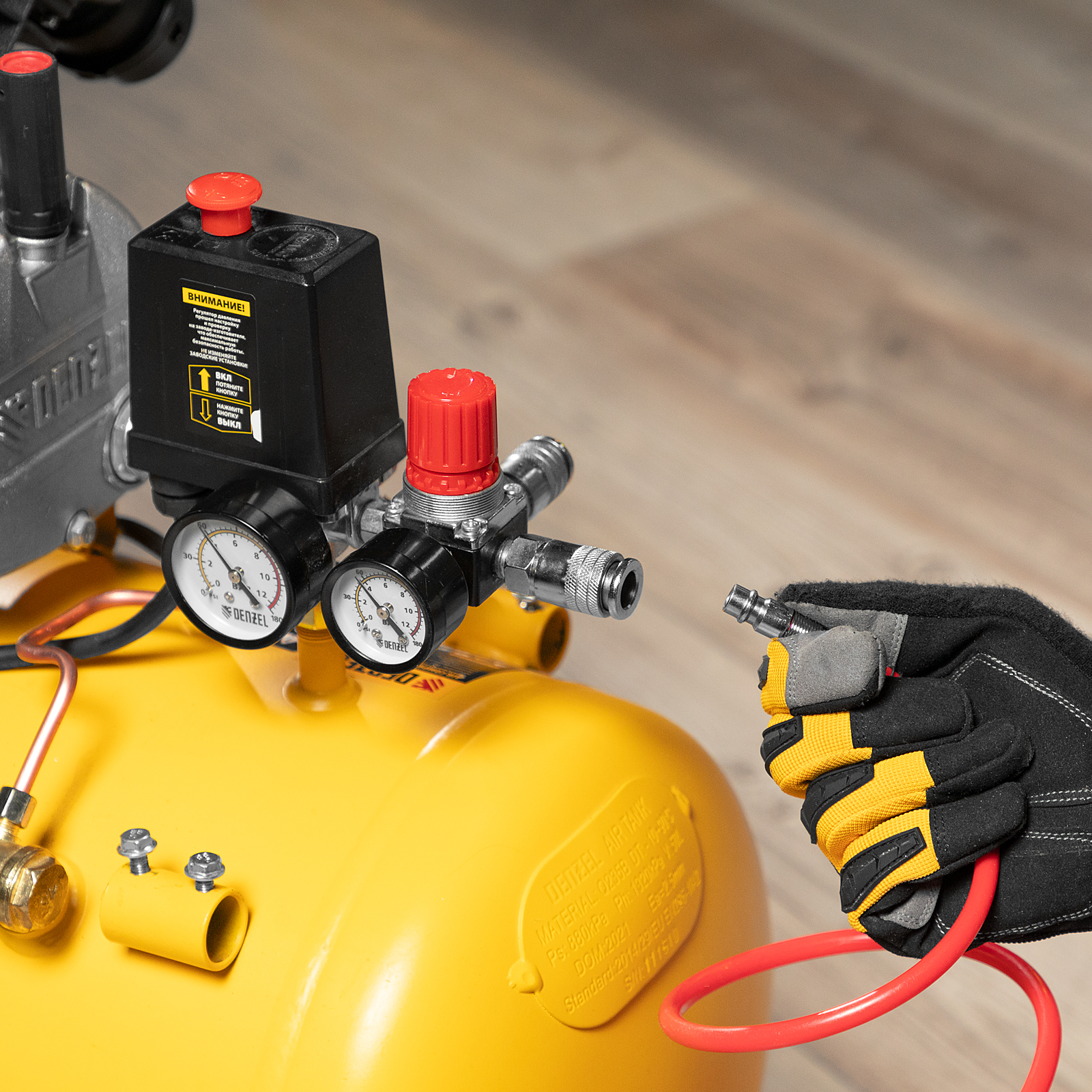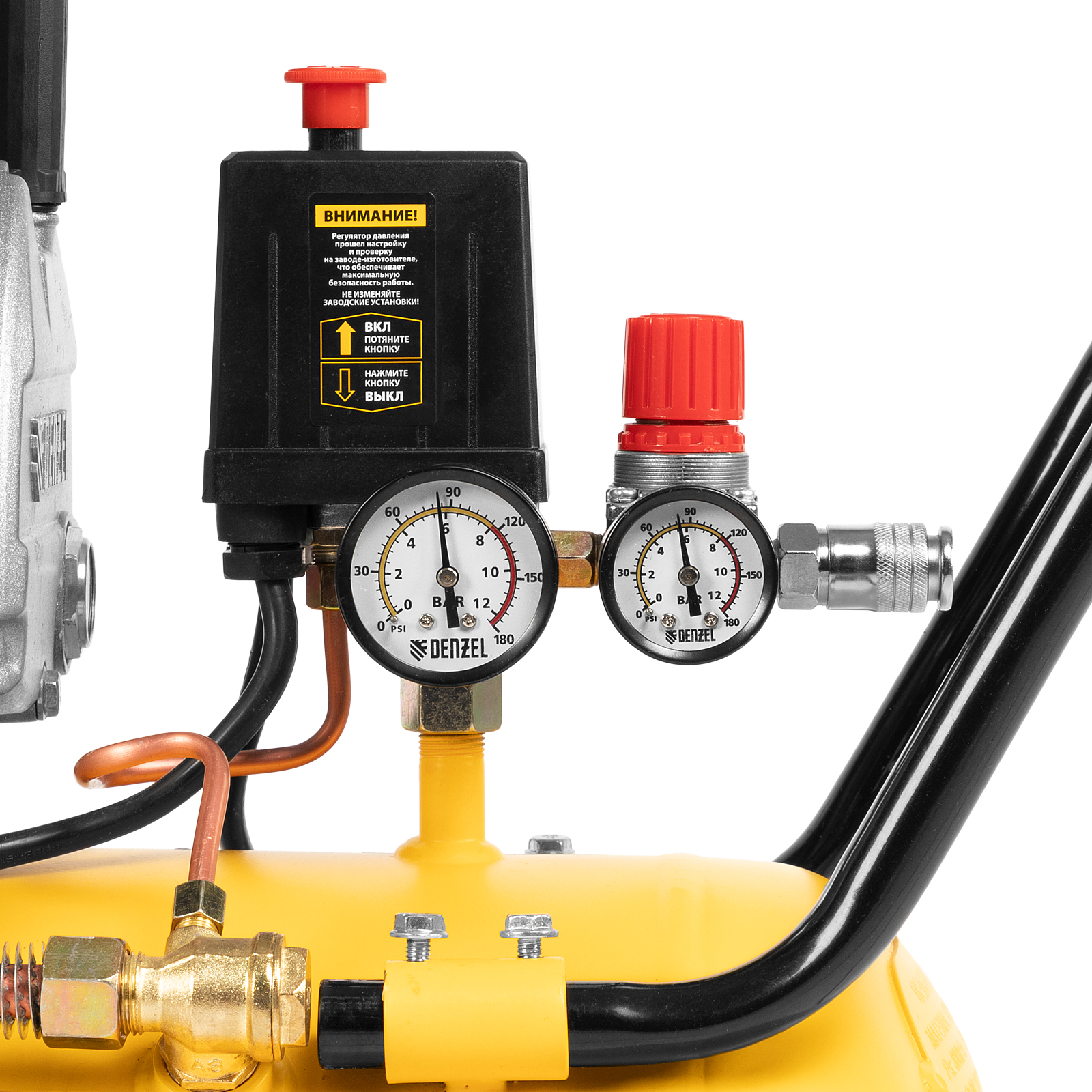 Воздушный компрессор Denzel DKV2200/50 Х-PRO 58083 мощностью 2,2 кВт, с объемом ресивера 50 л сжимает за минуту до 400 л воздуха и предназначен для применения в быту, на станции СТО и строительной площадке. Используется для обеспечения сжатым воздухом пневмоинструмента, например, пневмозубила, пневмогайковерта, пневмомолотка, пневмодрели. 2 евроконнектора позволяют подключить одновременно несколько инструментов для повышения эффективности работы.ПреимуществаПовышенная износостойкость — цилиндры и коленвал выполнены из чугуна, а эффективная система смазки уменьшает трение деталей.Защита по току — двигатель останавливается при перегрузке, что предотвращает его выход из строя.Термозащита — компрессор отключается при перегреве, что увеличивает ресурс двигателя.Дополнительная обработка деталей картера — тщательно обработанные поверхности плотно прилегают друг к другу, исключая утечку масла.Защита от пыли и твердых частиц — резиновые уплотнители на фильтрах не допускают подсосов неочищенного воздуха.Безопасная работа — клапан сброса избыточного давления предотвращает аварийные ситуации.Контроль рабочих параметров — 2 манометра облегчают отслеживание давления в ресивере и пневмомагистрали.Быстрый слив конденсата — пробка с подпальцевыми выемками легко откручивается без использования инструментов.Надежные опоры — резиновые ножки обеспечивают устойчивость компрессора и эффективно поглощают вибрации.Удобное перемещение — компрессор оснащен колесами и П-образной ручкой.Подтвержденное качество — на компрессор распространяется расширенная 3-летняя гарантия.