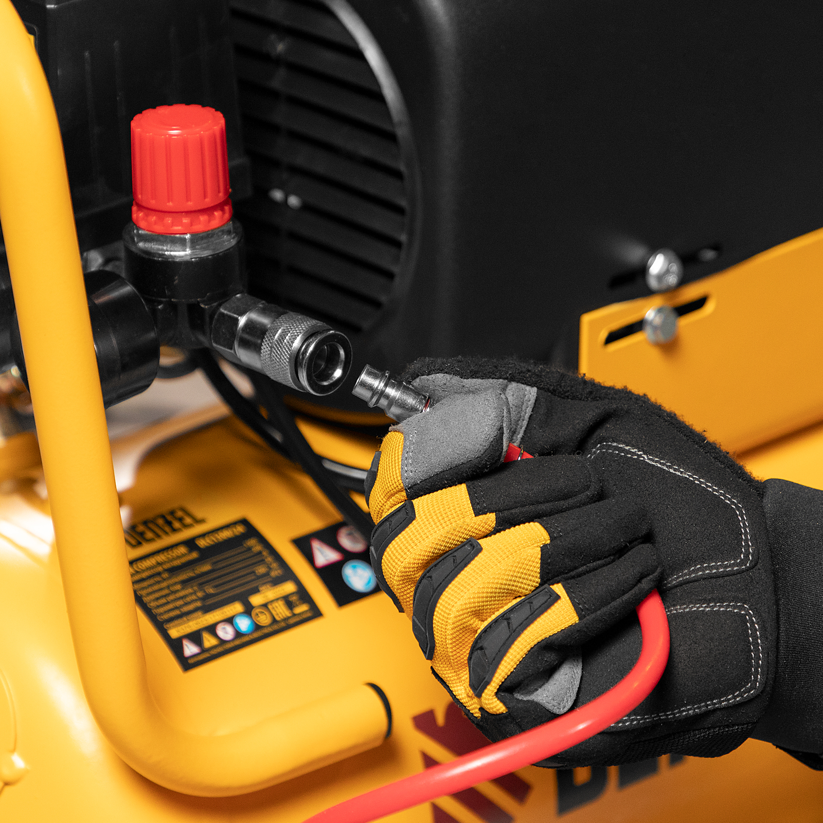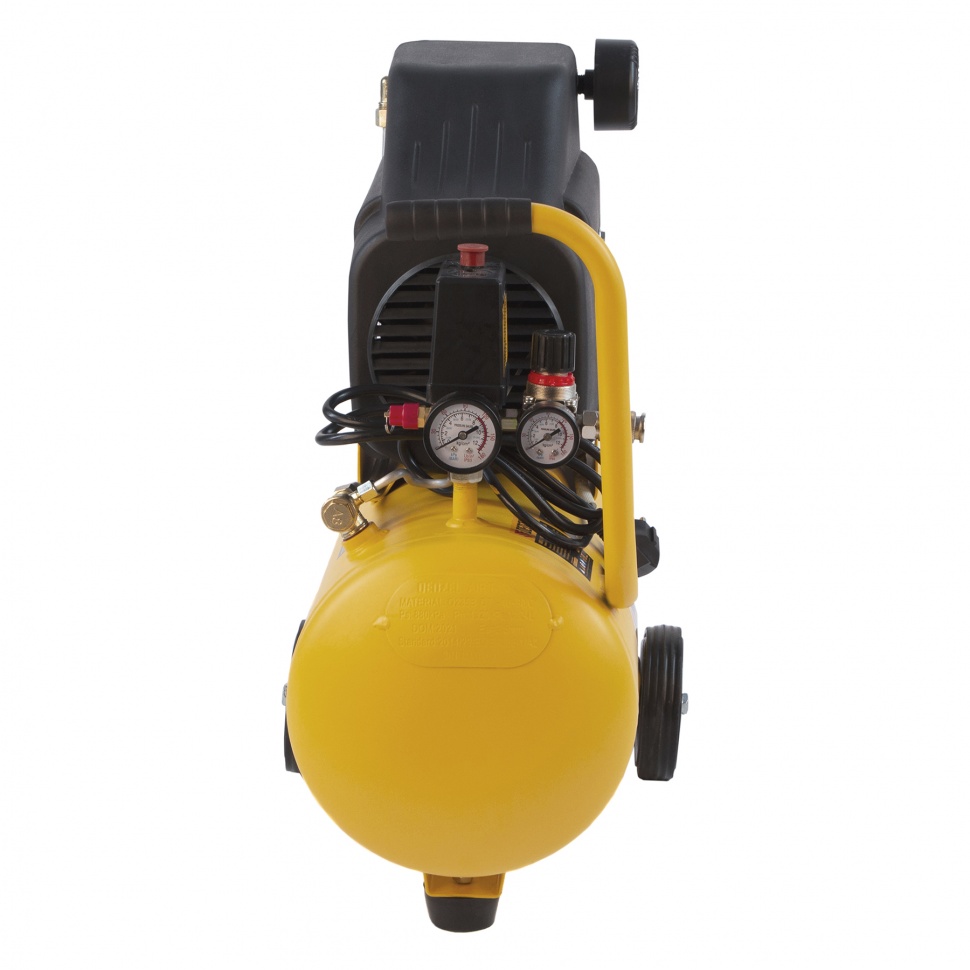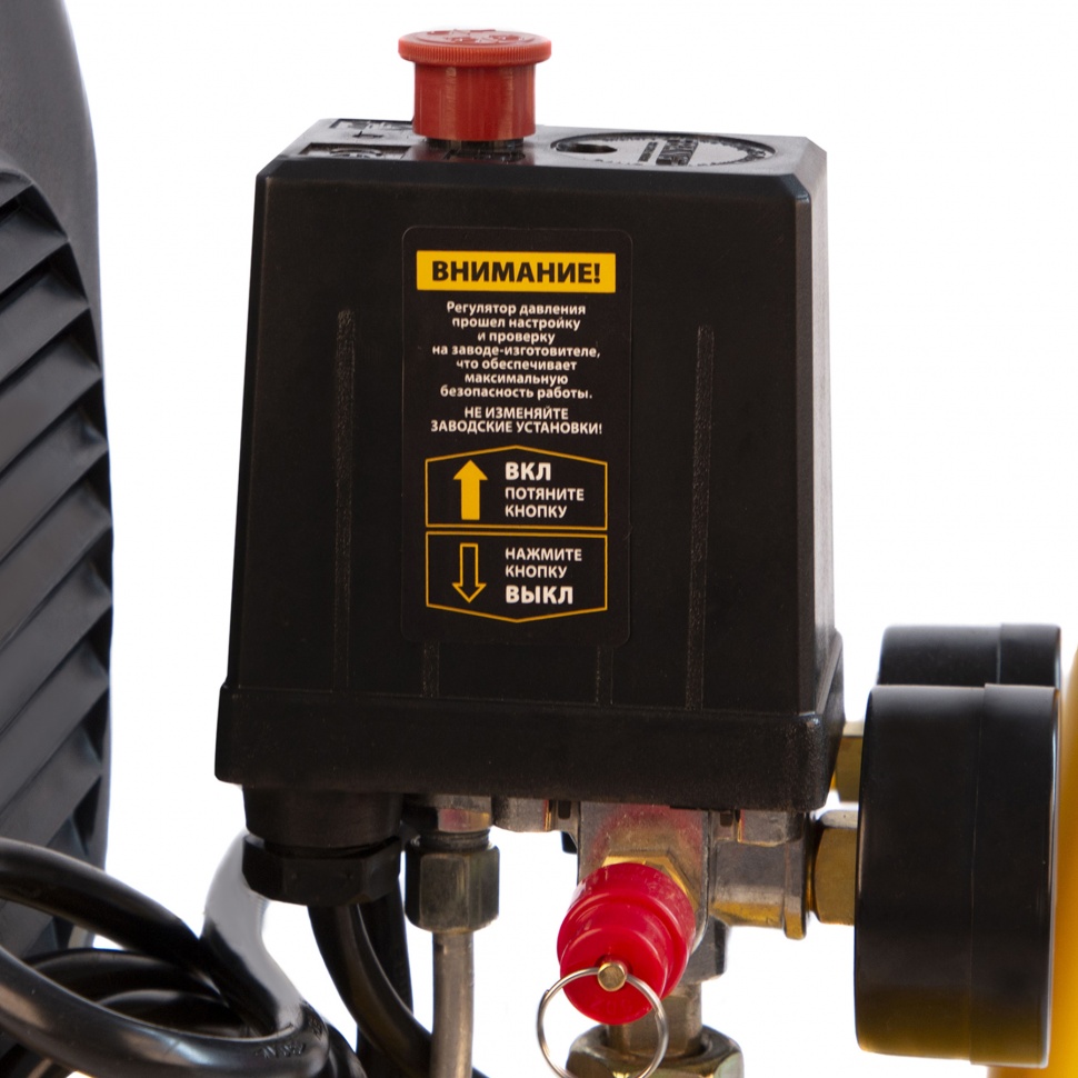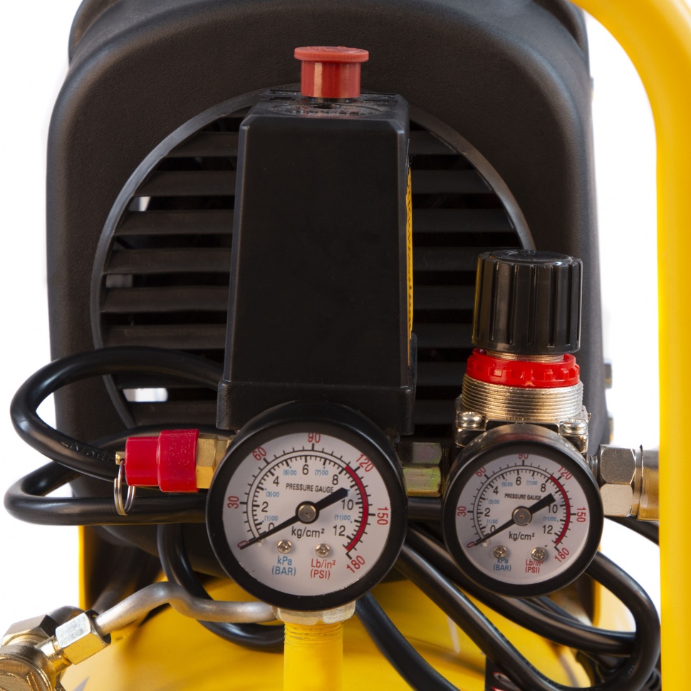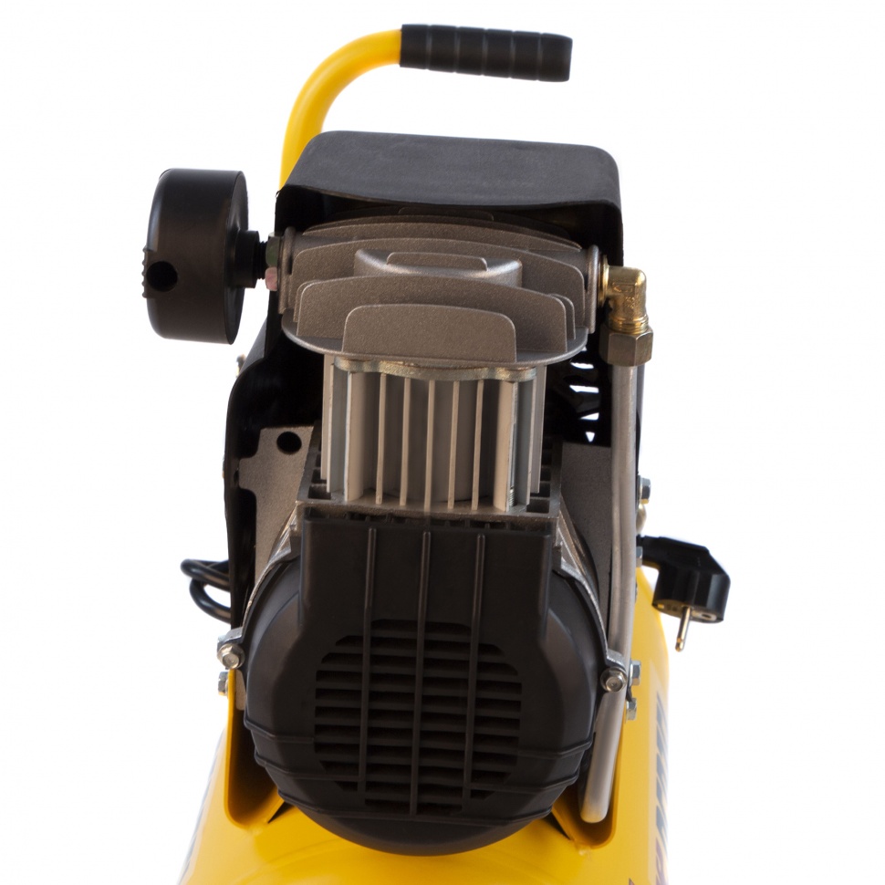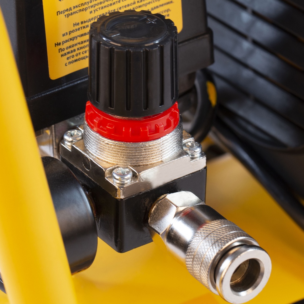 Безмасляный воздушный компрессор Denzel DLC1300/24 58171 мощностью 1,3 кВт, с объемом ресивера 24 л и производительностью на входе 206 л/мин, обеспечивает на выходе чистый сжатый воздух без примесей масла, что позволяет использовать его при окрашивании, креплении паркета и вагонки, продувке электронной техники, накачке шин. Подходит для обеспечения длительной работы пневмоаэрографа, пневмогравера, пневмошуруповерта, пневмодрели и пневмонейлера, а также другого пневмоинструмента. Быстроразъемный коннектор Euro (Rapid) упрощает подключение пневмомагистрали.ПреимуществаТермозащита — предохранитель останавливает работу двигателя при перегреве, что увеличивает срок службы компрессора.Продуманная конструкция — антифрикционное покрытие цилиндра уменьшает трение, а его ребристая поверхность улучшает теплоотвод, что снижает нагрузку на двигатель.Стабильная работа без потери производительности — фильтр с бумажным картриджем обладает повышенной пропускной способностью.Чистый воздух — уплотнитель на фильтре препятствует попаданию в цилиндр посторонних примесей.Безопасность — предохранительный клапан своевременно сбрасывает избыточное давление, предотвращая аварийную ситуацию.Быстрый слив конденсата — пробка расположена снизу и имеет специальные упоры для откручивания без инструмента.Контроль рабочих параметров — компрессор оснащен двумя манометрами для отслеживания давления в пневмолинии и ресивере.Отсутствие масла — компрессор не нуждается в постоянном техническом обслуживании.Накладки на ножках — компрессор отличается устойчивостью и не испытывает повышенных вибраций во время работы.Мобильность — компрессор, оснащенный ручкой и колесами, весит 22,6 кг, что упрощает его транспортировку.Расширенная 3-летняя гарантия — надежность компрессора подтверждена производителем.