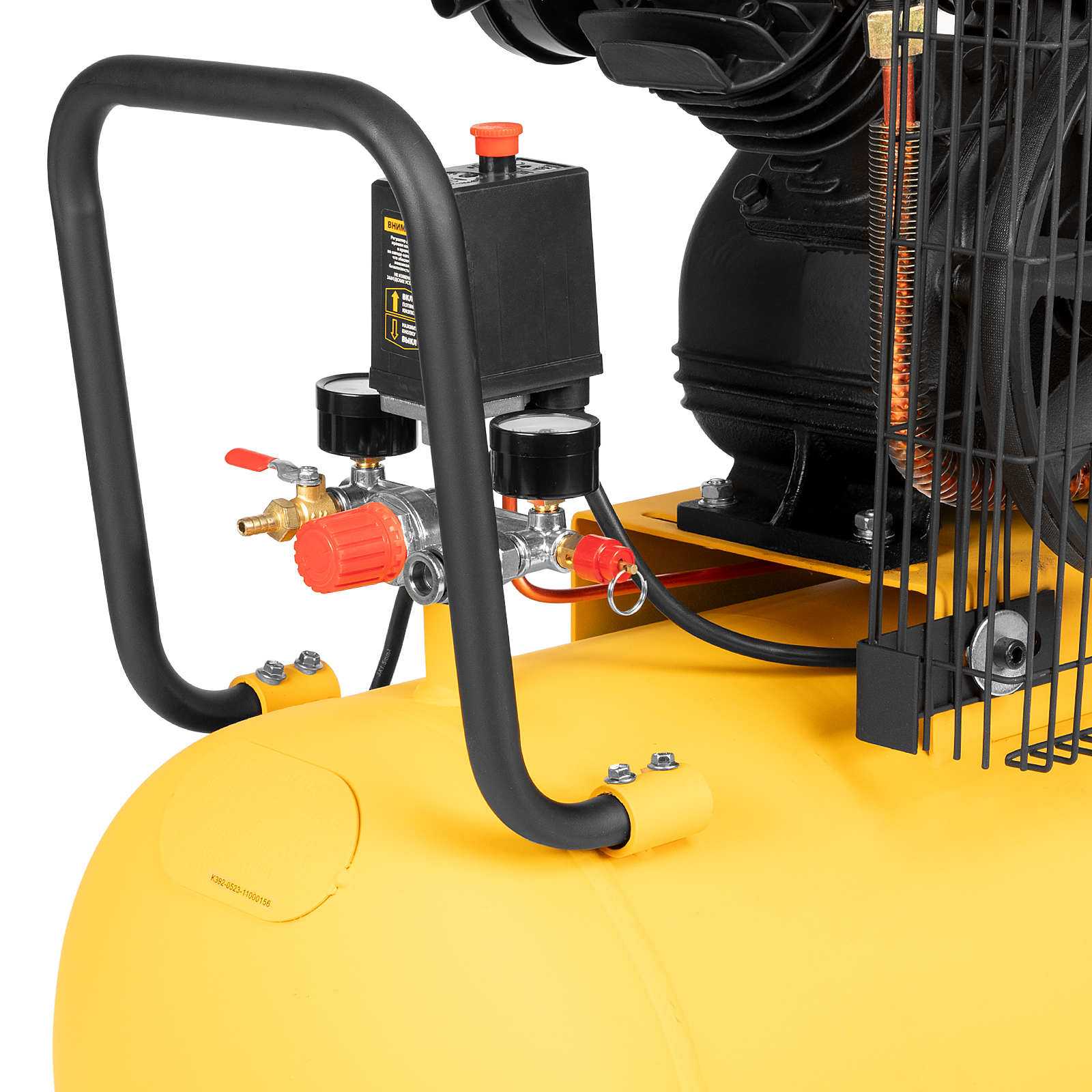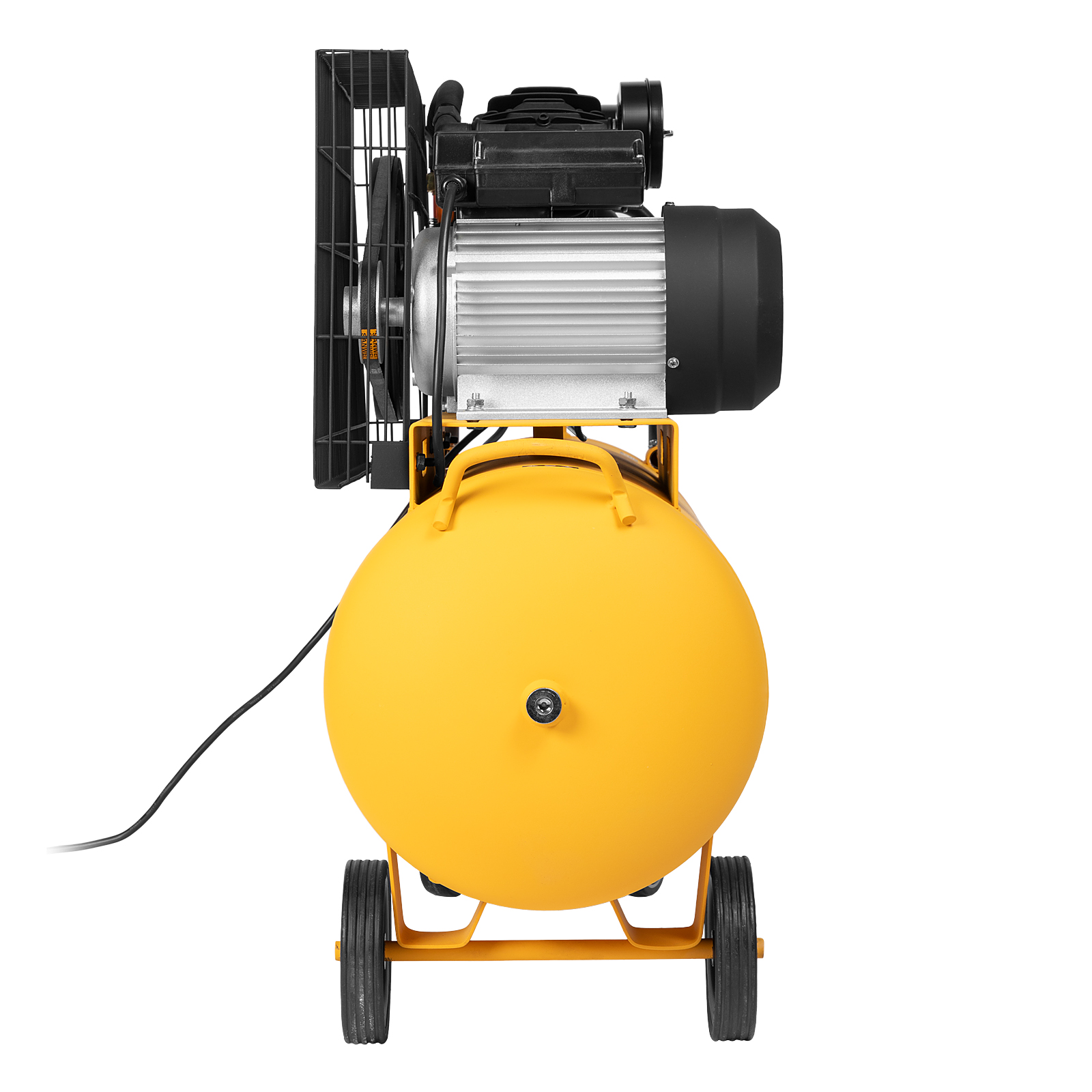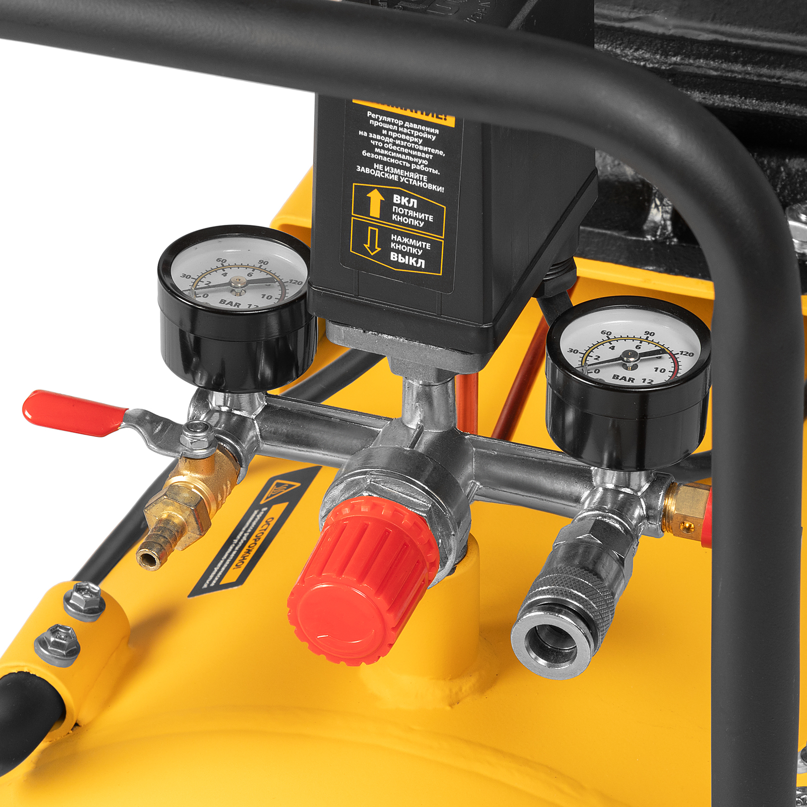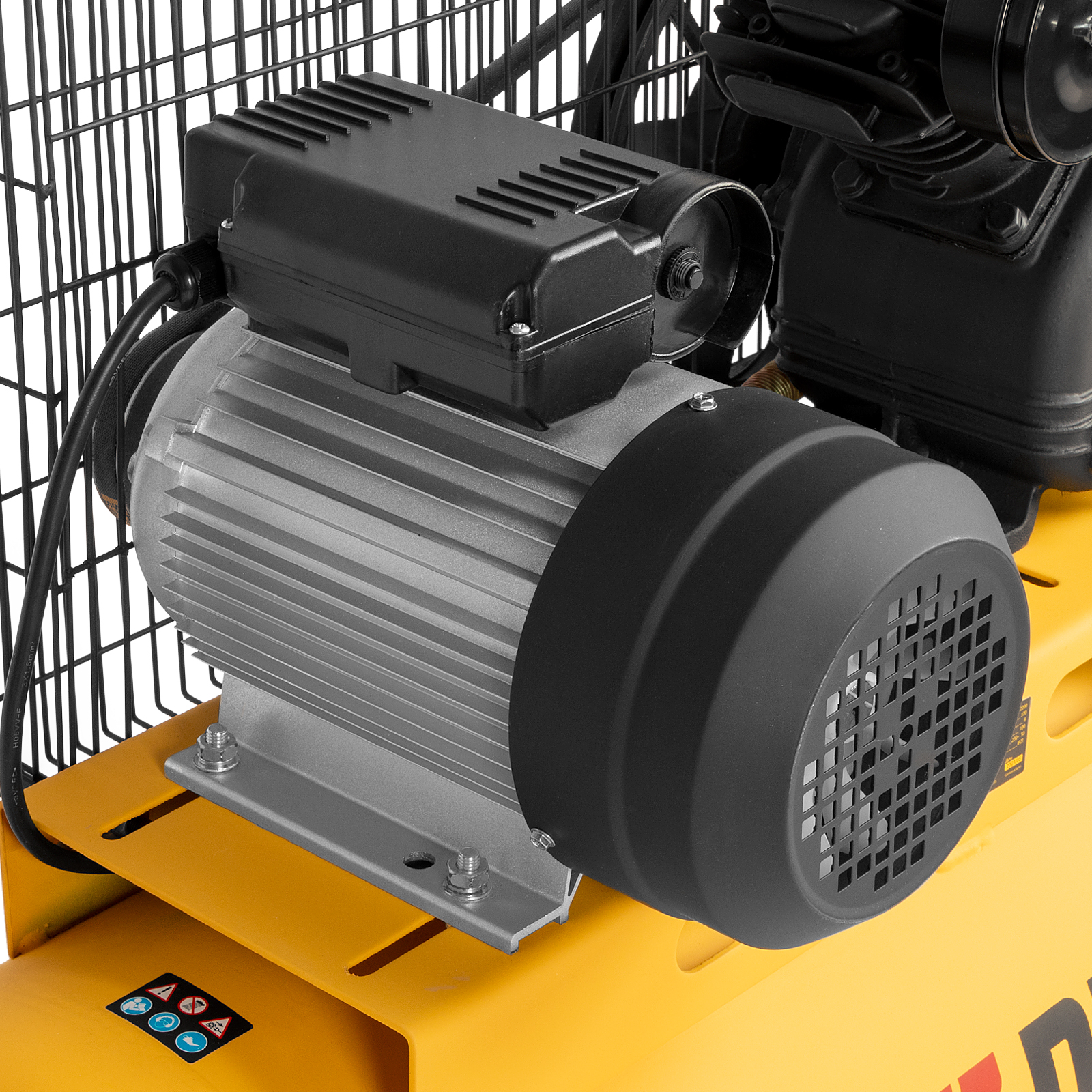 Компрессор Denzel BCV2200/100 58110 мощностью 2,2 кВт и производительностью 370 л/мин, с ресивером на 100 литров, предназначен для работ в мастерских, автосервисах, на производствах или в быту. К нему можно подключать сразу 2 пневмоинструмента, например, дрель, долото, заклепочный или продувочный пистолет, краскопульт, очиститель окалины и пр.Высокий ресурс чугунных цилиндров, надежная ременная передача и объемный ресивер на 100 л позволяют использовать компрессор длительное время. При необходимости можно напрямую подключать второй накопитель или пневмомагистраль через дополнительный порт.ПреимуществаТепловая защита — температура обмоток двигателя контролируется и в случае превышения допустимой нормы работа прекращается, чтобы устройство охладилось.Защита от перегрузки — если сила тока превышает безопасный порог, мотор моментально отключается, поэтому он остается в сохранности даже в случае резко возрастающей нагрузки.Автоматизация работы — реле FBANG самостоятельно останавливает и повторно запускает двигатель для поддержания давления в диапазоне 6,5-8 бар.Защита от аварийных ситуаций — если реле давления по каким-то причинам не остановит работу при превышении допустимого давления, лишний воздух стравится через предохранительный клапан.Удобный контроль работы — 2 манометра позволяют без труда отслеживать уровень давления как в ресивере, так и на выходной магистрали.Высокое качество ресивера — толщина стенок более 2 мм, прочное сварное соединение и антикоррозийное покрытие надежно защищают его от внутренних разрушений.Надежный картер — детали прочно прилегают друг к другу, а крышка плотно закрывается, что обеспечивает полную защиту от протекания масла.Смотровое окно — уровень масла в картере удобно отслеживать, это позволяет вовремя доливать его и избегать поломок двигателя.Коррозионностойкая клапанная плита — гальваническое покрытие предотвращает разрушение стали, это позволяет сохранить герметичность клапанного механизма и высокий ресурс компрессора.Воздушный фильтр — весь входящий поток проходит через гофробумагу, которая практически не создает сопротивления и удерживает даже мелкие частички пыли. Это повышает износоустойчивость цилиндров и защищает их от разрушения.Клапан слива конденсата — скопившаяся влага быстро удаляется из ресивера с потоком оставшегося воздуха после окончания работы.Транспортировка без проблем — 2 колеса и П-образная ручка помогают перевозить тяжелый компрессор по рабочей площадке.Устойчивость — опоры с прорезиненным покрытием позволяют удобно разместить компрессор и гасят вибрации.Гарантия 3 года — высокое качество компрессора подтверждено производителем.